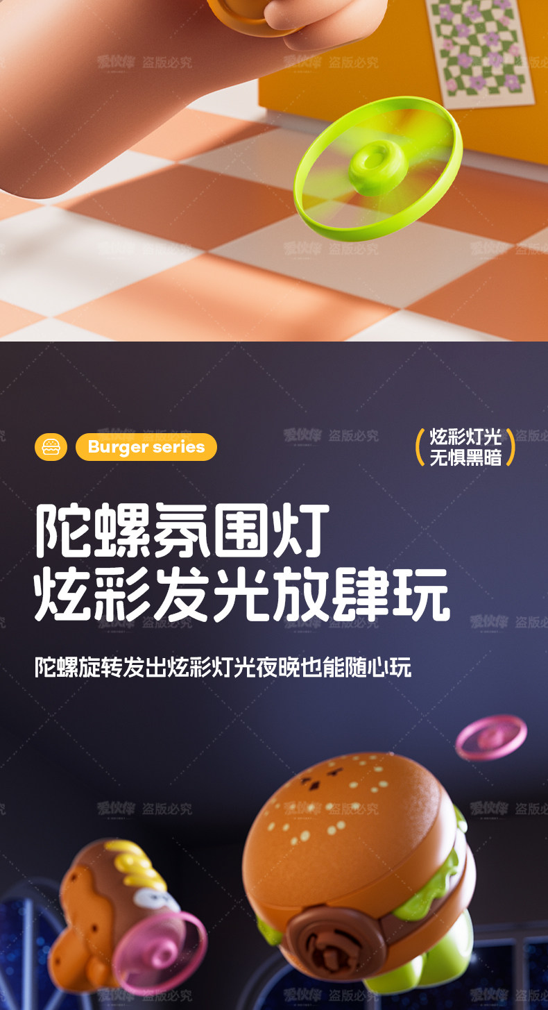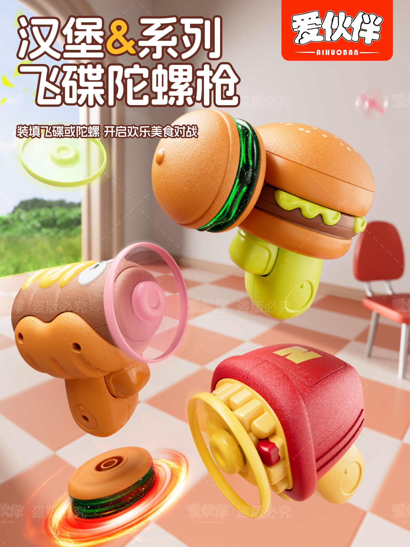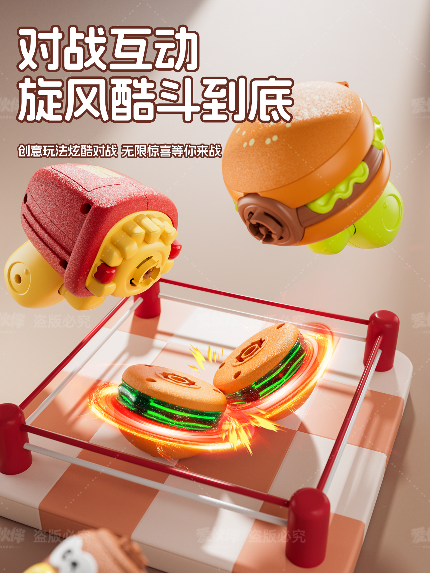 汉堡陀螺男孩玩具发光旋转陀螺飞盘户外儿童玩具竹蜻蜓女孩子玩具