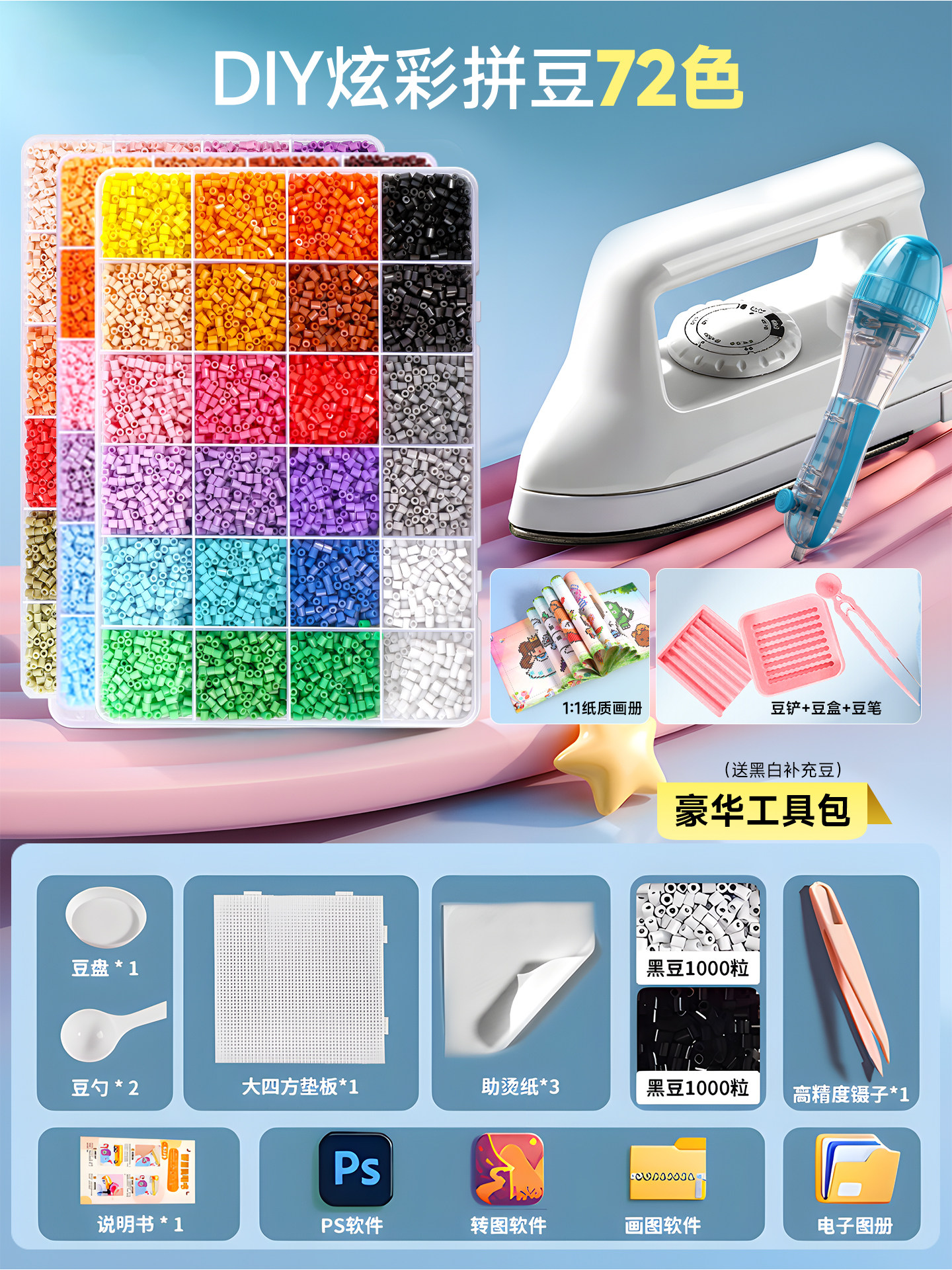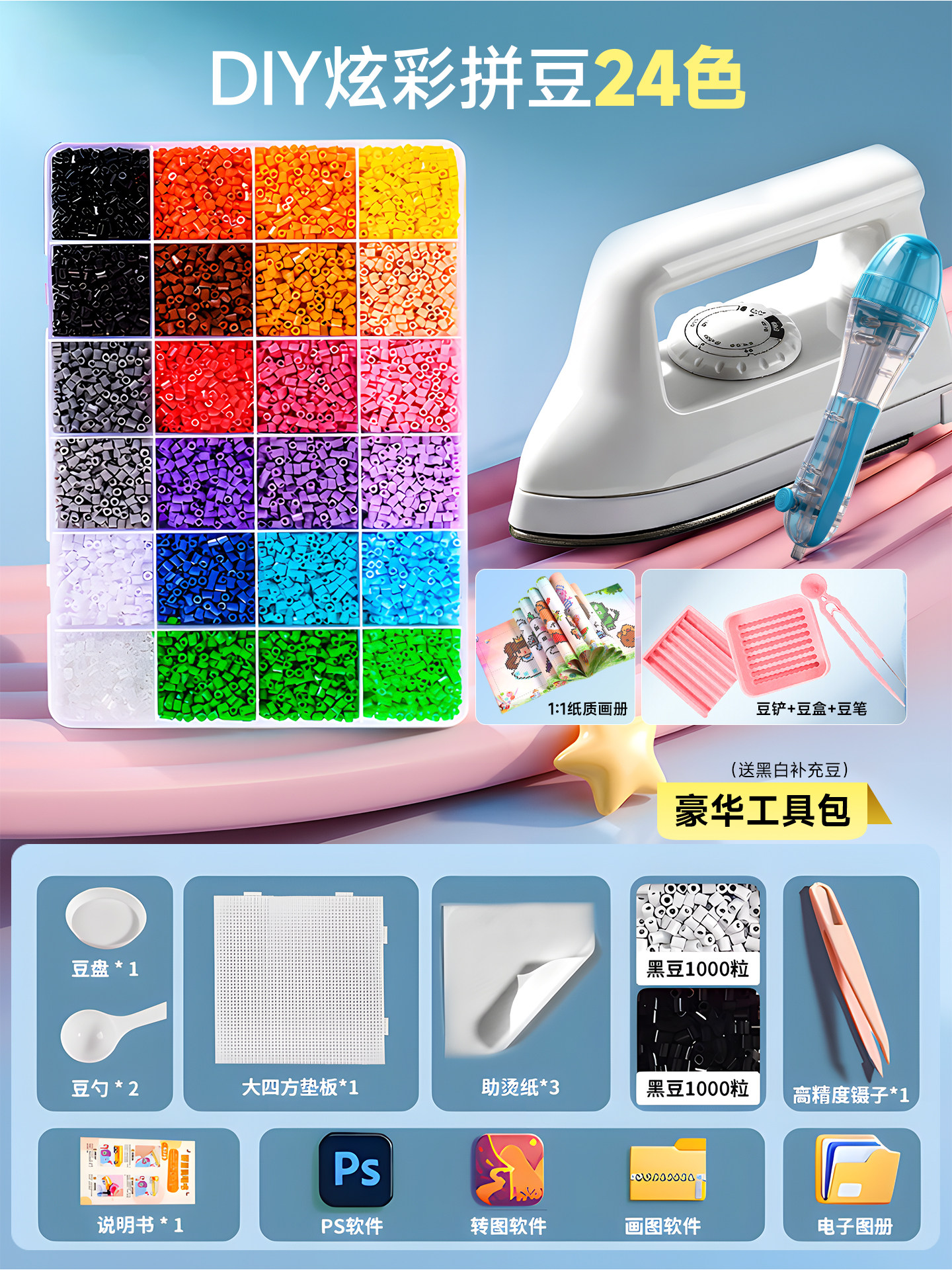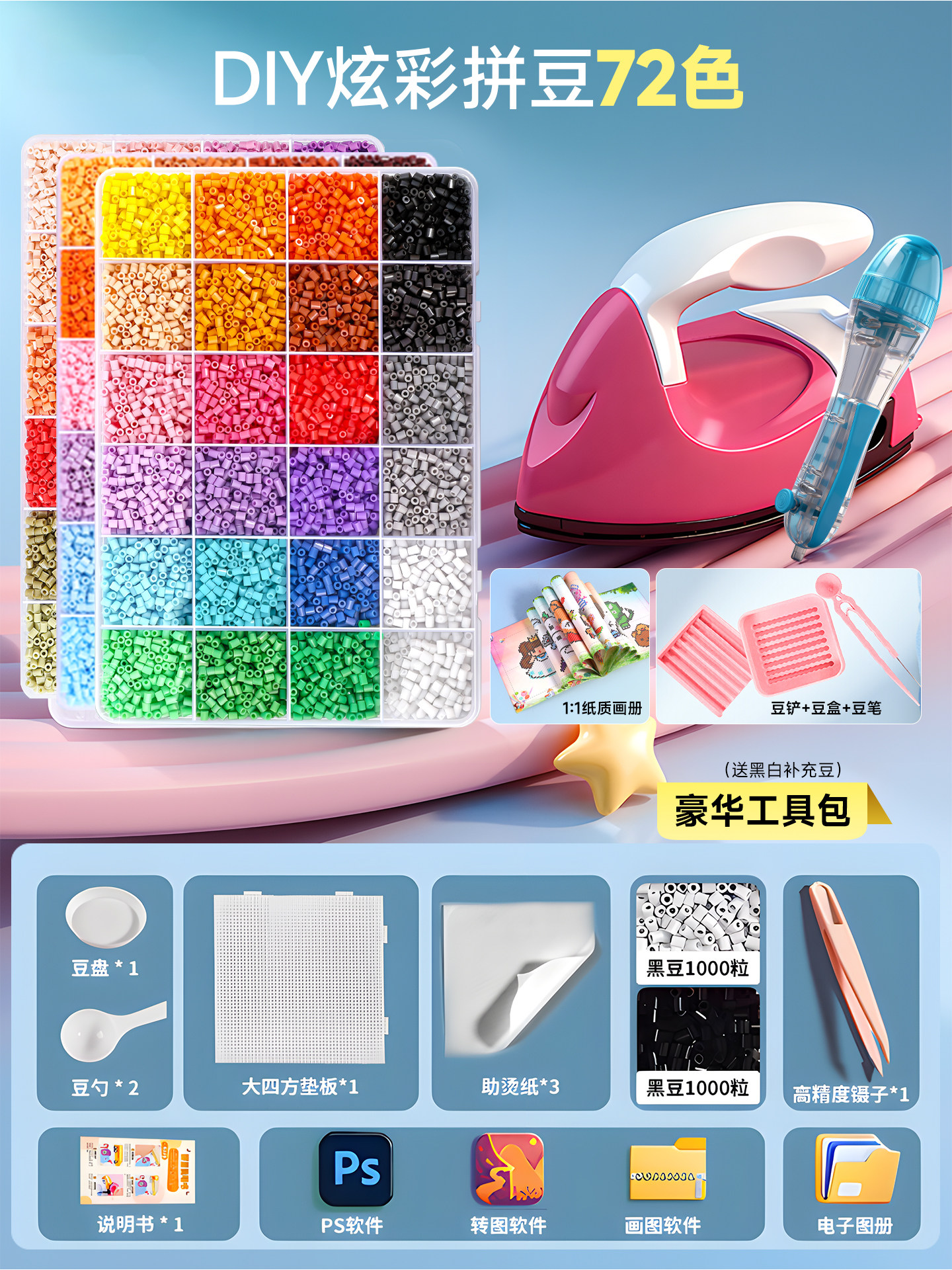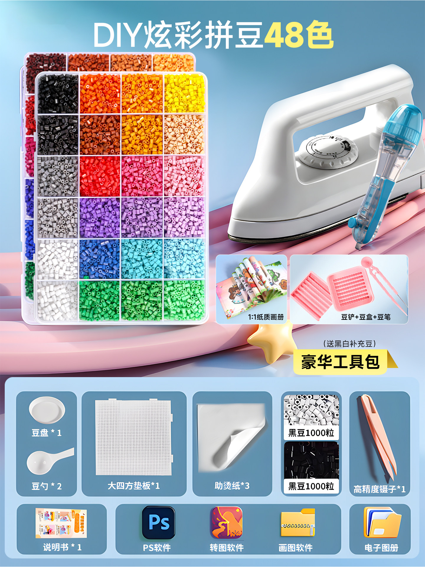 拼豆豆手工diy套装融合豆专用熨斗全套工具补充材料包玩具女孩子