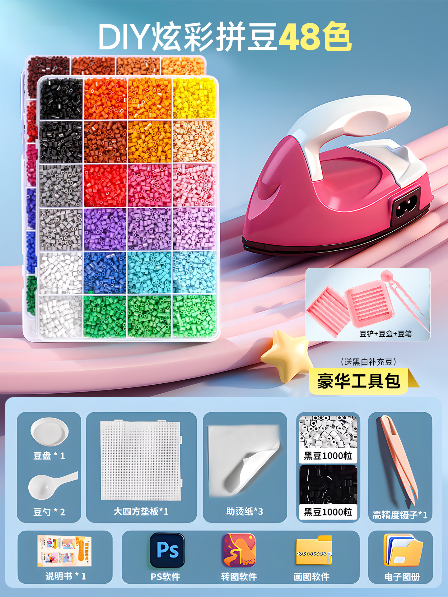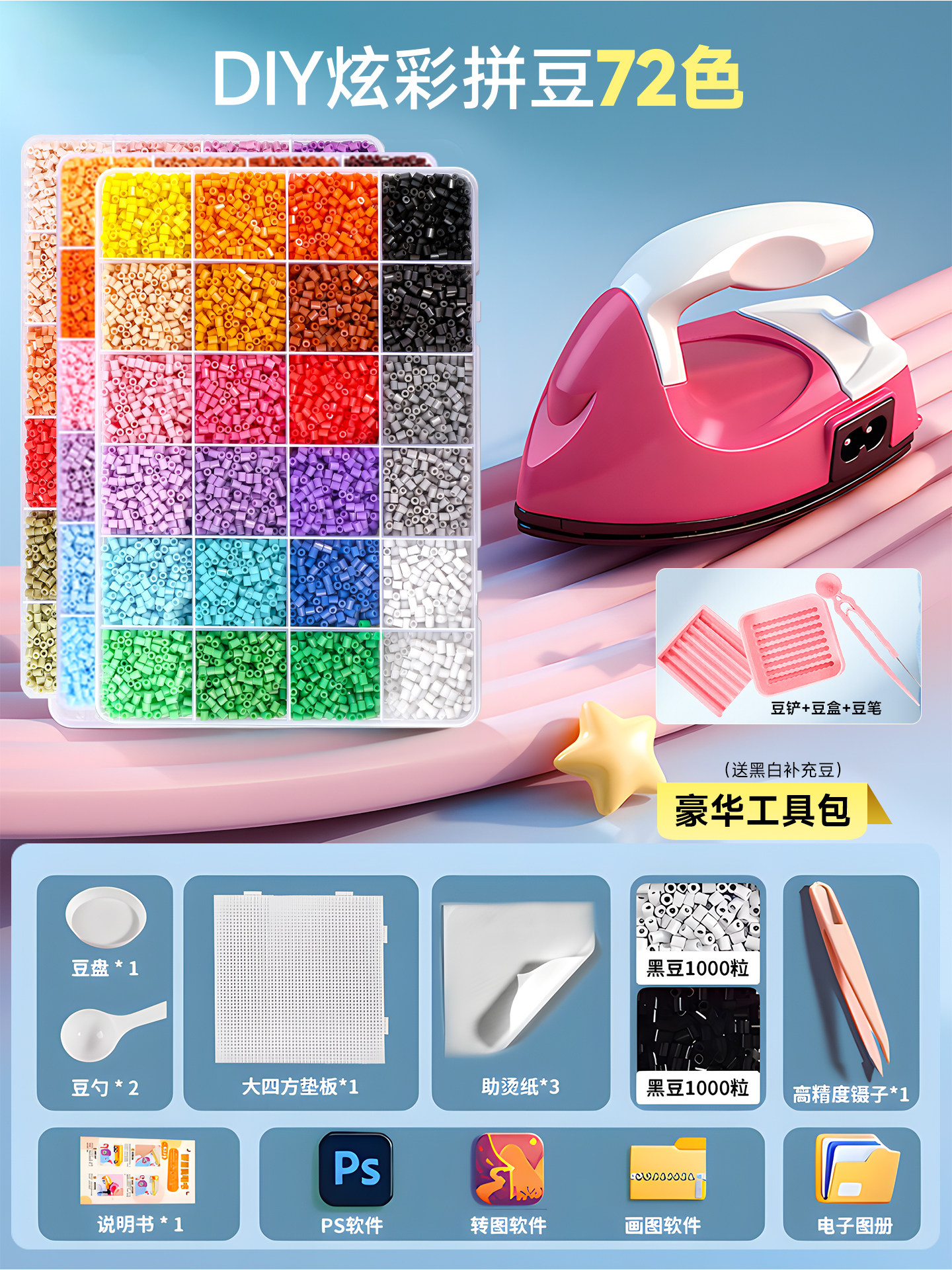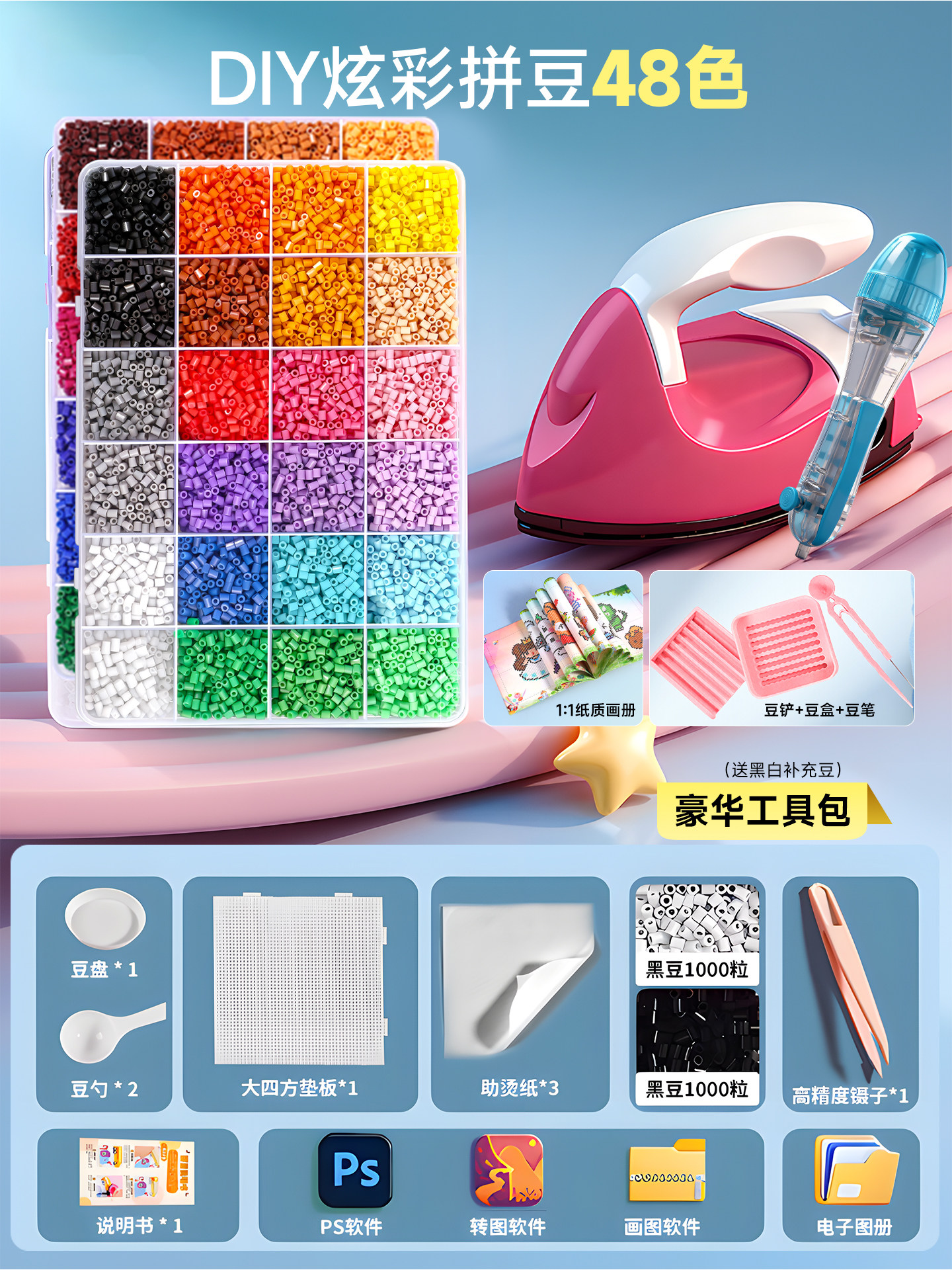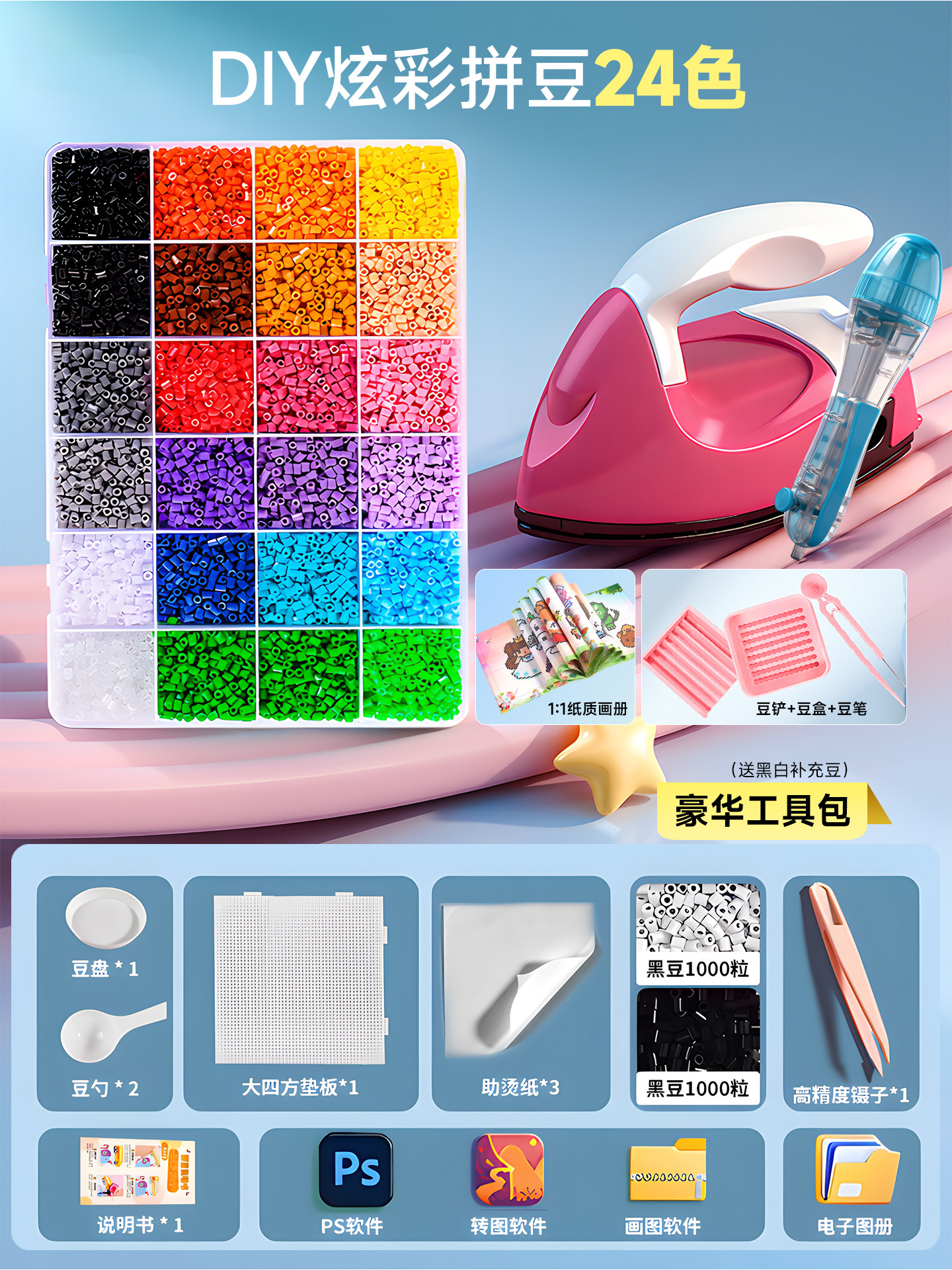 拼豆豆手工diy套装融合豆专用熨斗全套工具补充材料包玩具女孩子