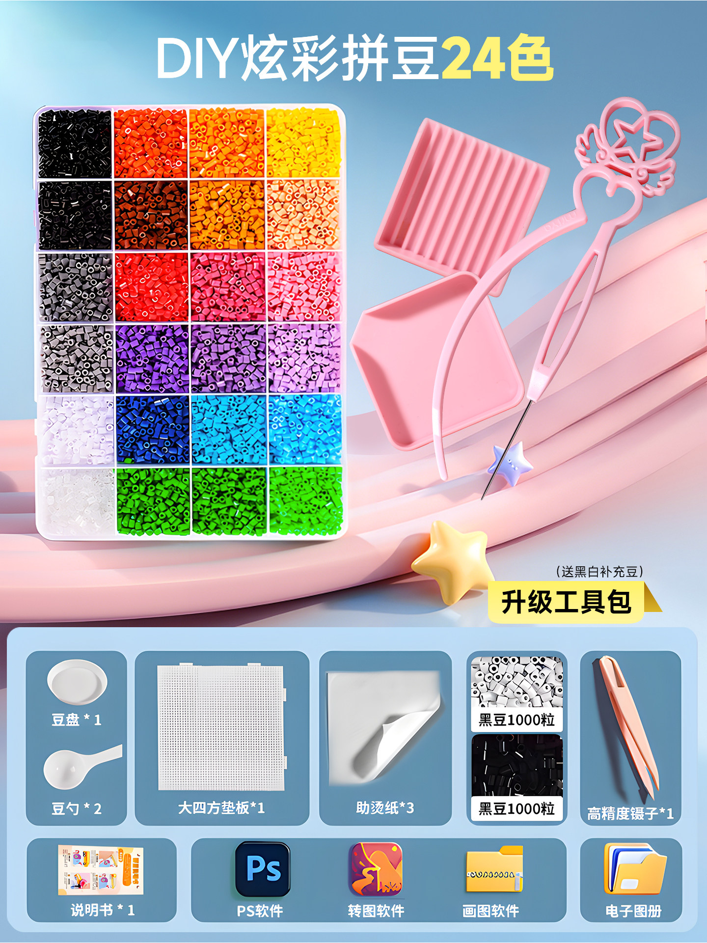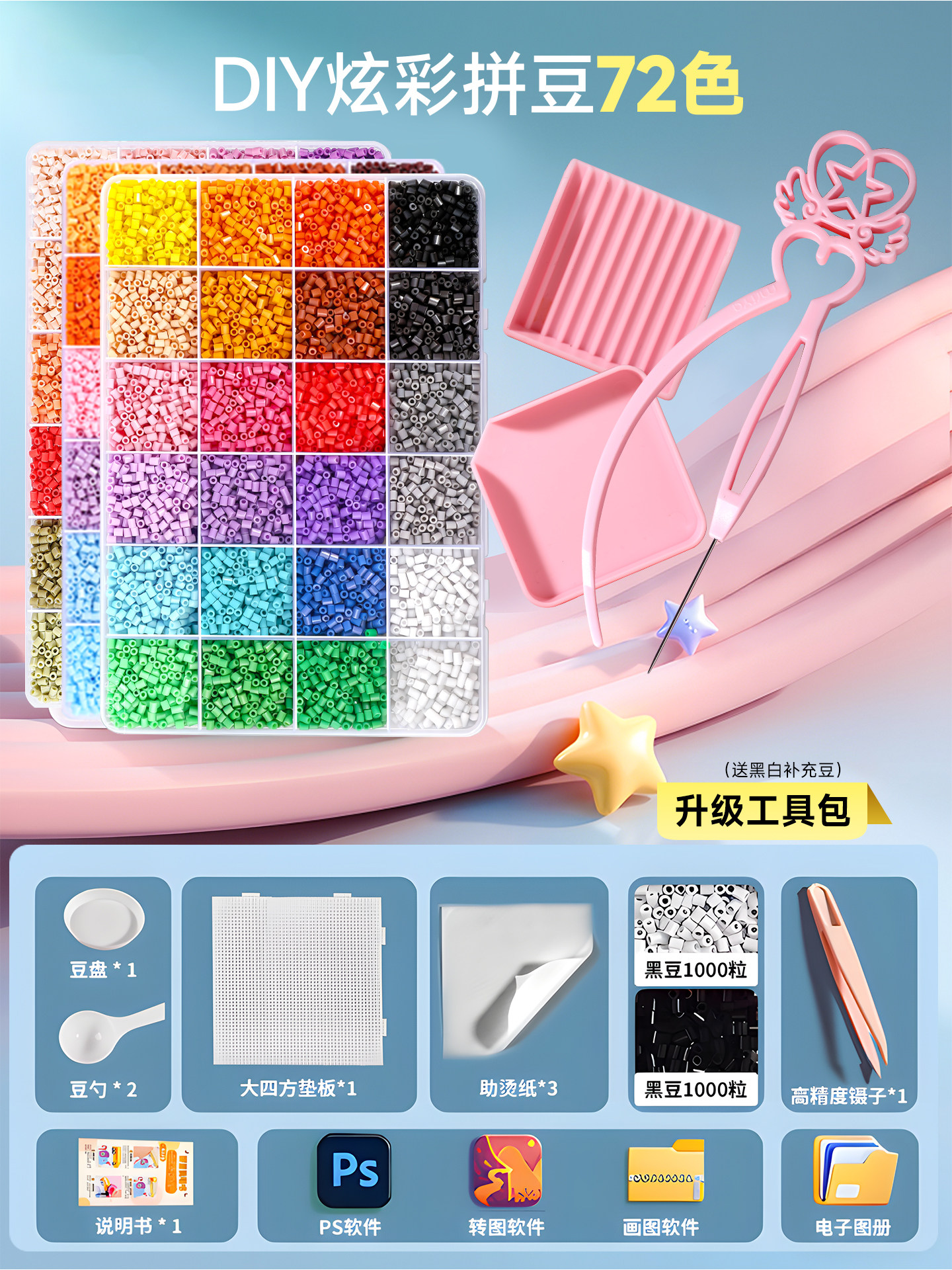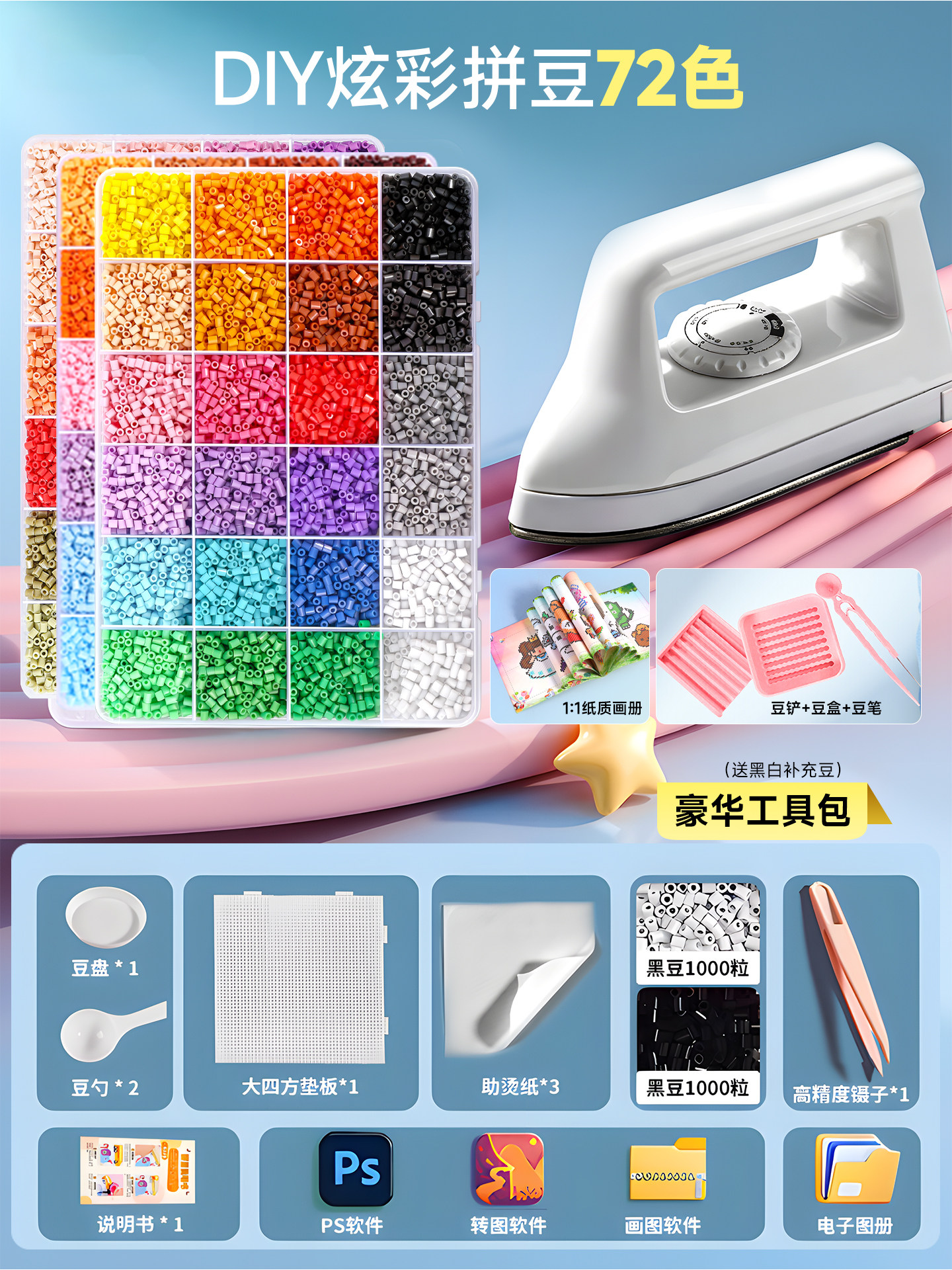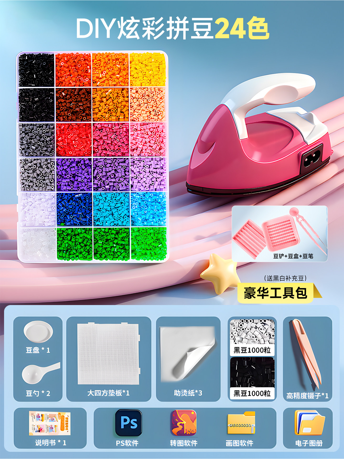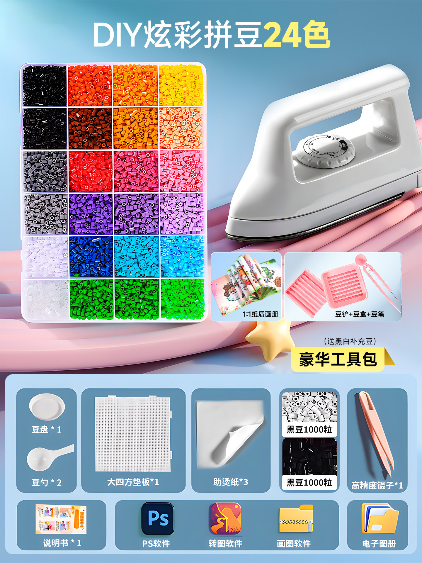 拼豆豆手工diy套装融合豆专用熨斗全套工具补充材料包玩具女孩子