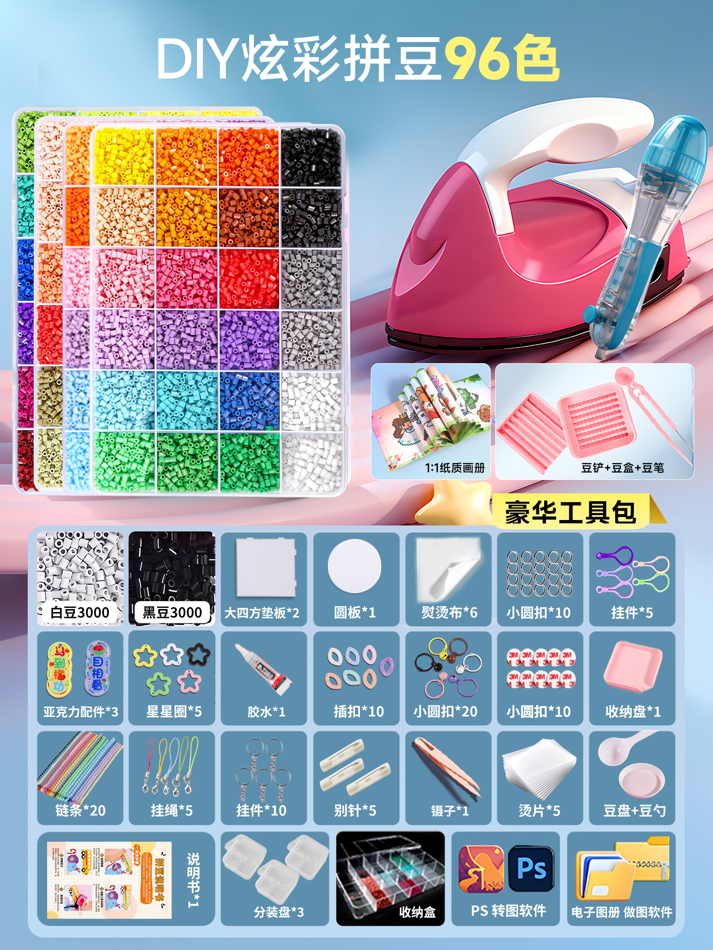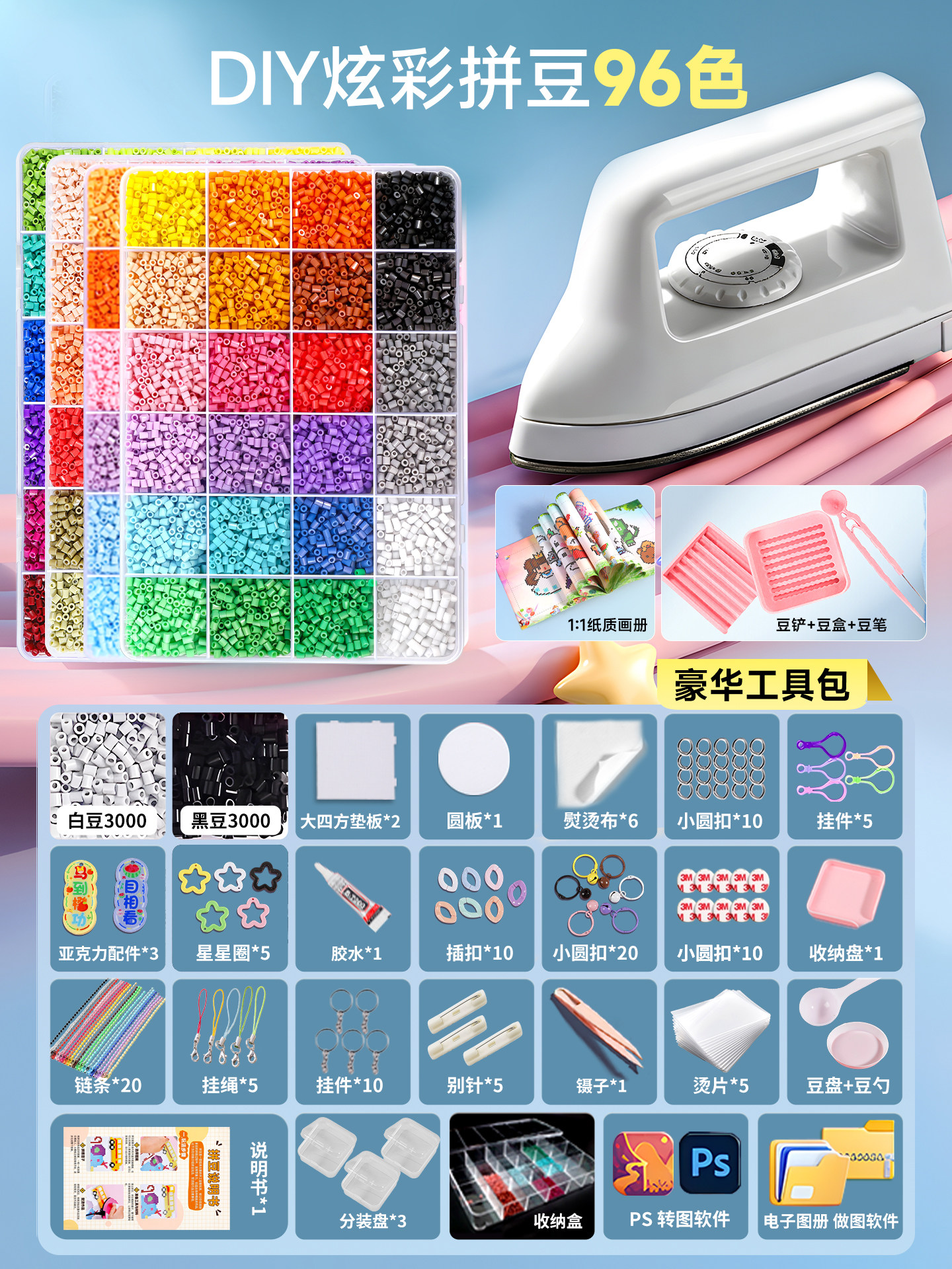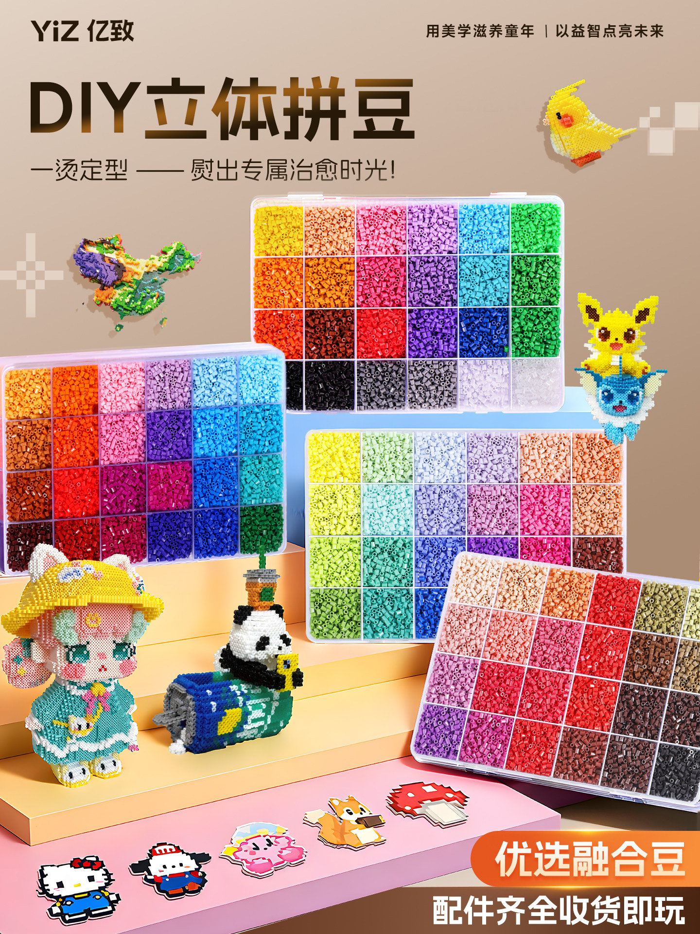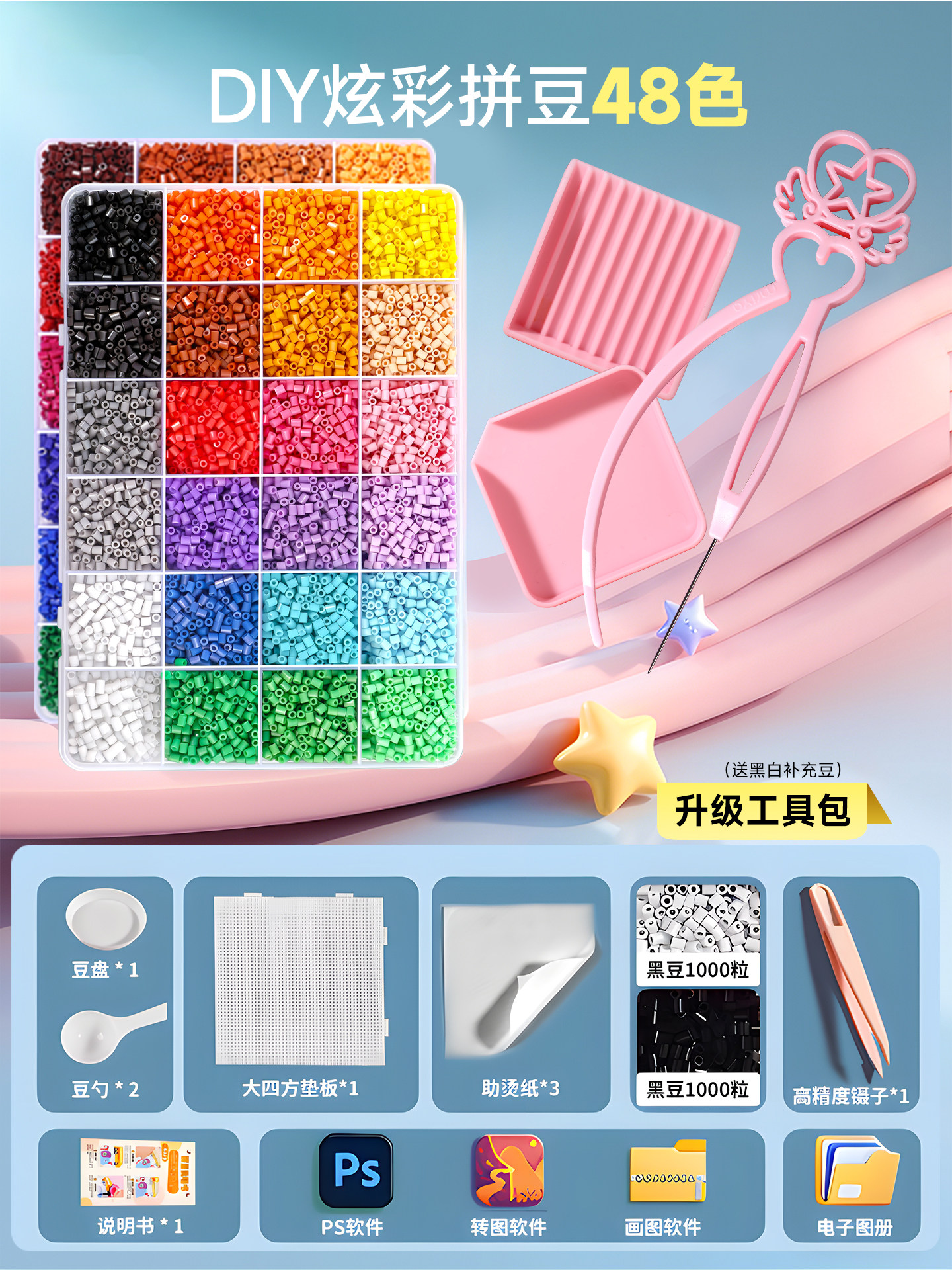 拼豆豆手工diy套装融合豆专用熨斗全套工具补充材料包玩具女孩子