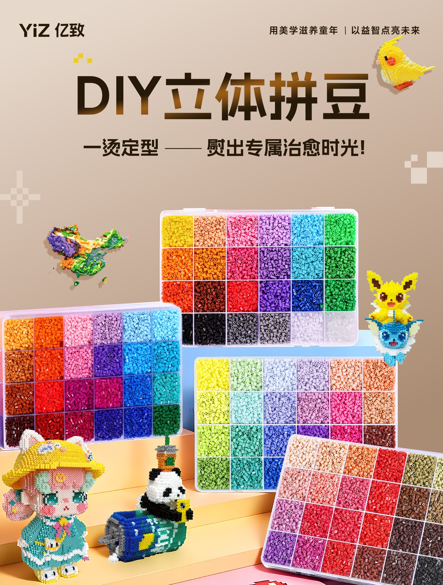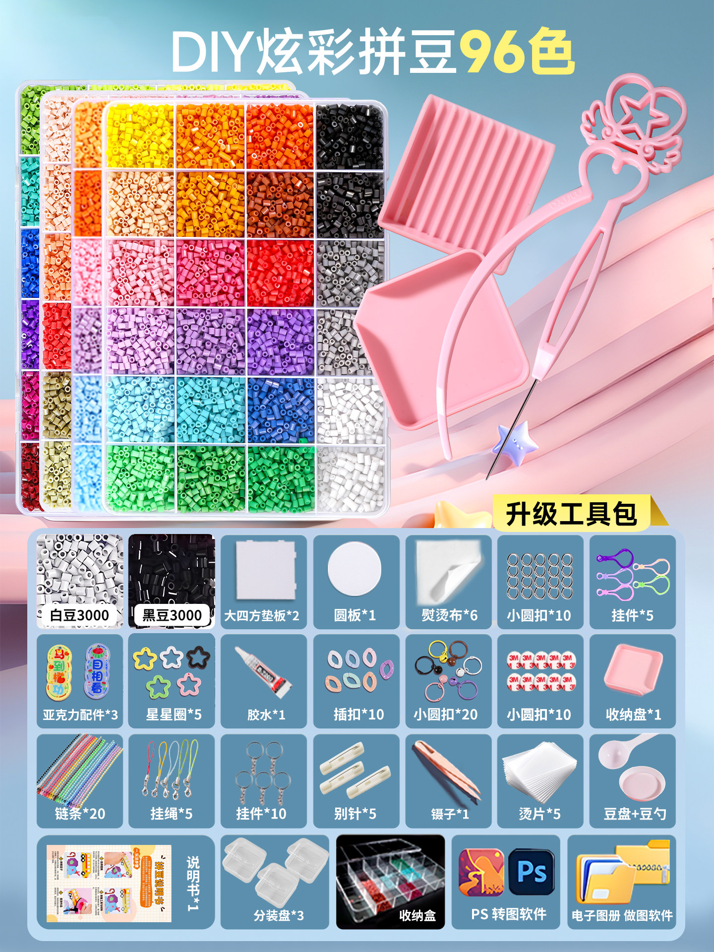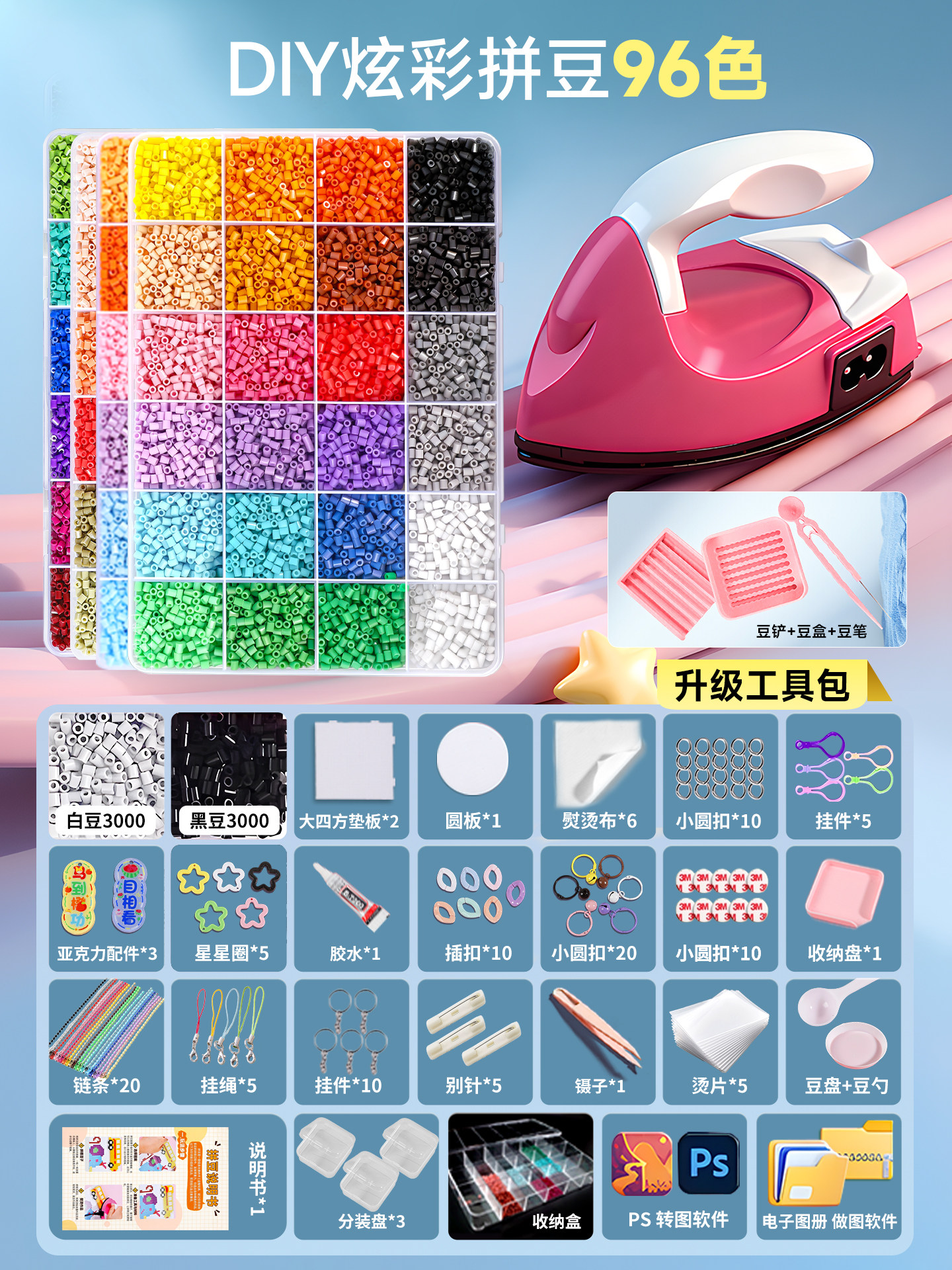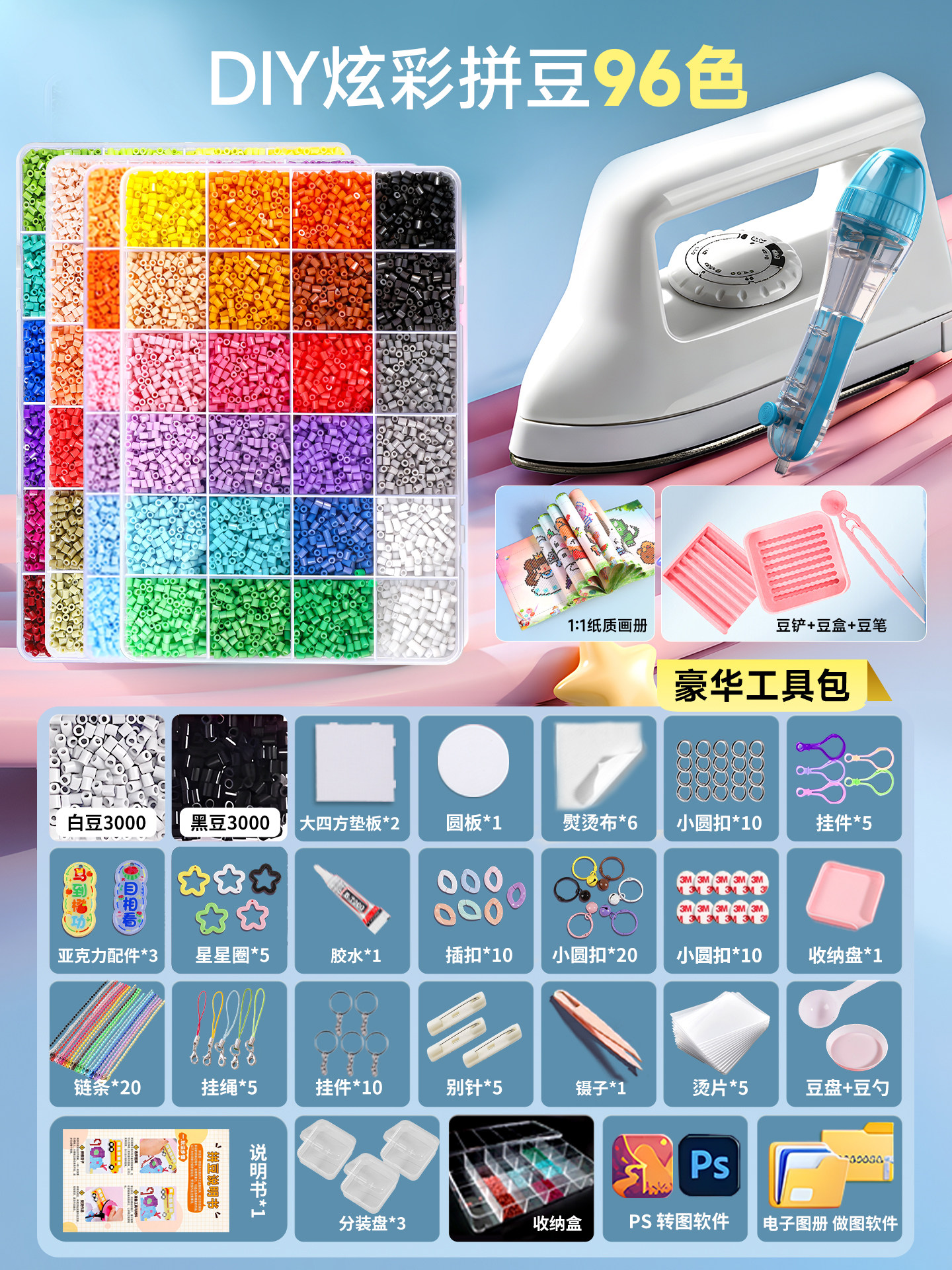 拼豆豆手工diy套装融合豆专用熨斗全套工具补充材料包玩具女孩子