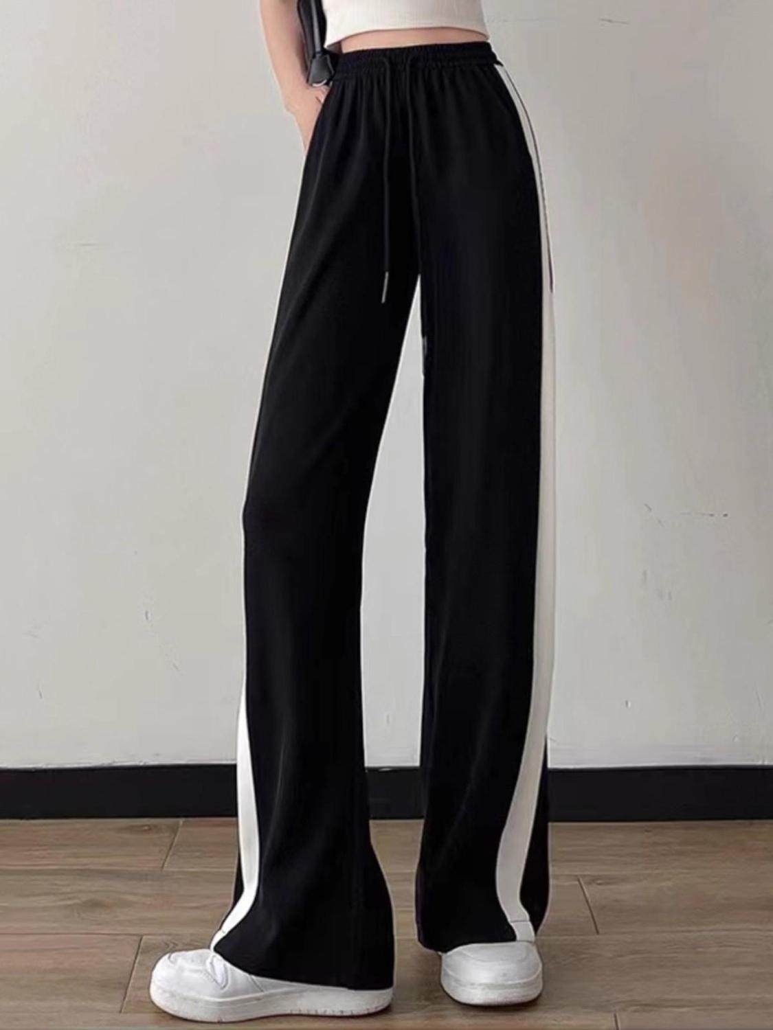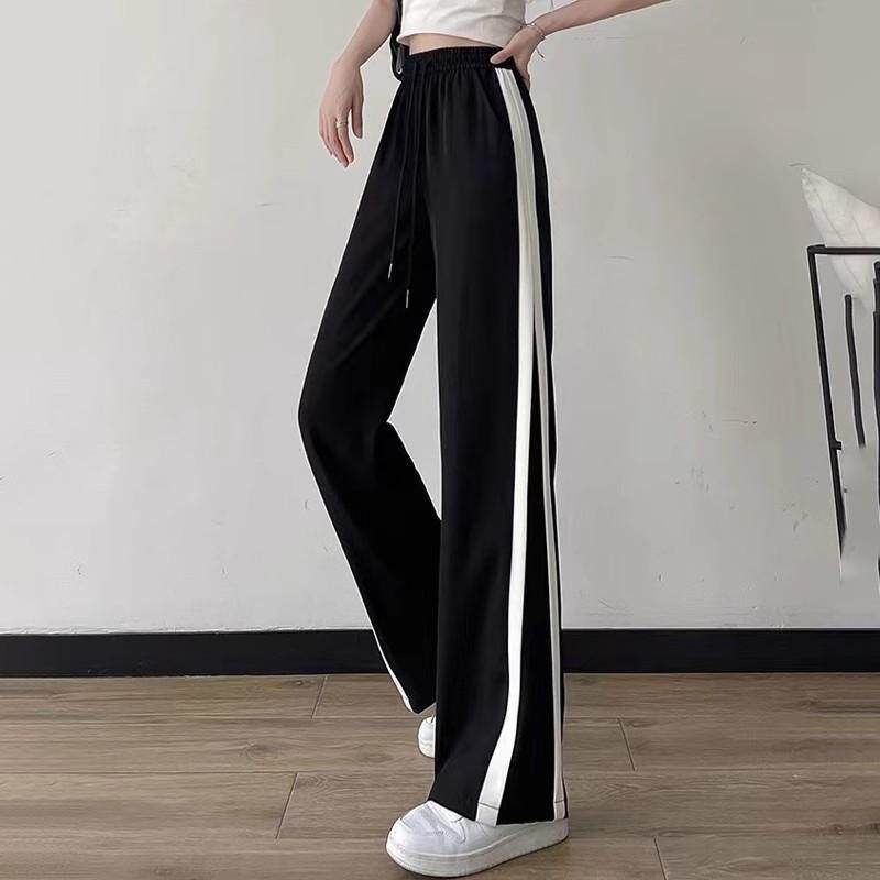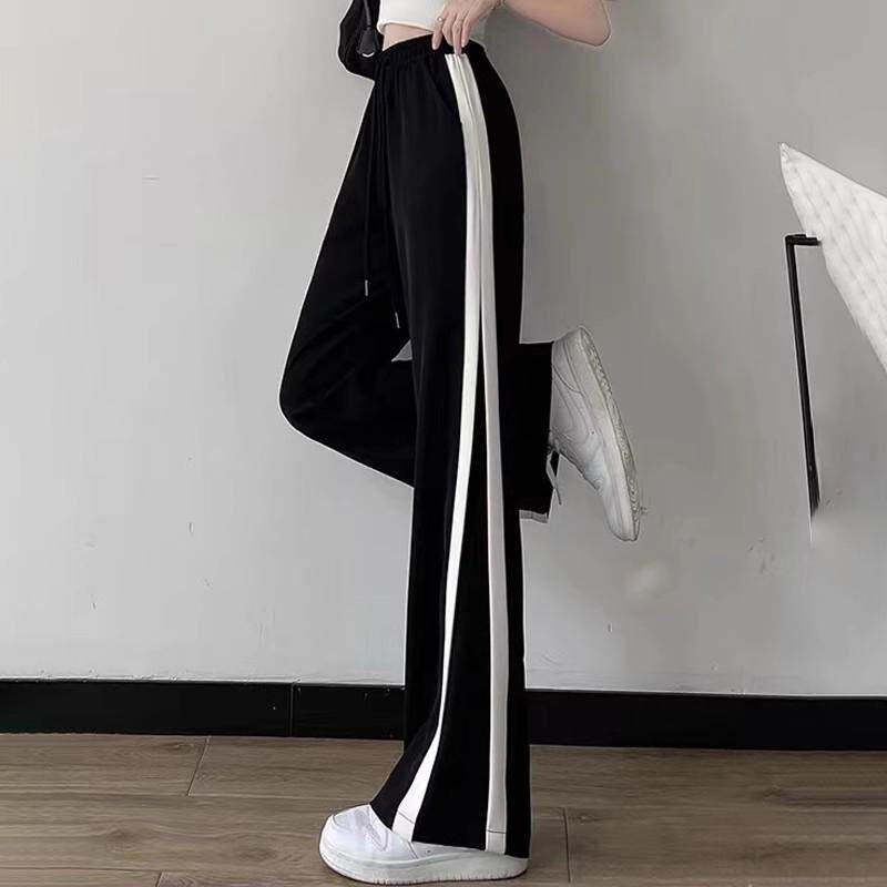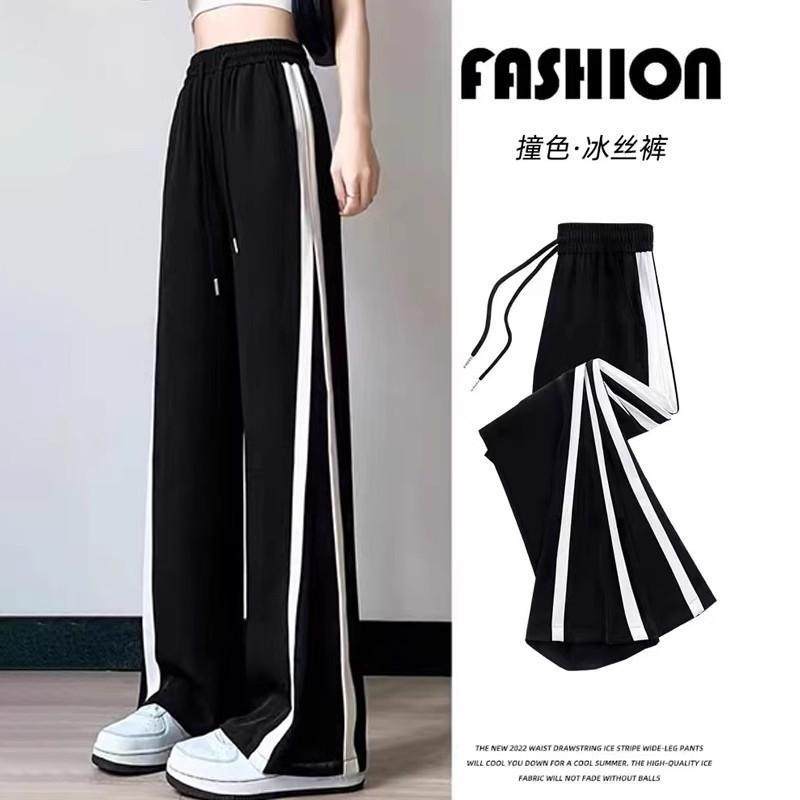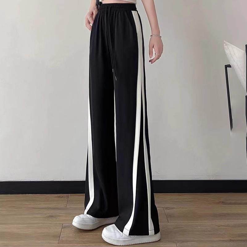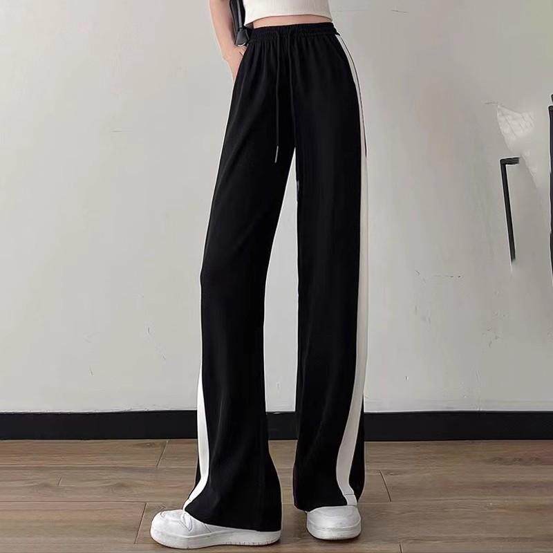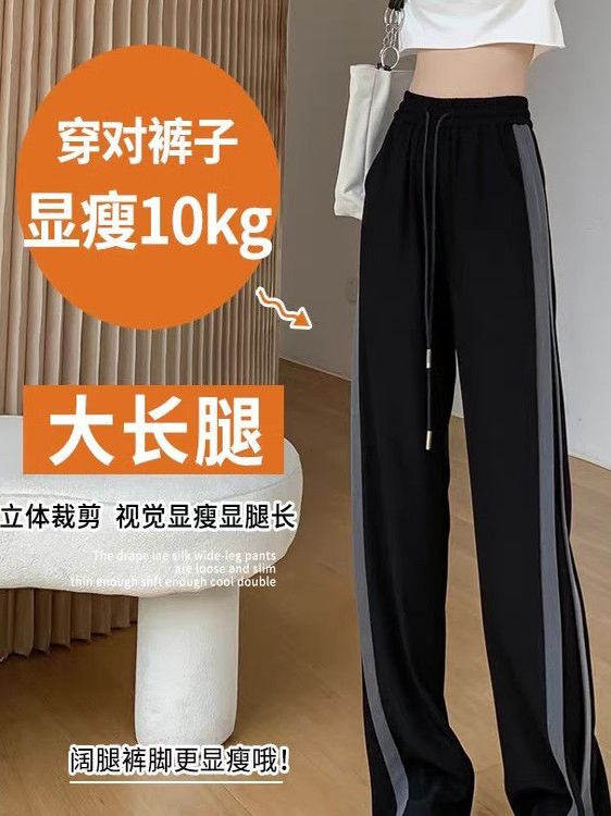 百搭高腰宽松运动休闲裤小个子阔腿裤女垂感夏季薄款直筒裤学生
