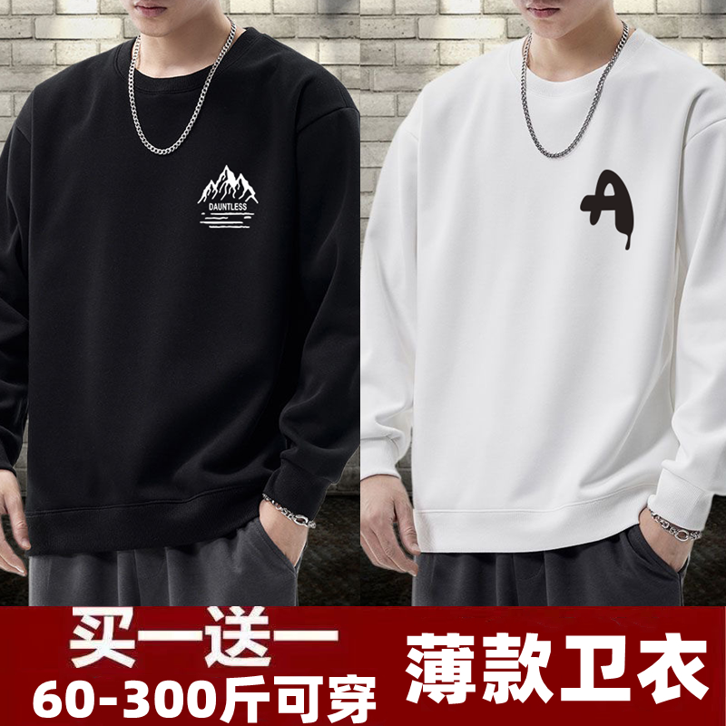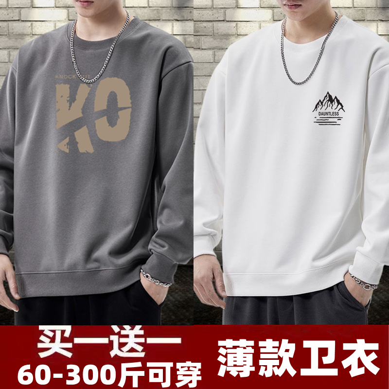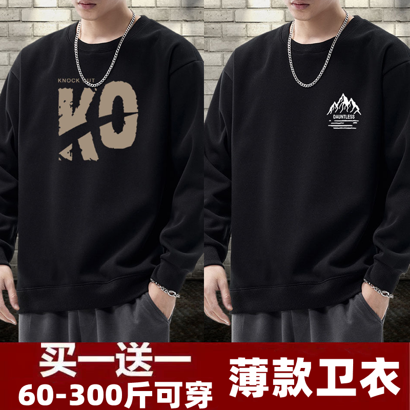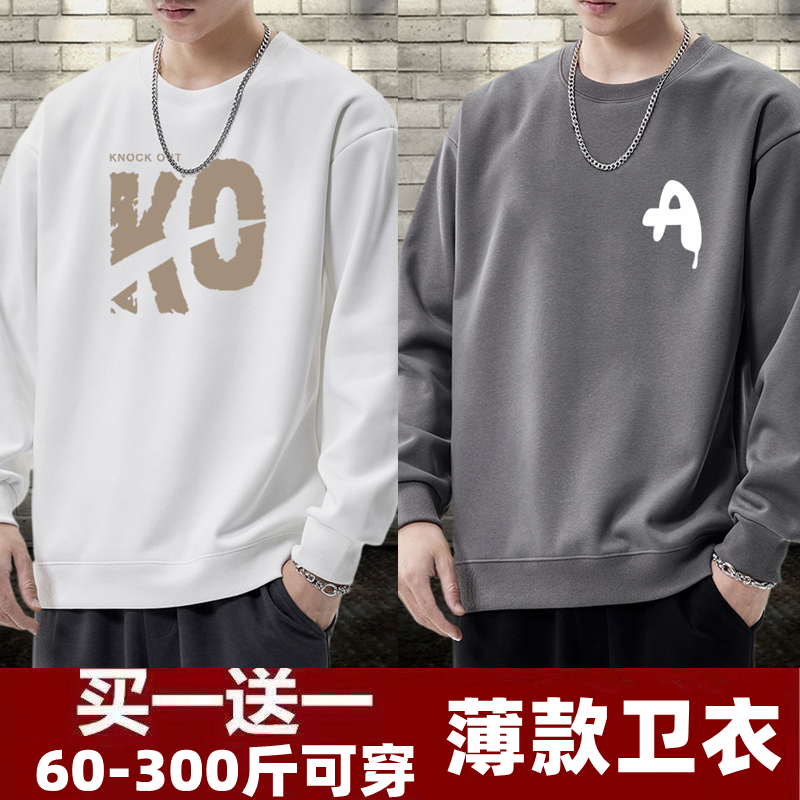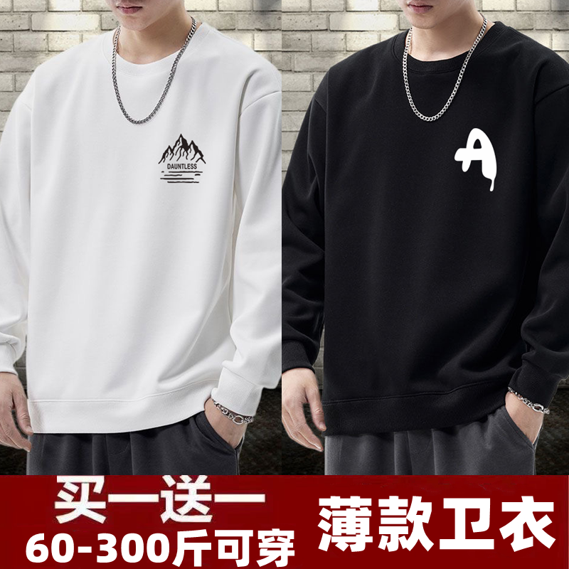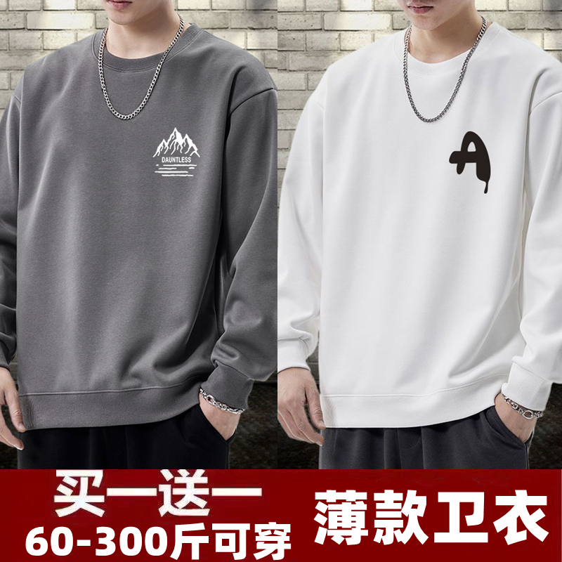 男士卫衣春秋薄款大码男装长袖圆领套头外套2025新款港风打底男装