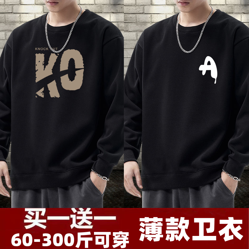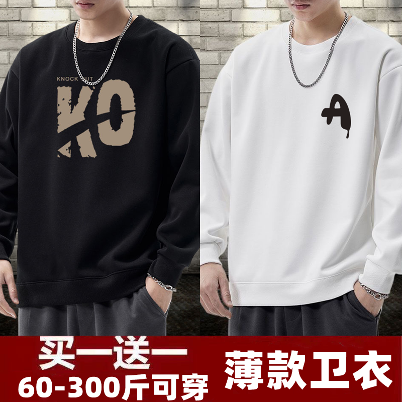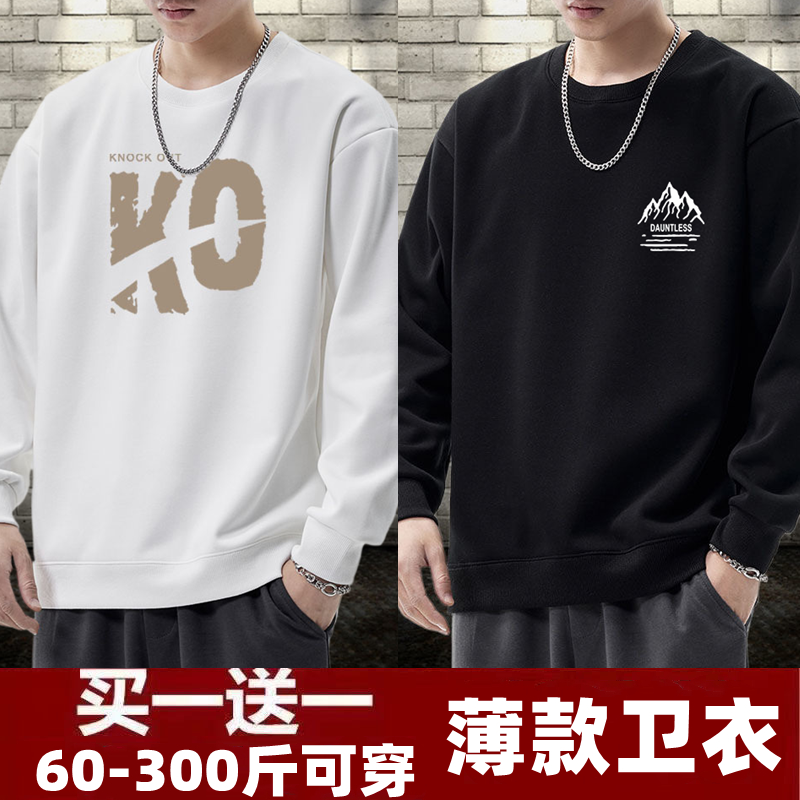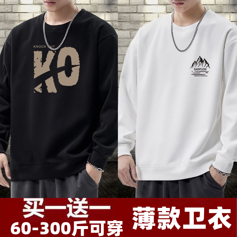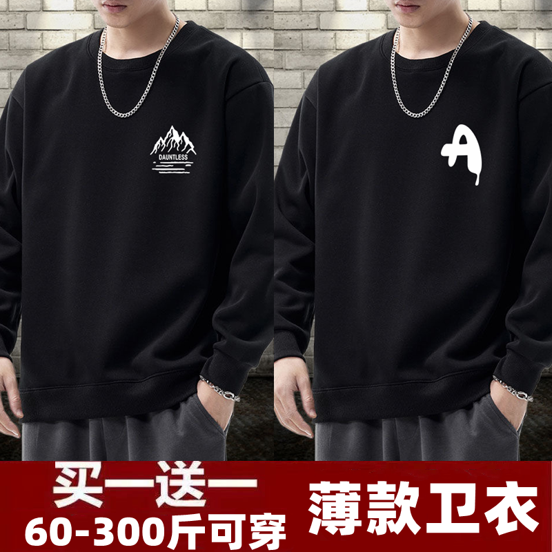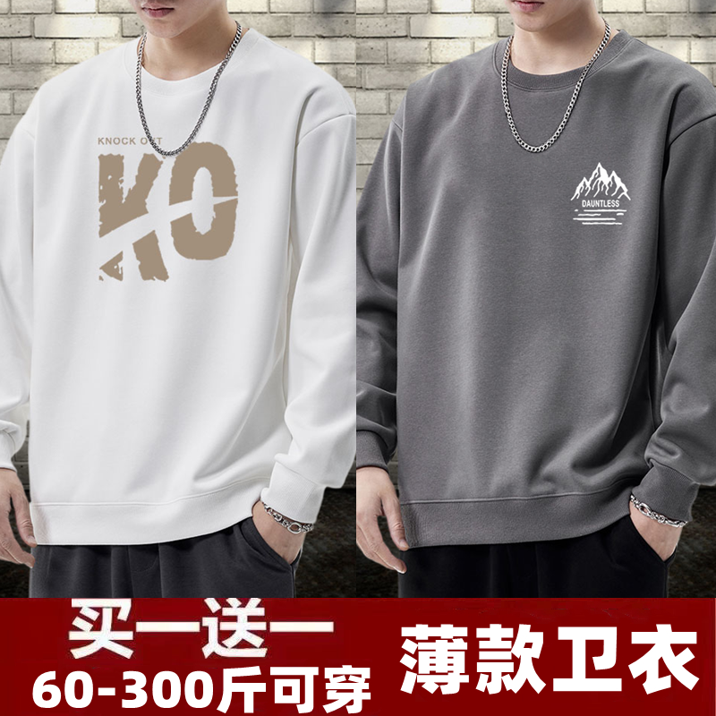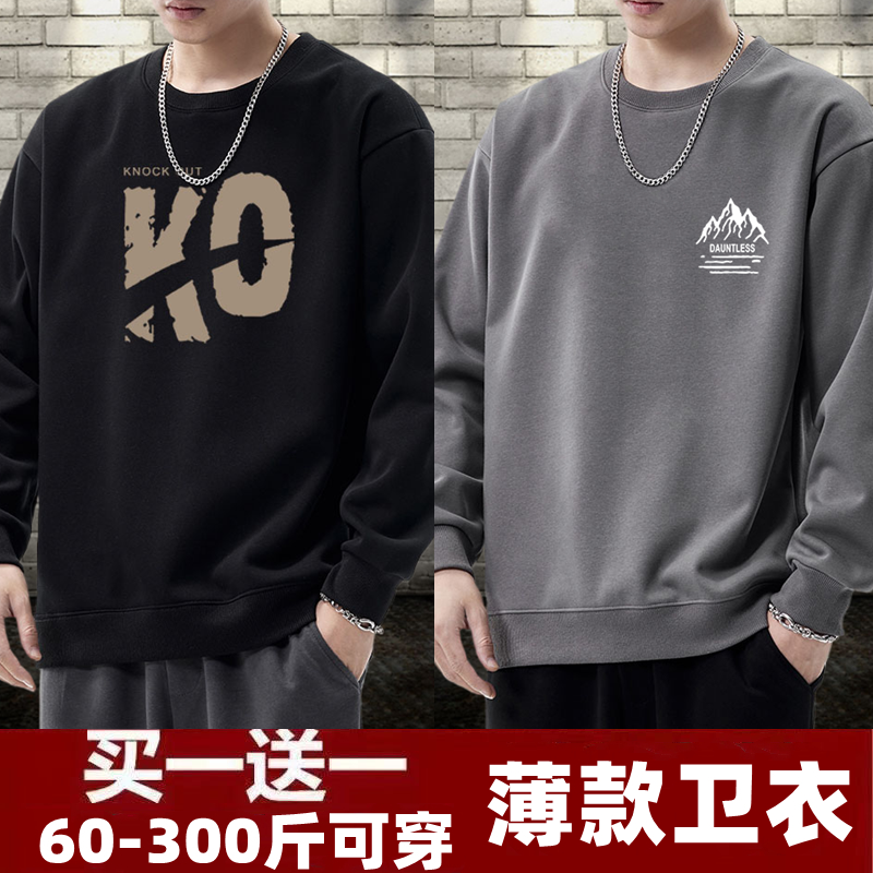 男士卫衣春秋薄款大码男装长袖圆领套头外套2025新款港风打底男装