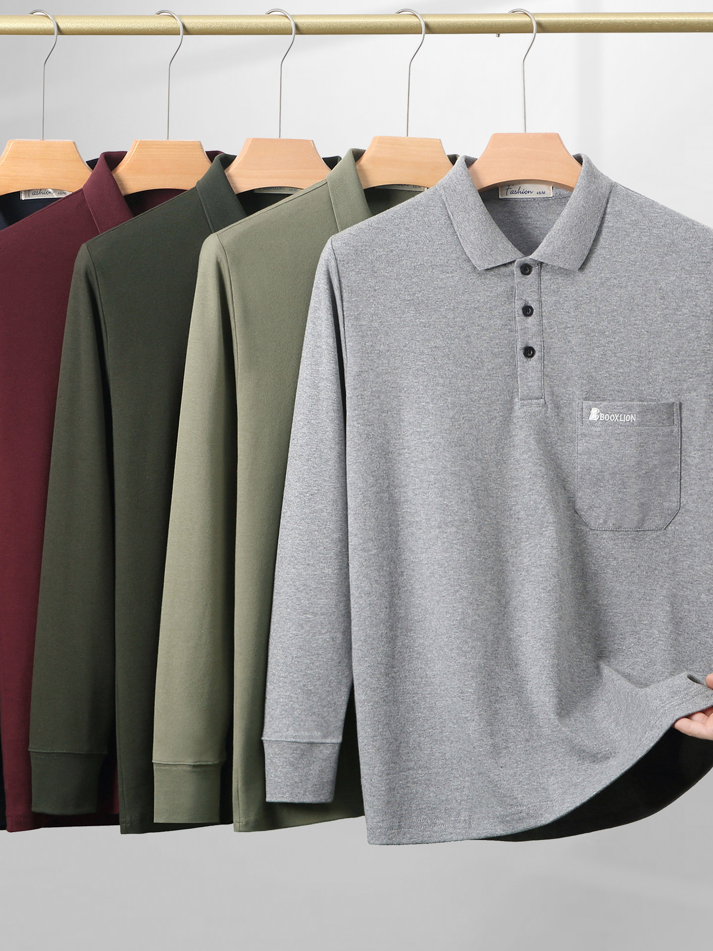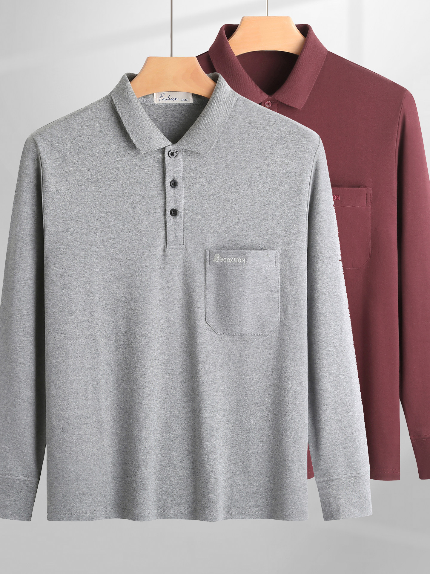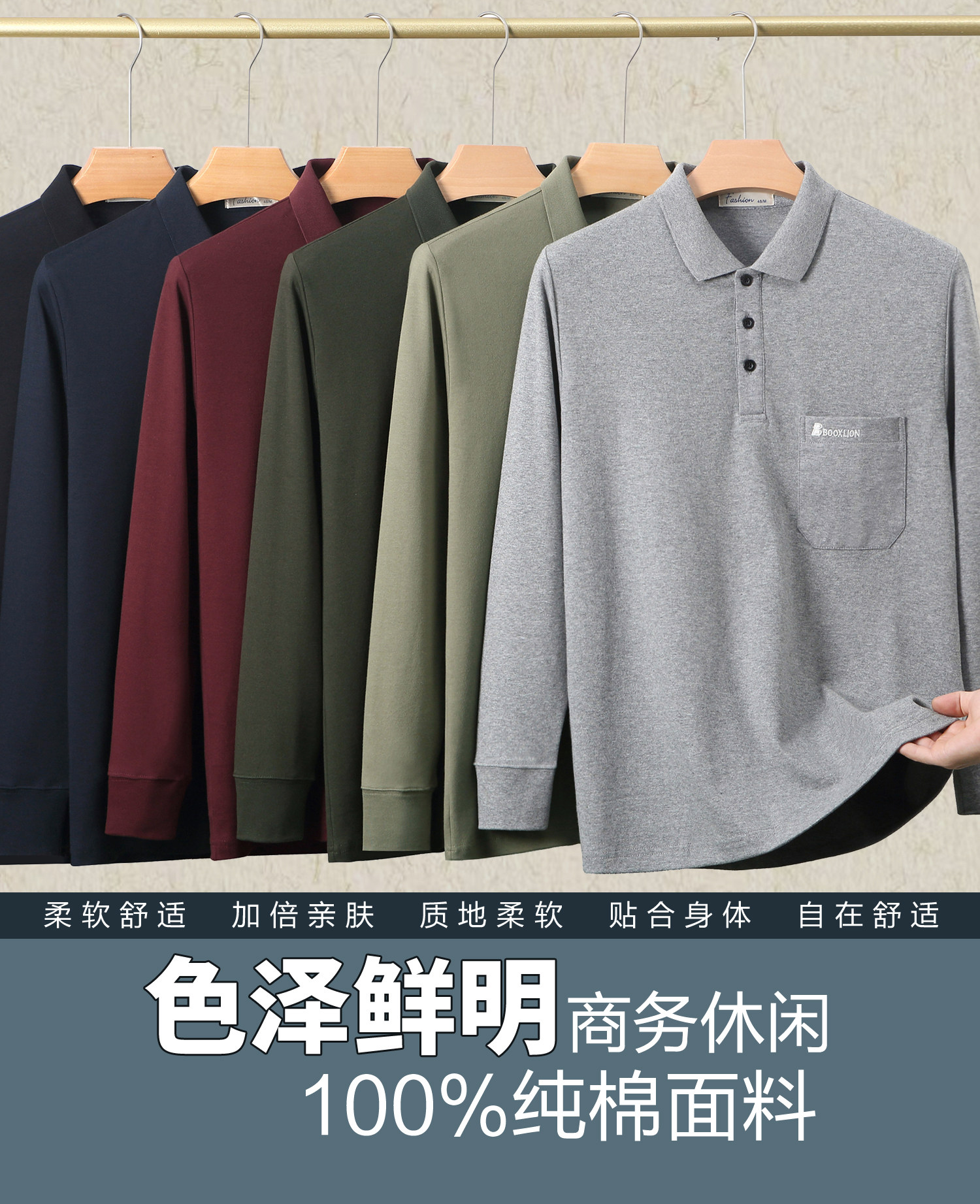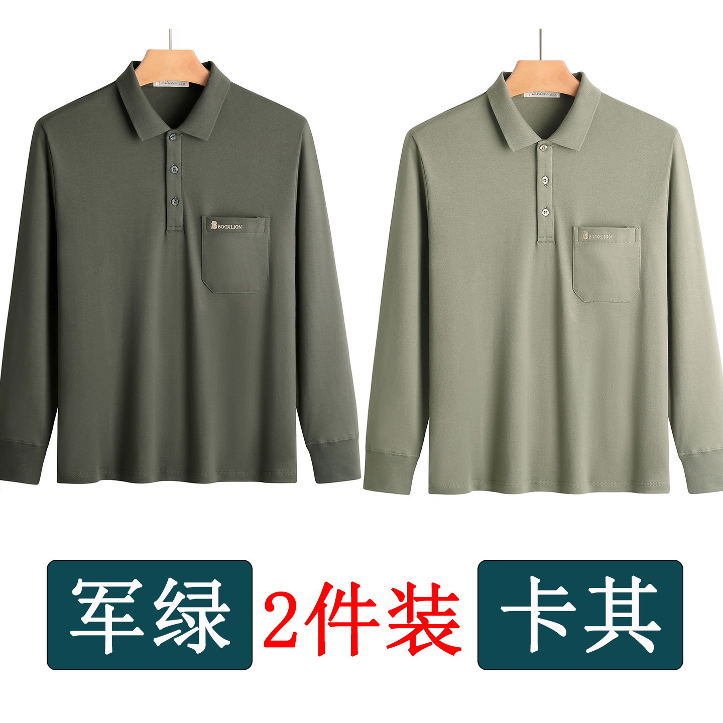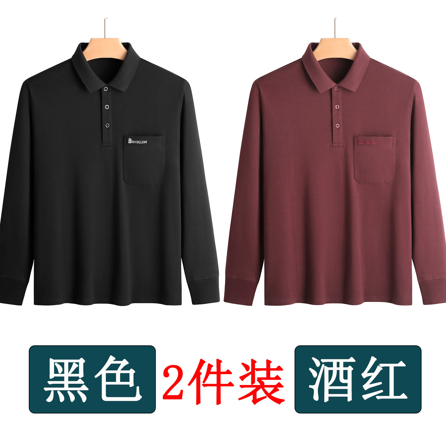 春秋新款纯棉长袖t恤男士翻领中老年人爸爸打底衫男装上衣有口袋