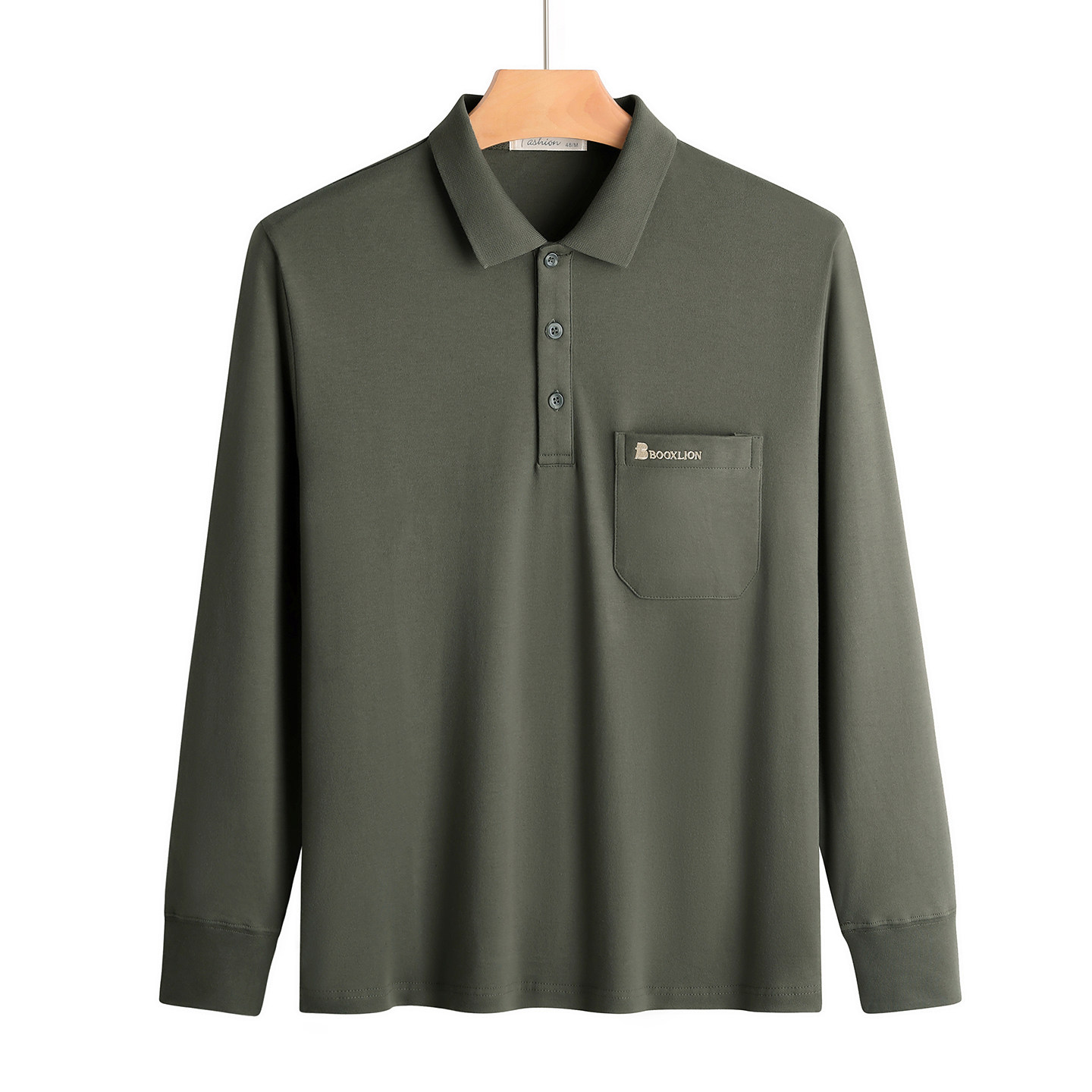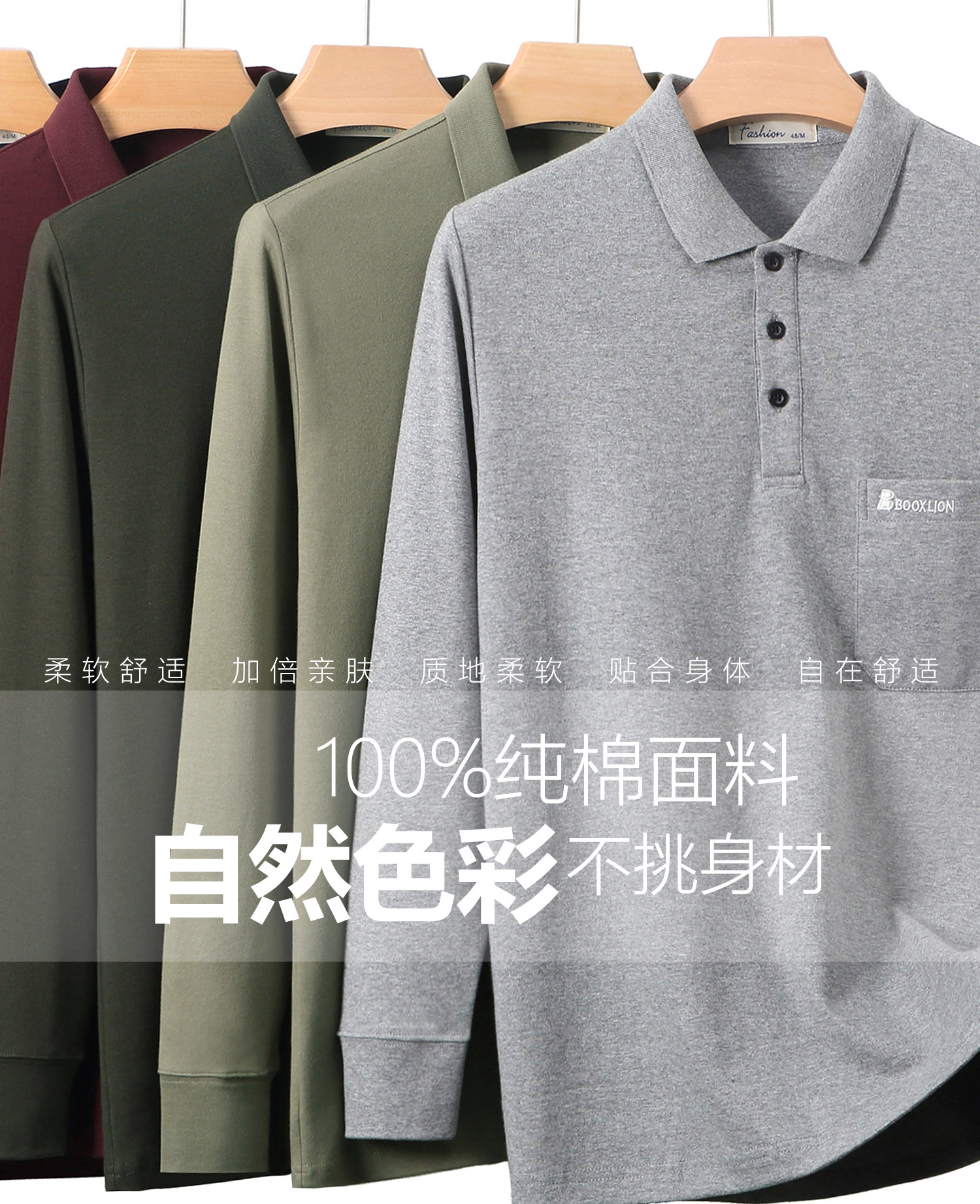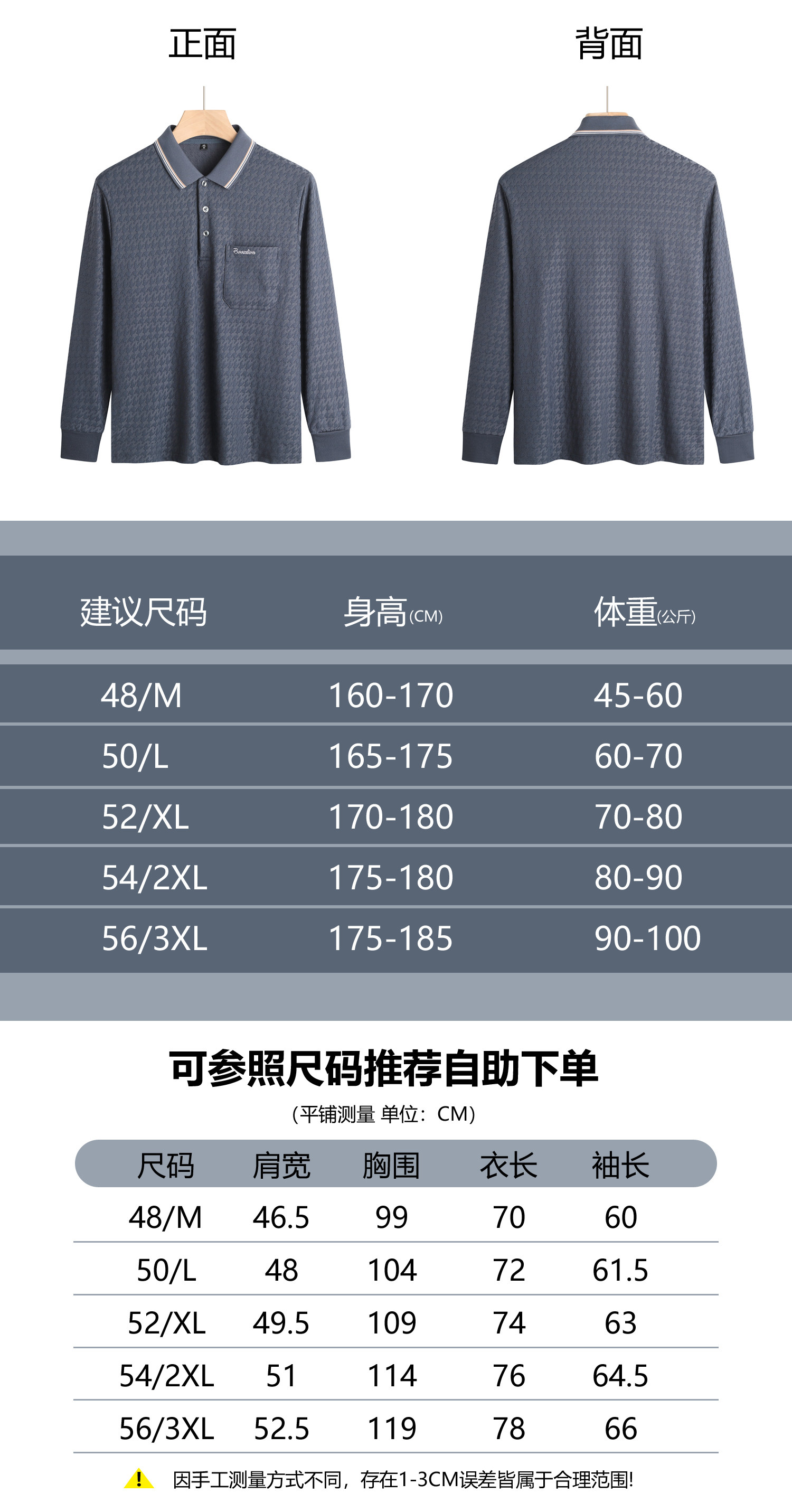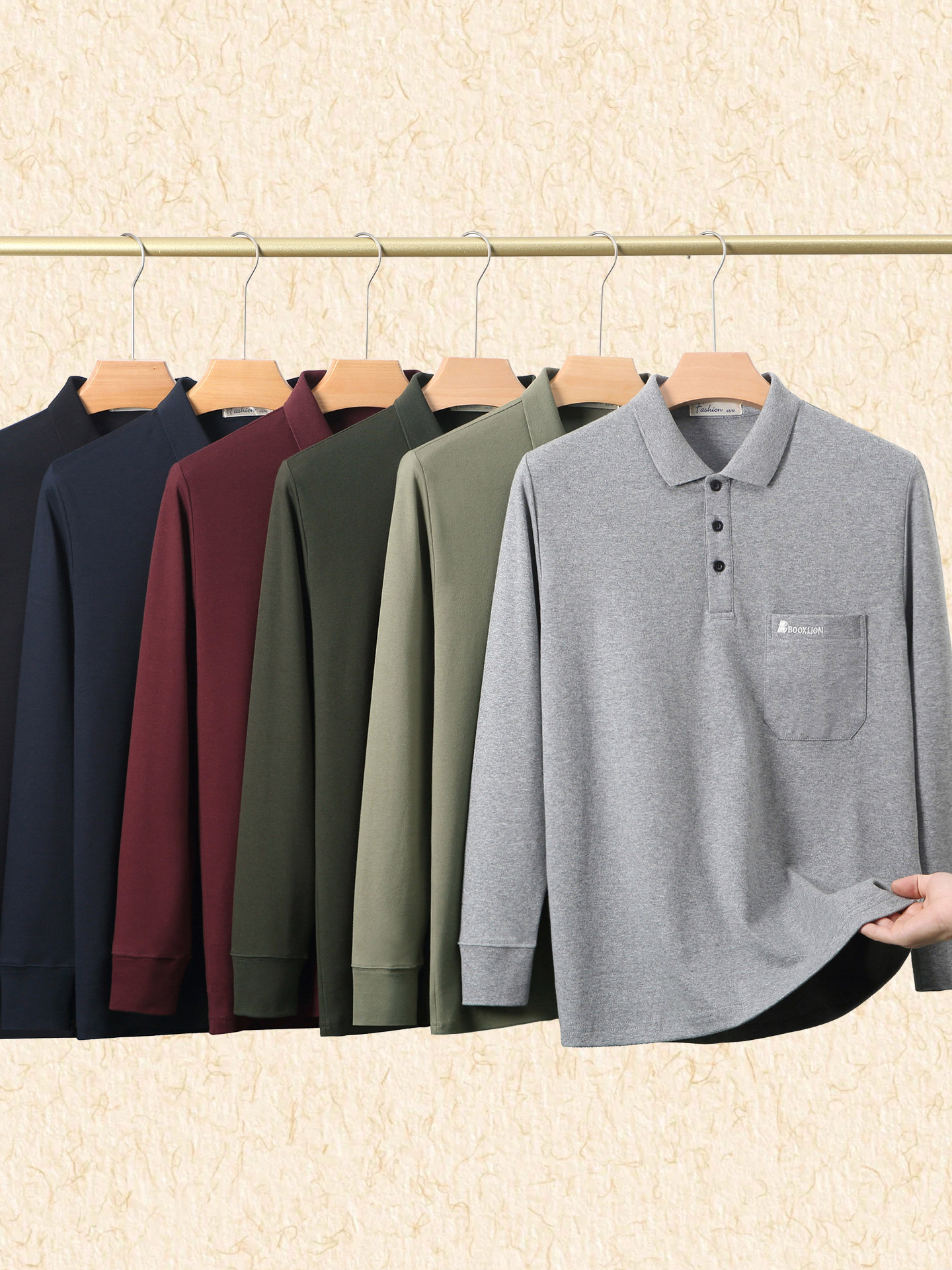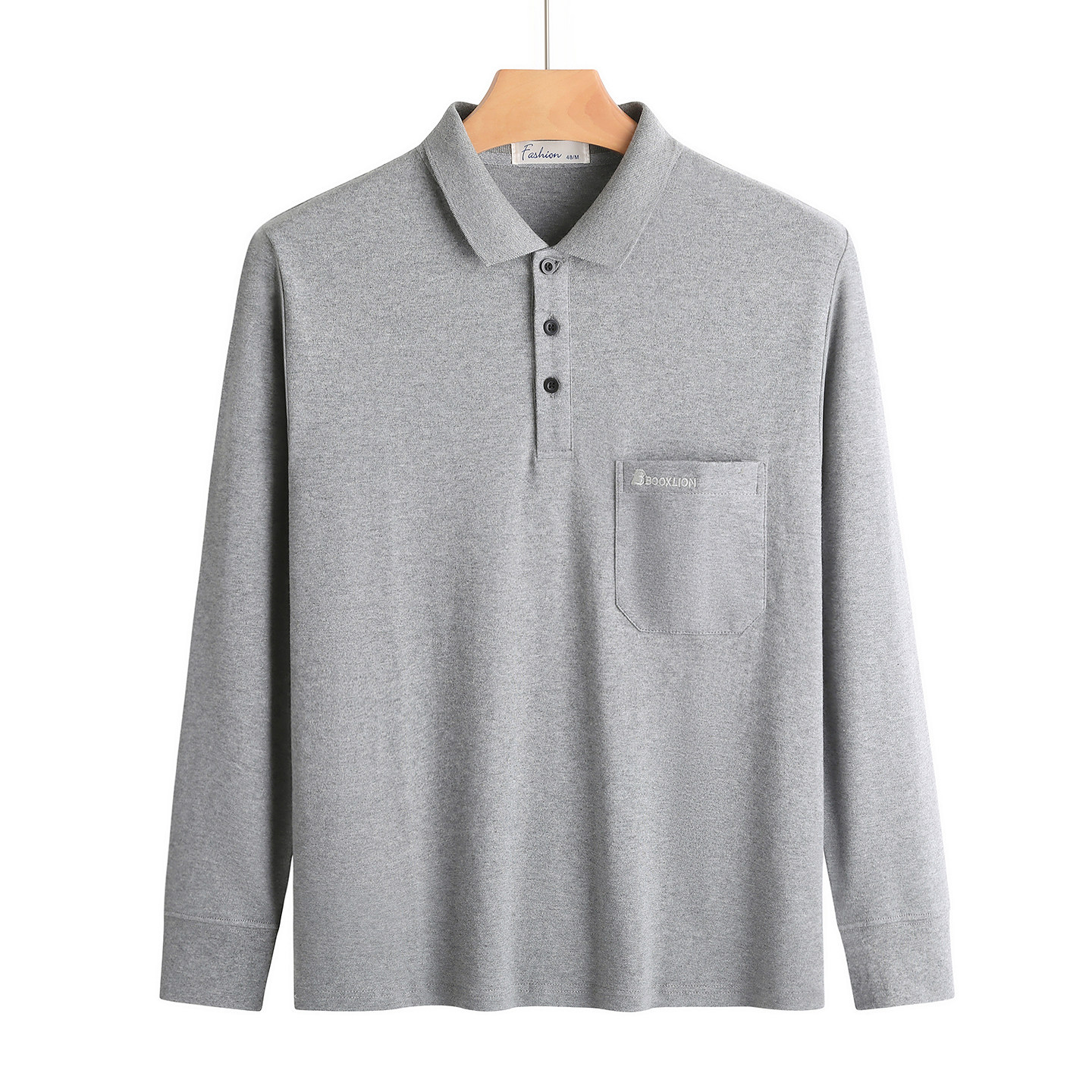 春秋新款纯棉长袖t恤男士翻领中老年人爸爸打底衫男装上衣有口袋