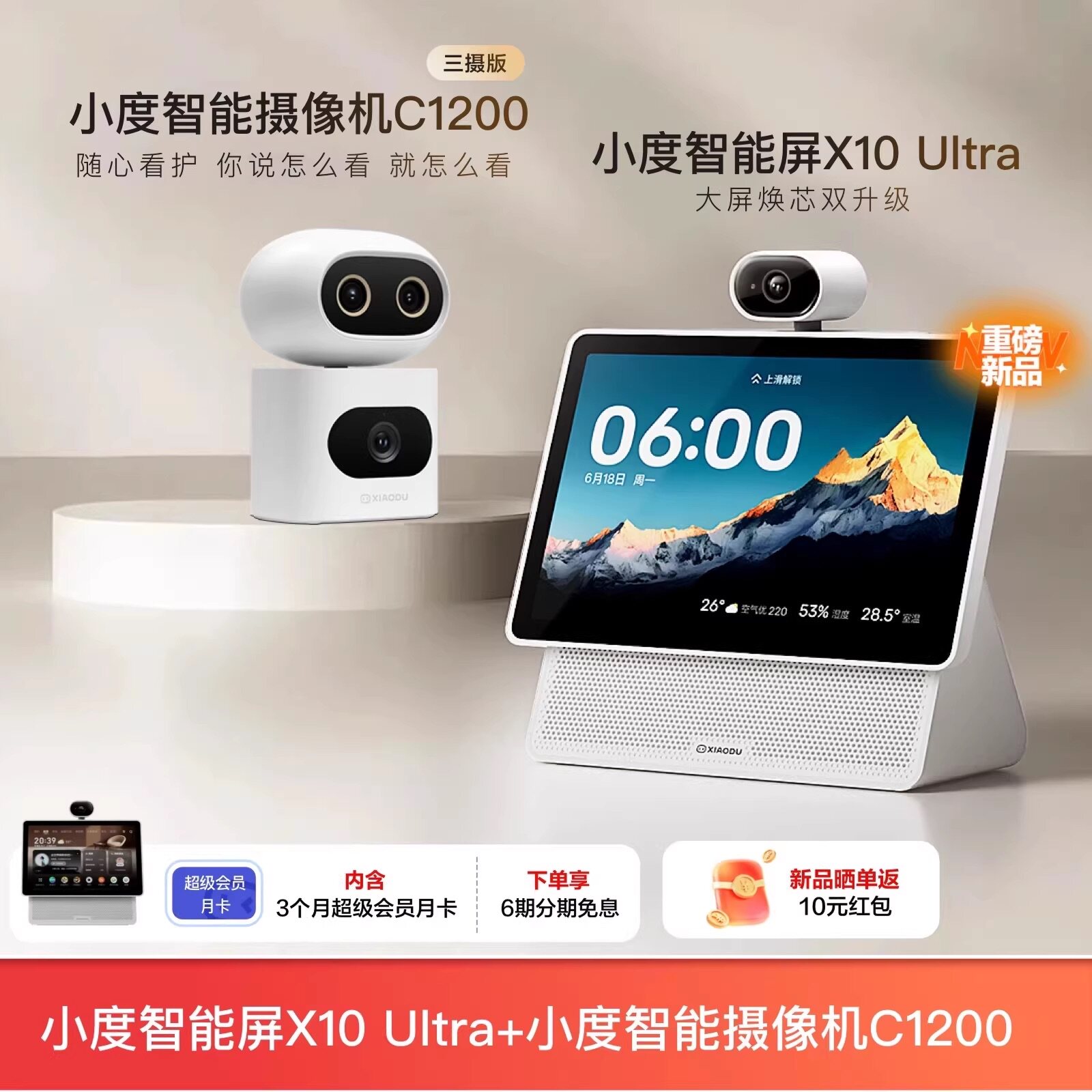 重磅新品|小度智能屏X10 Ultra看护10.1英寸家庭屏蓝牙音箱音响