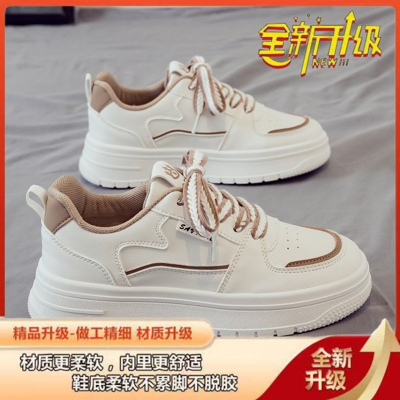 品牌清仓真皮春秋百搭小白鞋女休闲运动女鞋轻便老爹鞋厚底板鞋子