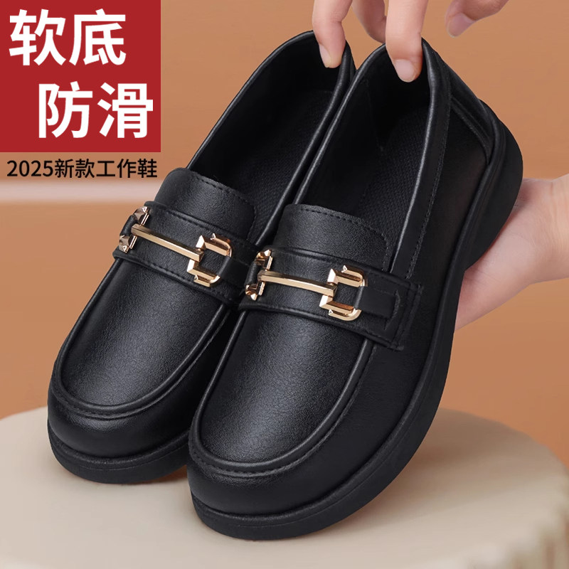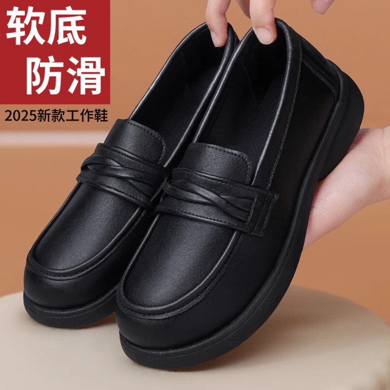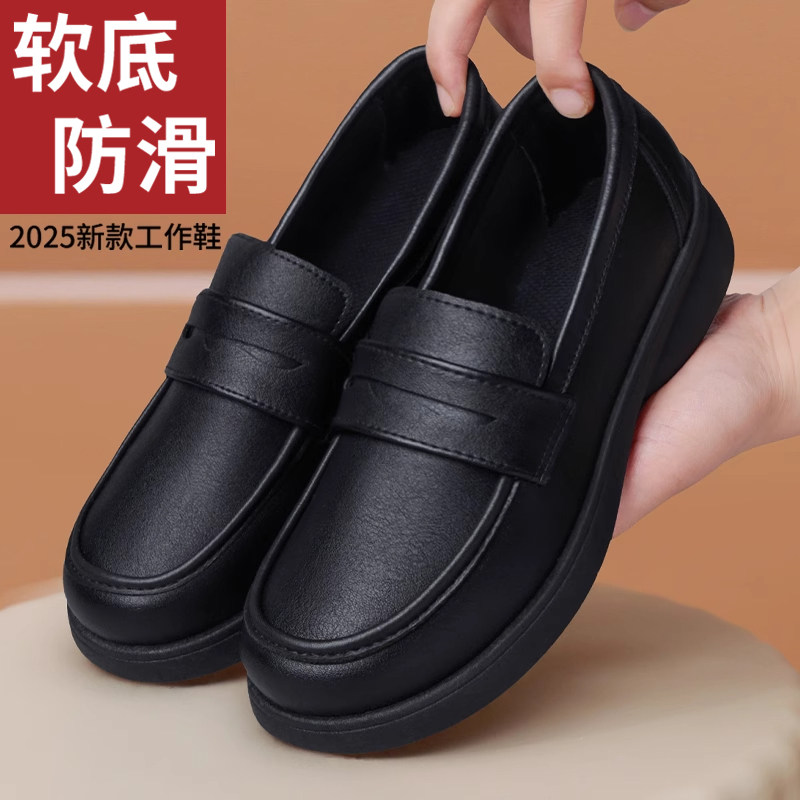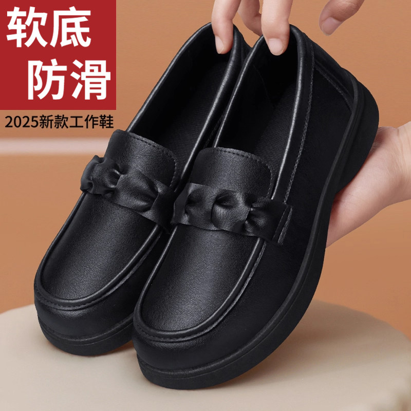 肯德基防滑工作鞋女皮鞋久站不易累厨房上班防水防油软底黑妈妈鞋