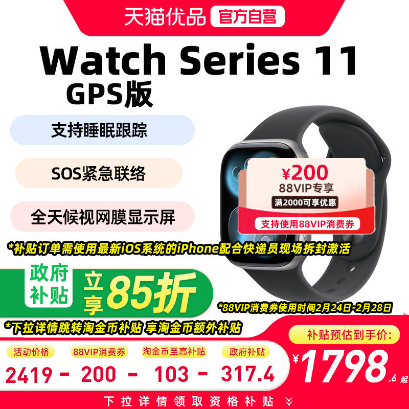 【政府补贴至高15%】Apple/苹果Apple Watch Series 11 智能手表GPS款铝金属表壳+运动型表带