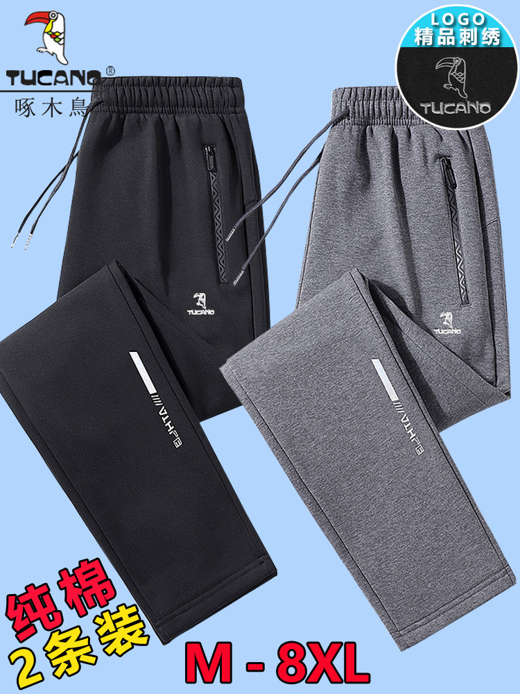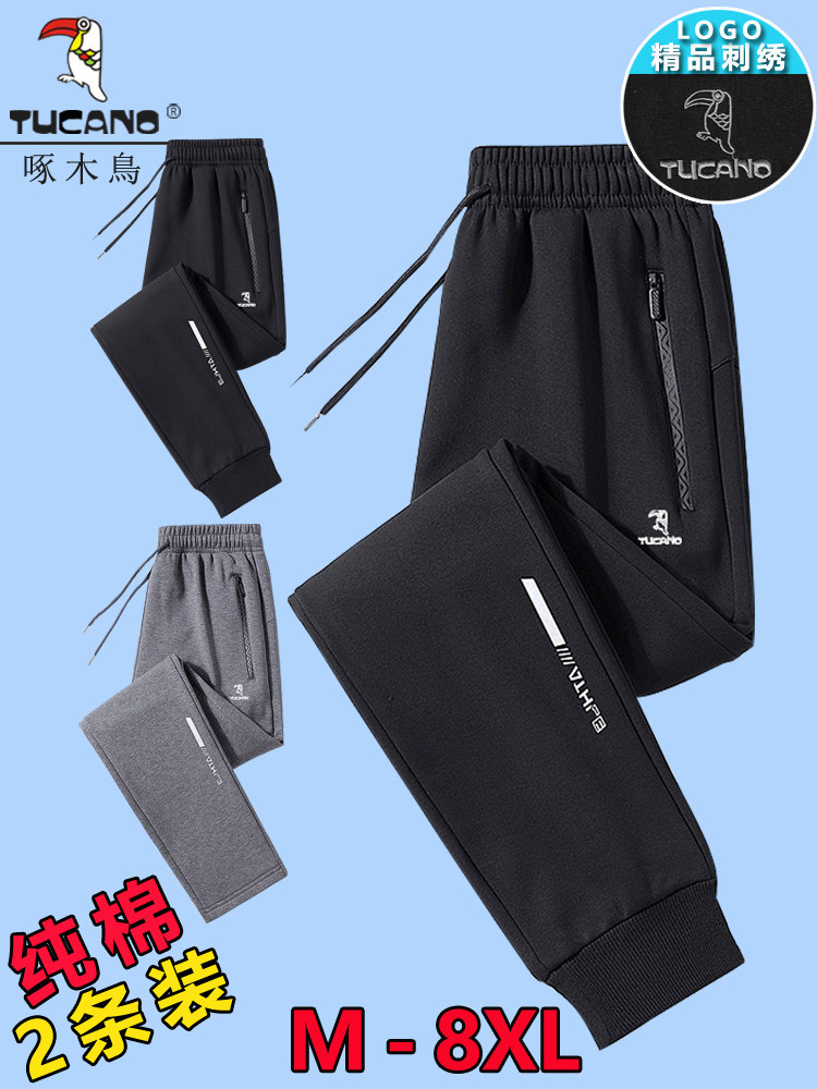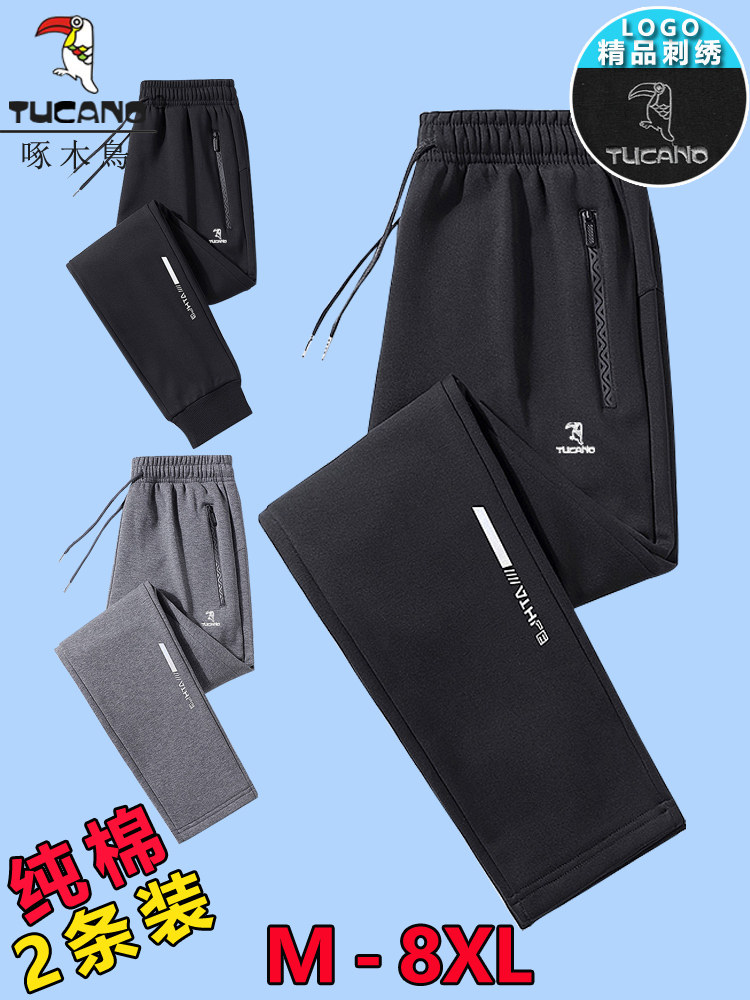 啄木鸟运动裤男春秋季2025新款宽松大码直筒束脚卫裤纯棉休闲长裤