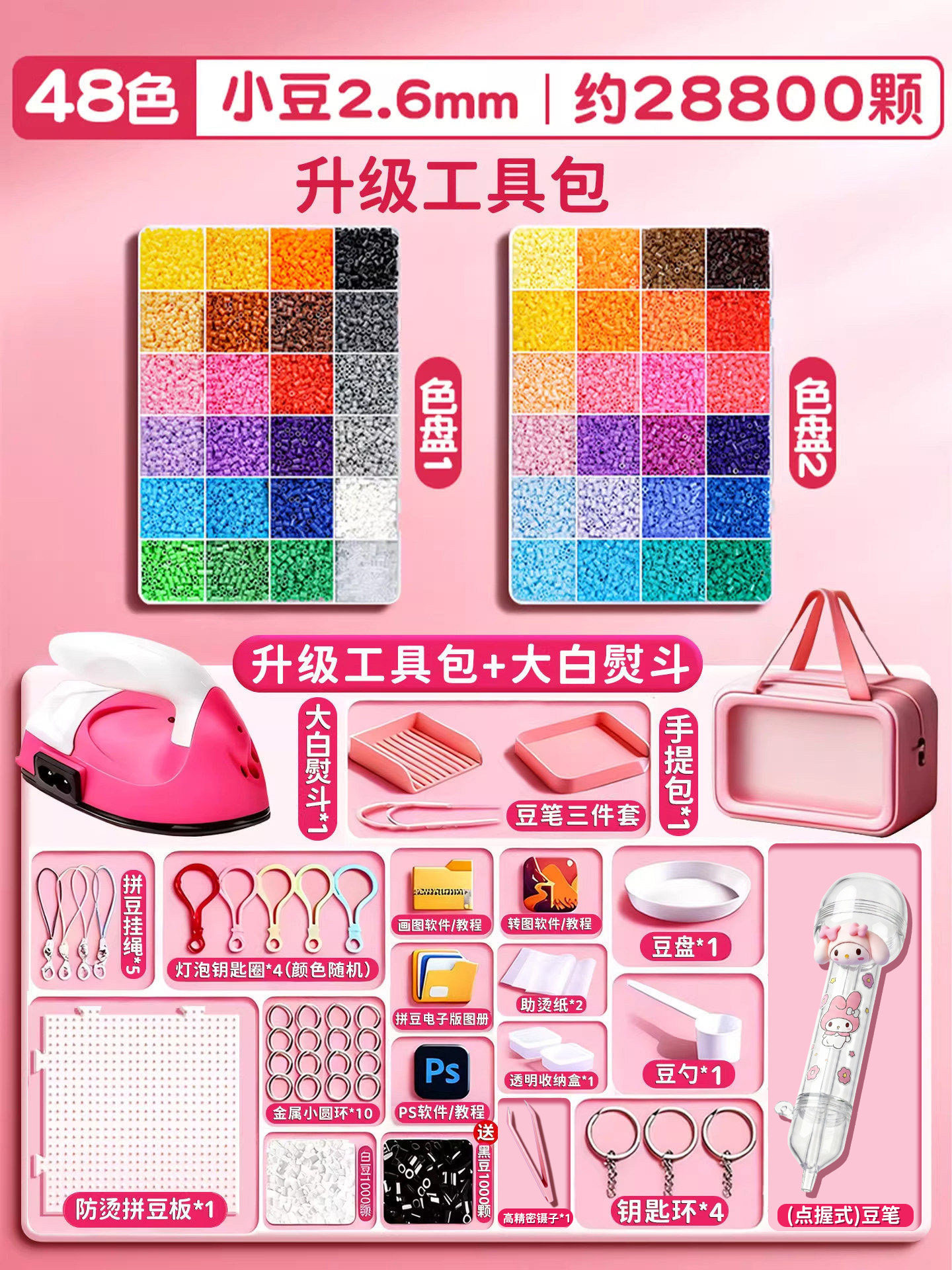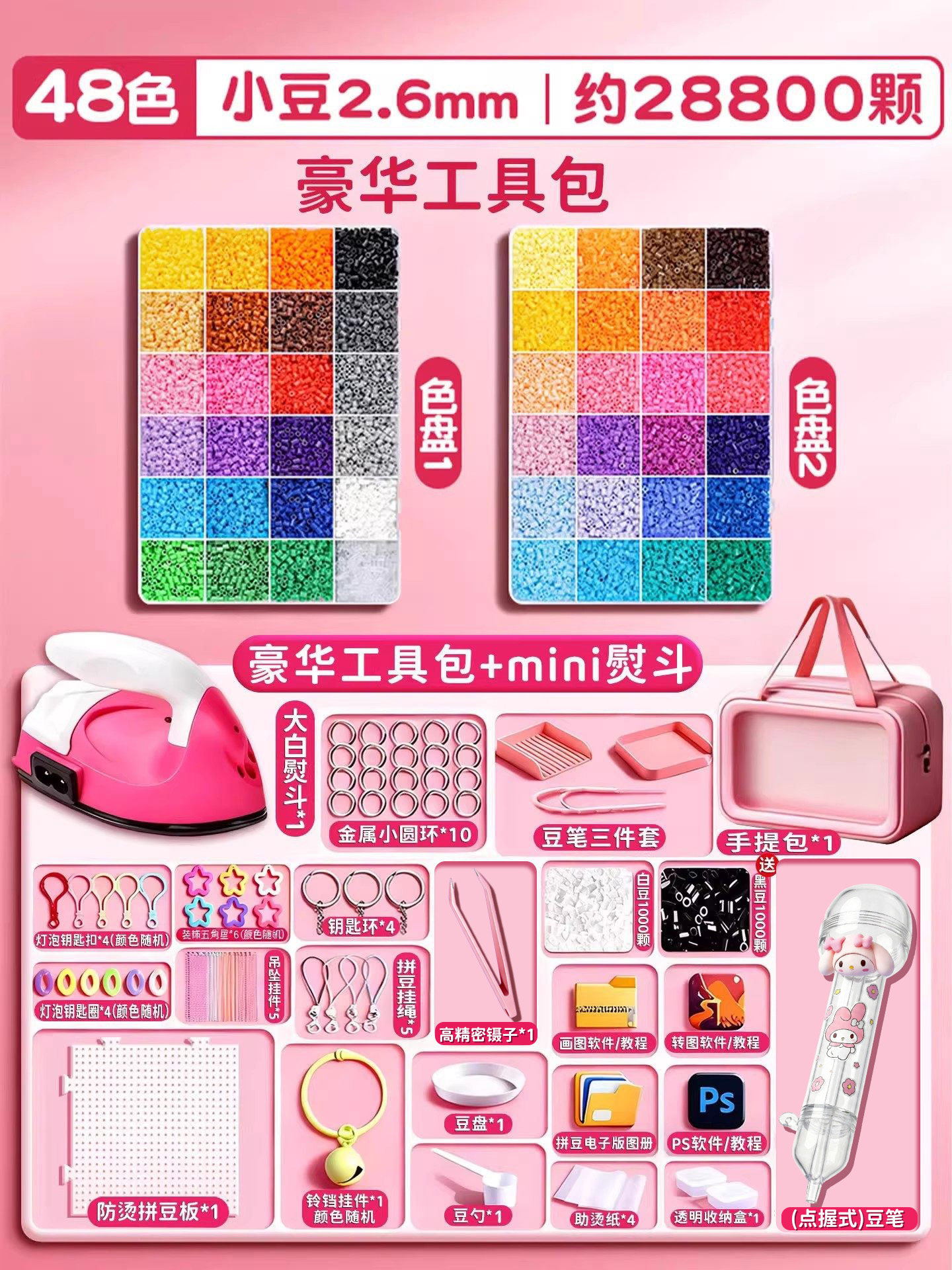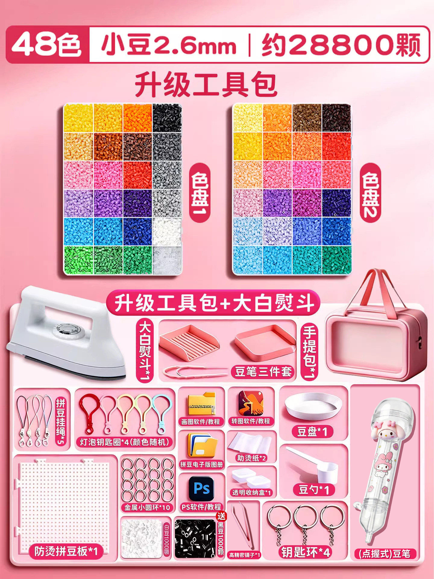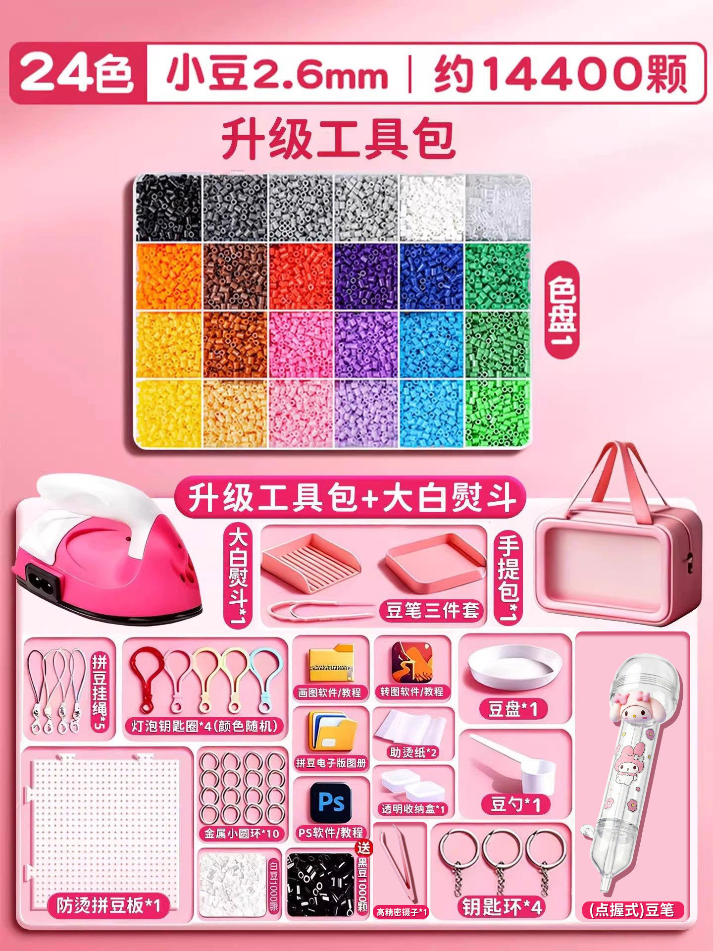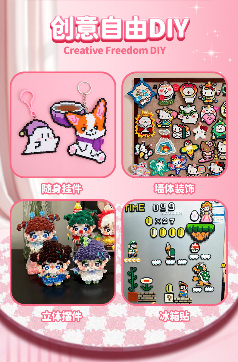 拼豆材料包全套拼豆豆手工diy工具熨斗补充套装女孩玩具生日礼物8