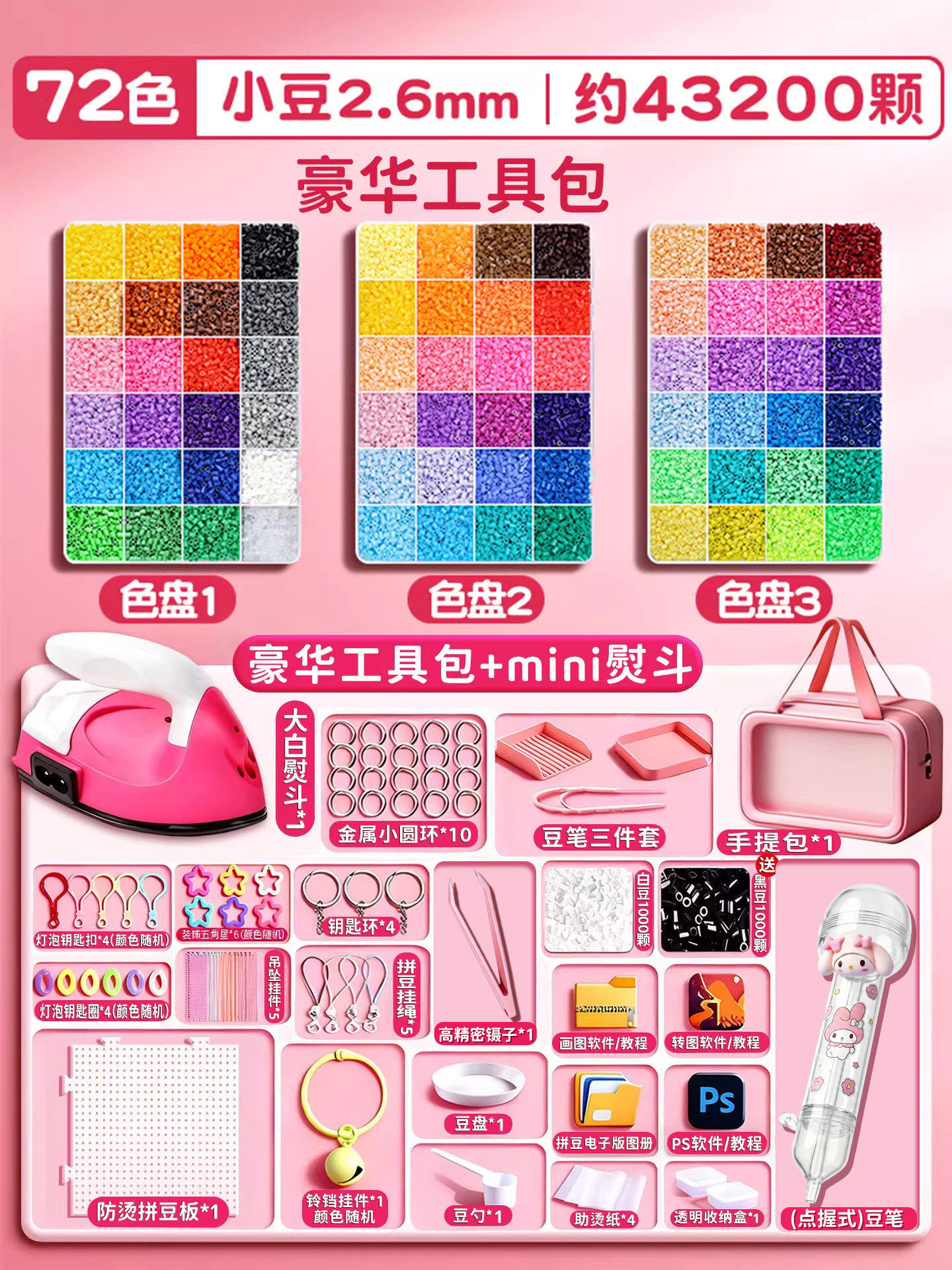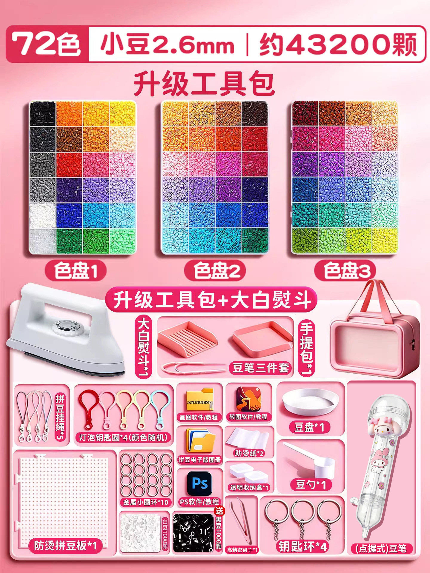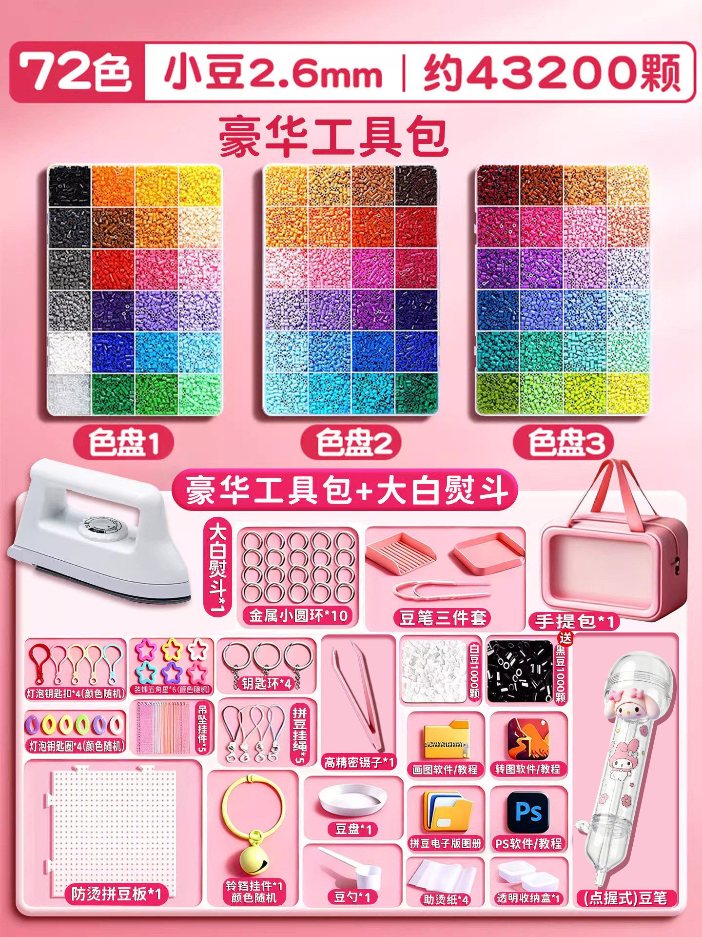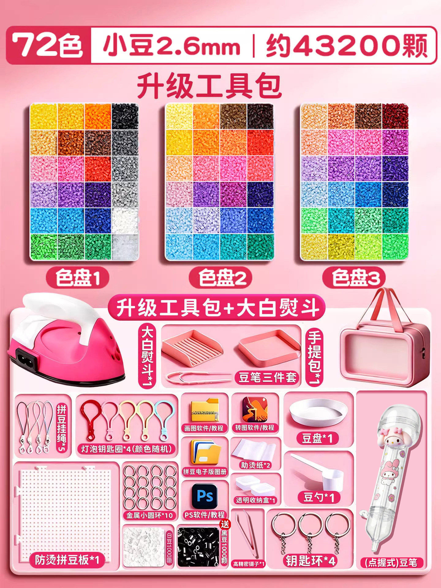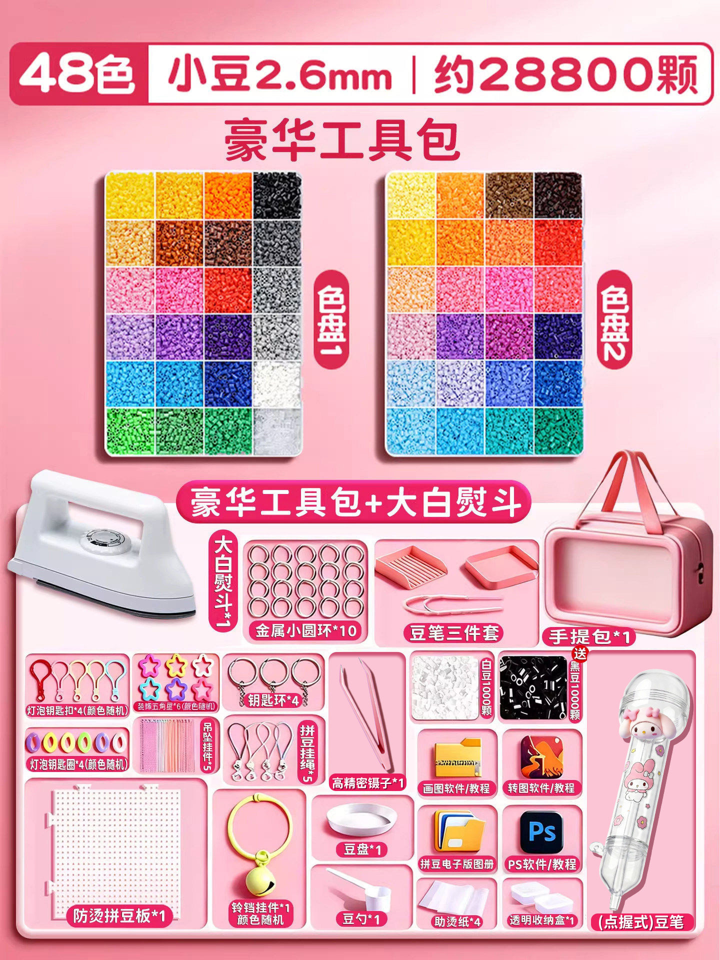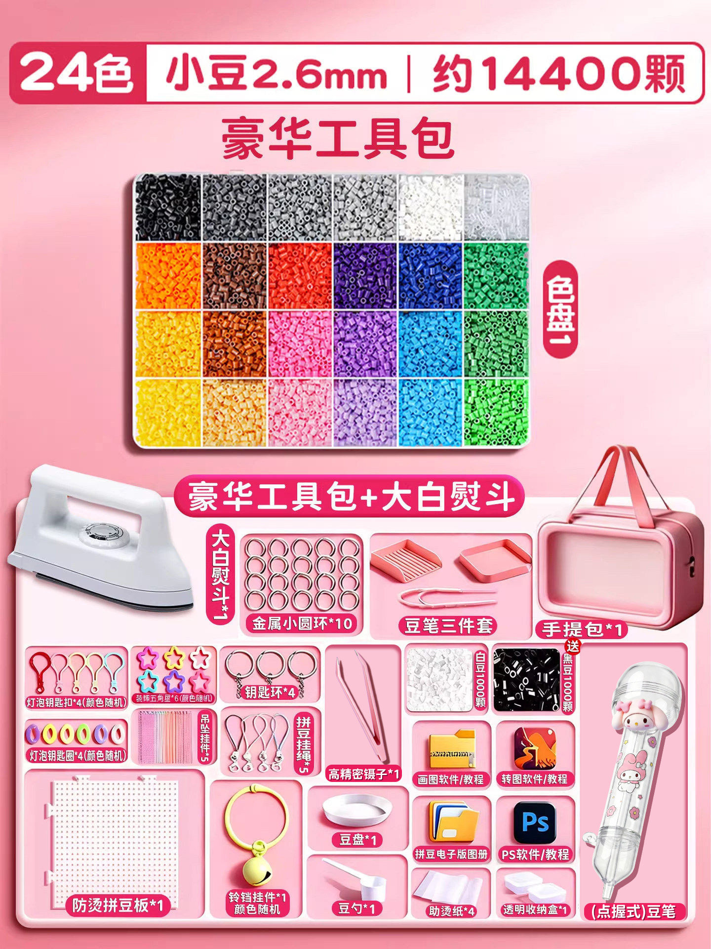 拼豆材料包全套拼豆豆手工diy工具熨斗补充套装女孩玩具生日礼物8