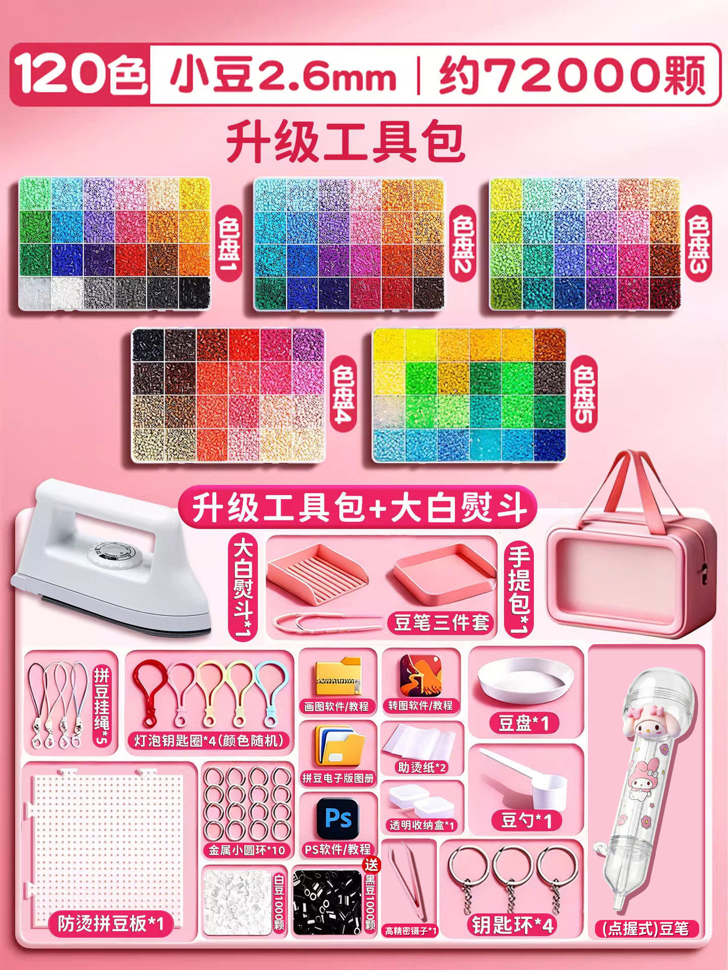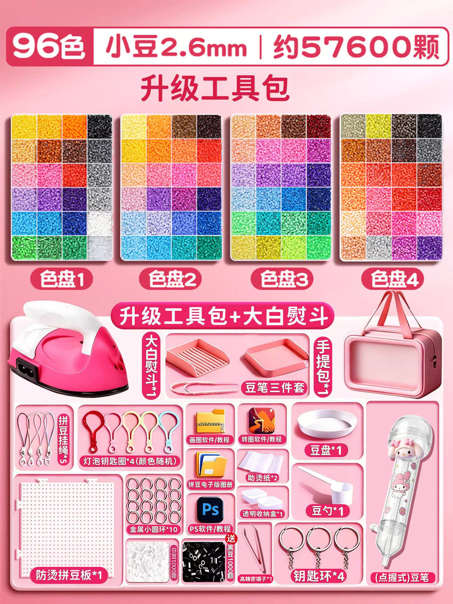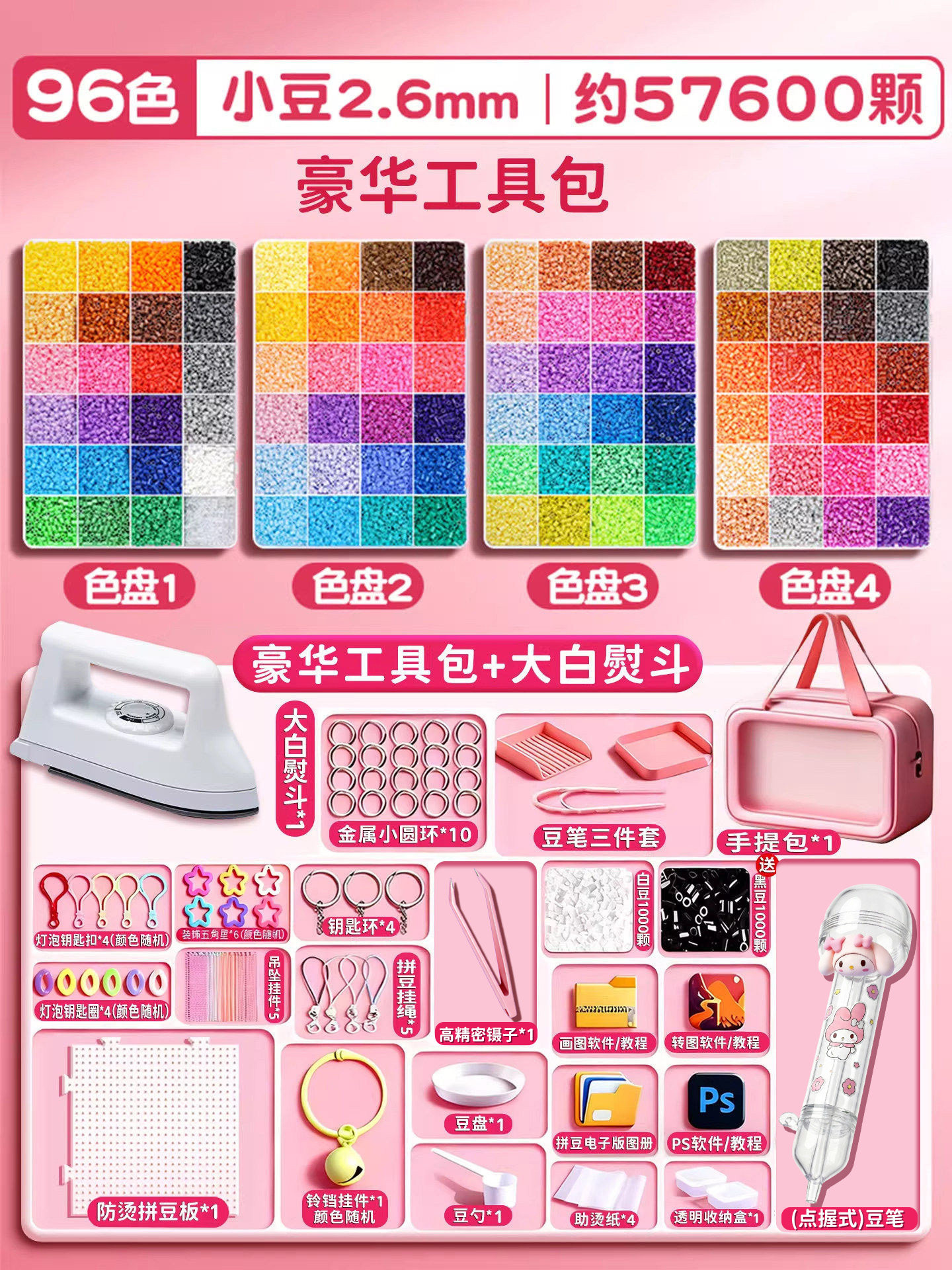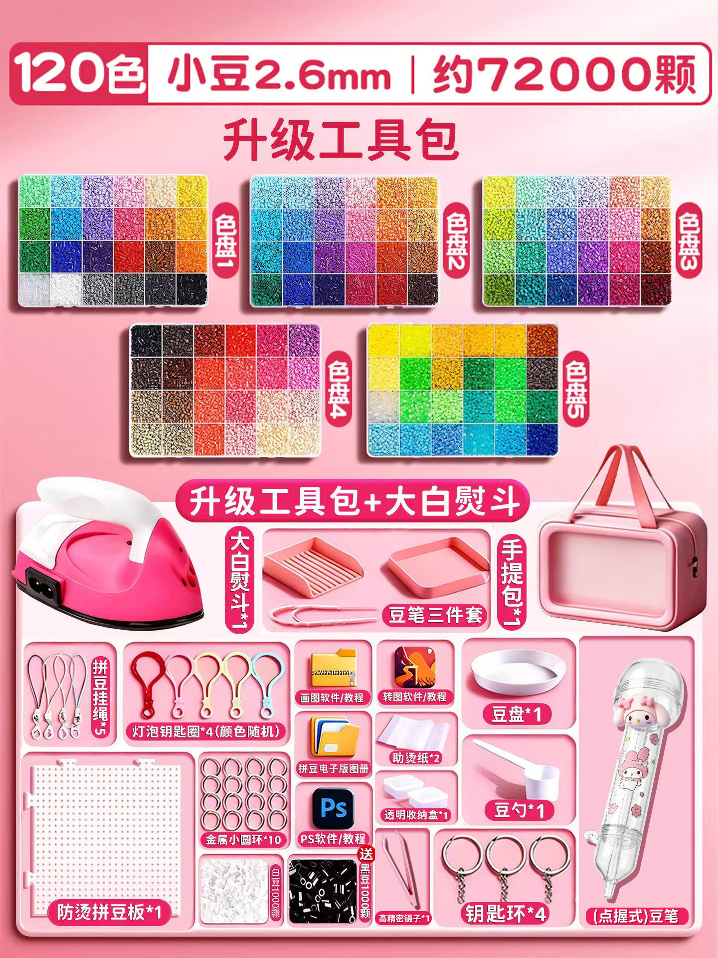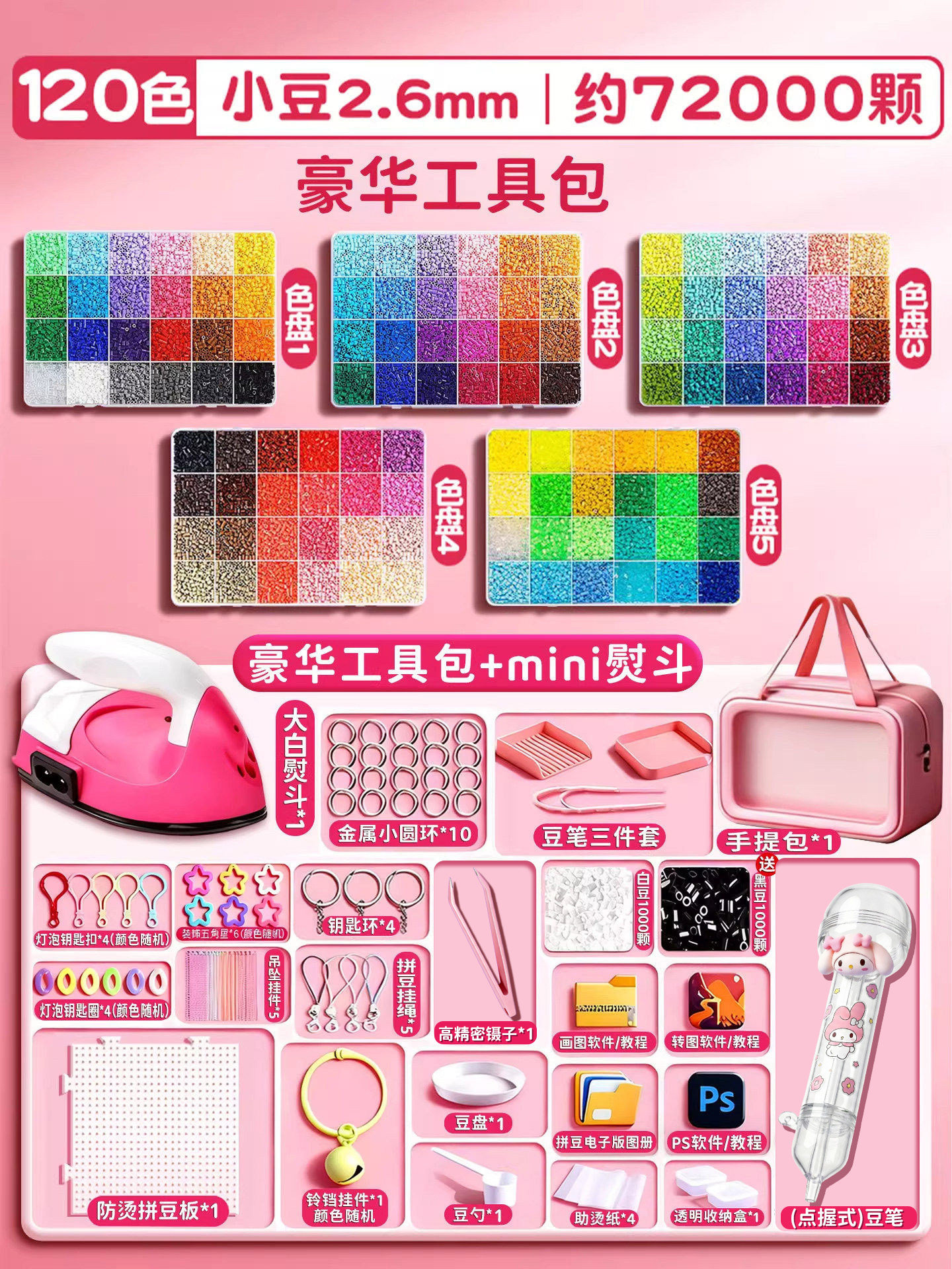 拼豆材料包全套拼豆豆手工diy工具熨斗补充套装女孩玩具生日礼物8