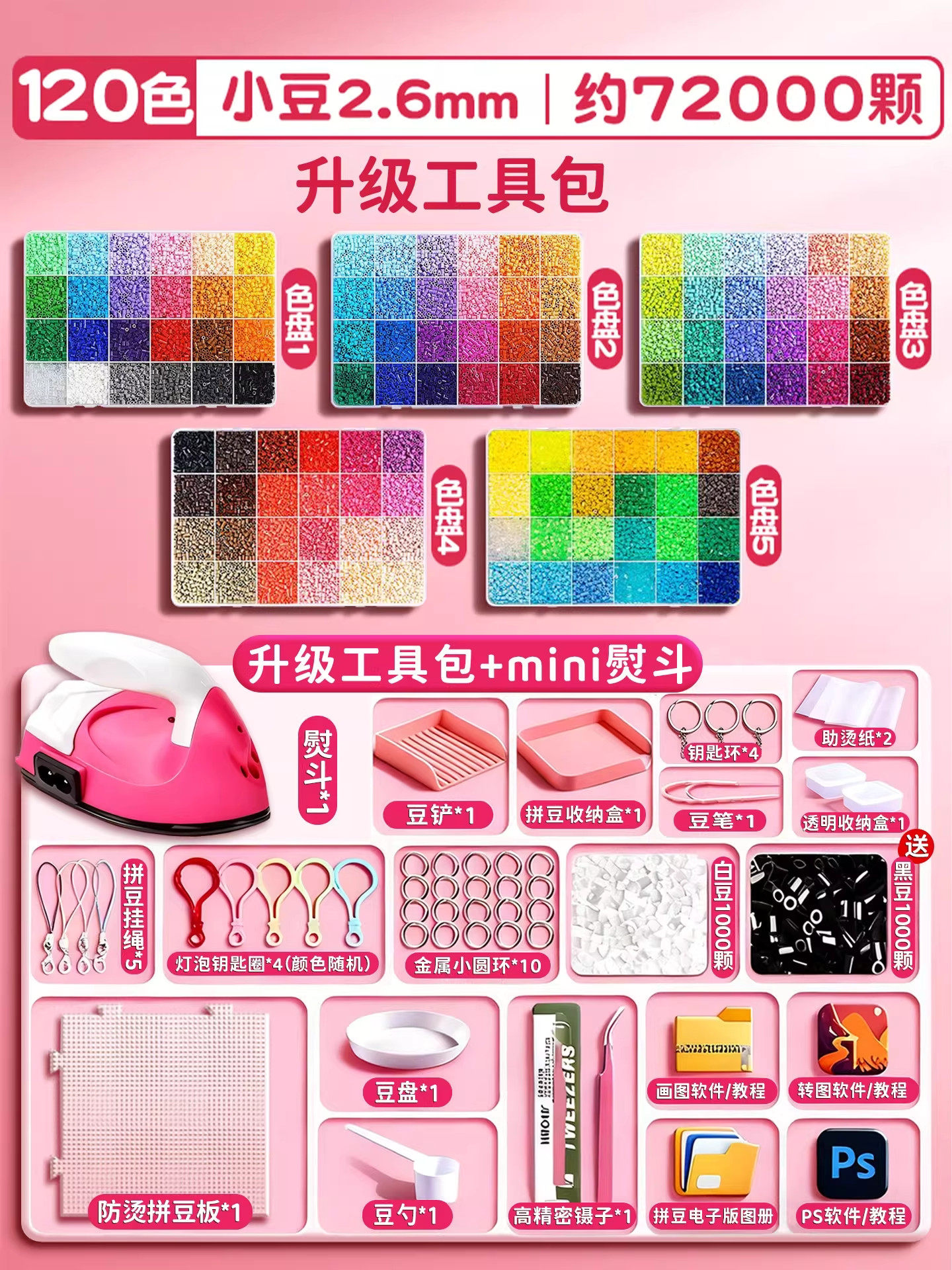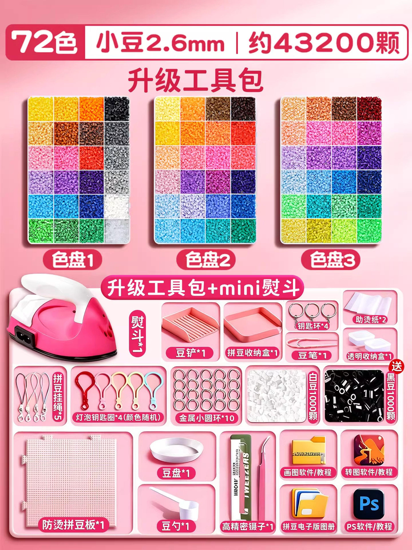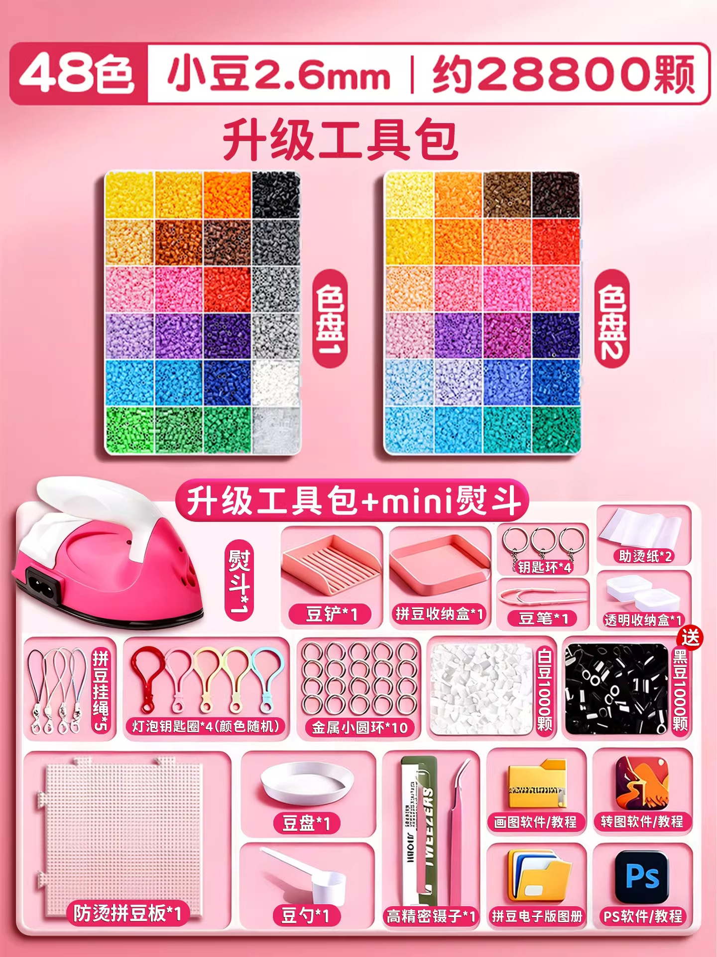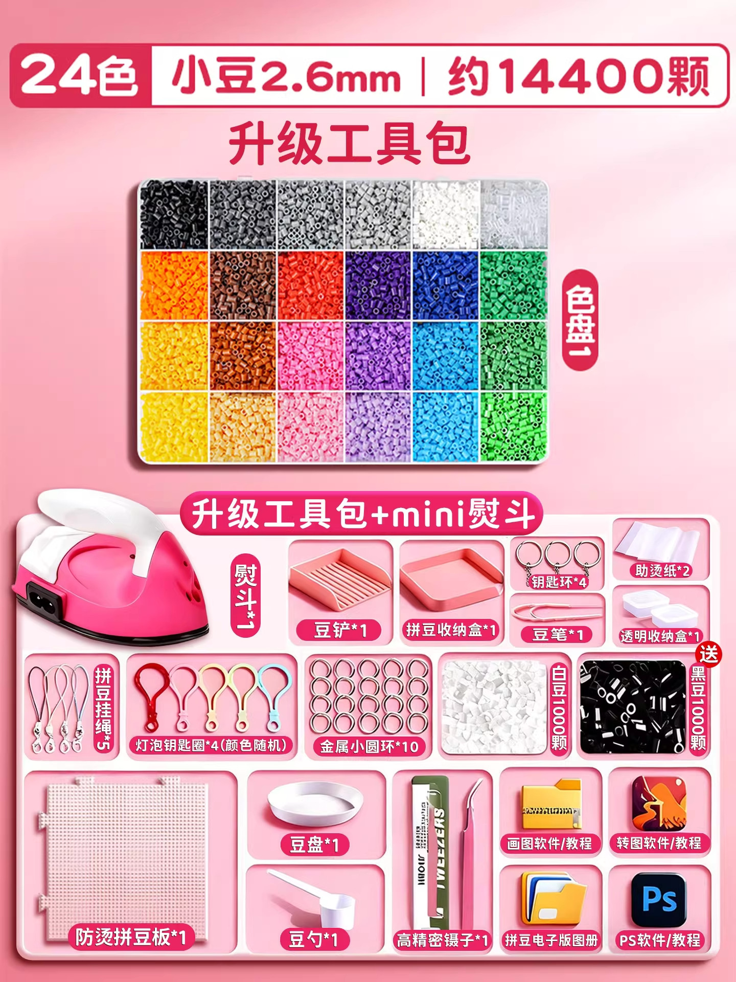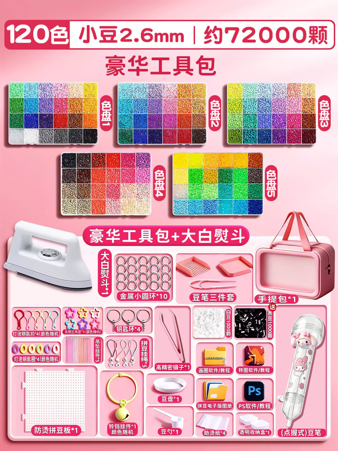 拼豆材料包全套拼豆豆手工diy工具熨斗补充套装女孩玩具生日礼物8