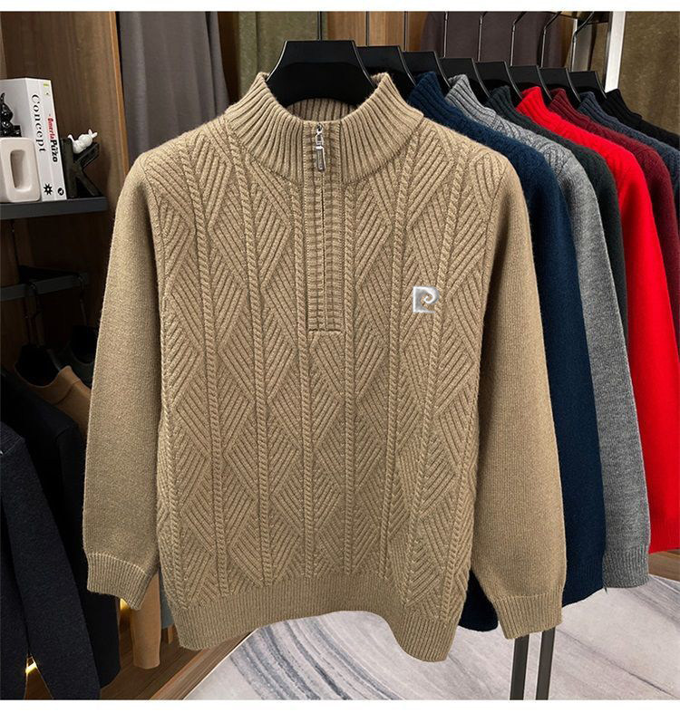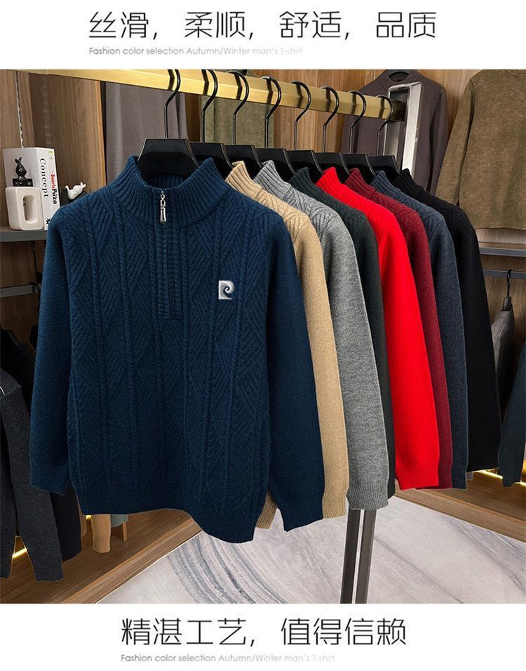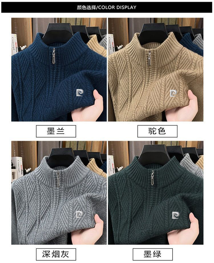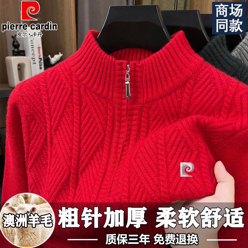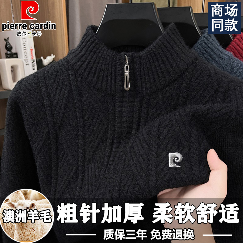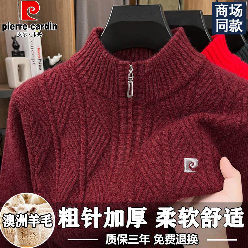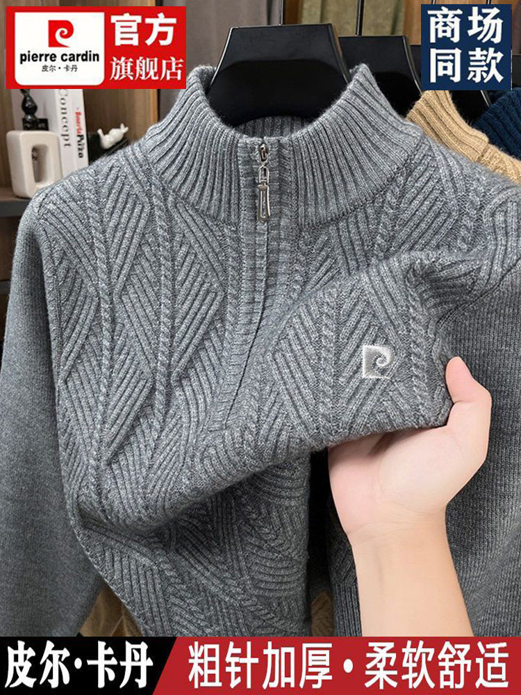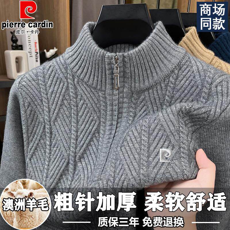2025皮尔卡丹冬季男士加厚羊毛衫中年半高领拉炼粗针时尚休闲毛衣