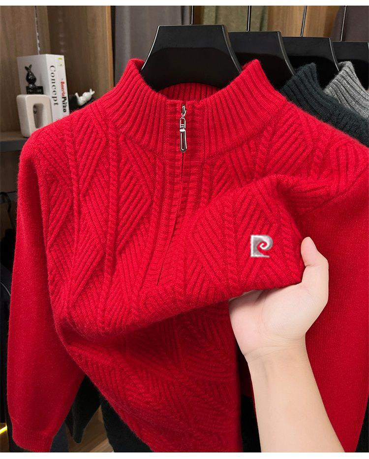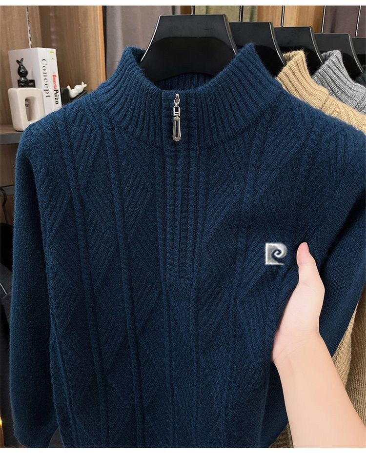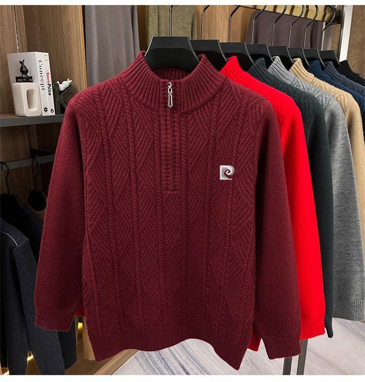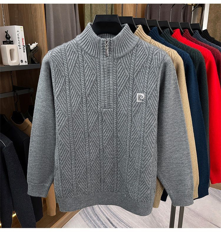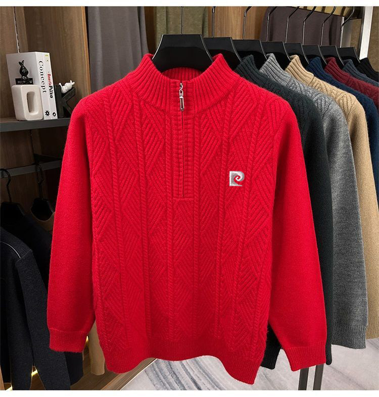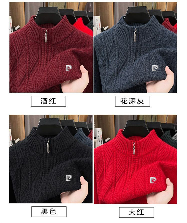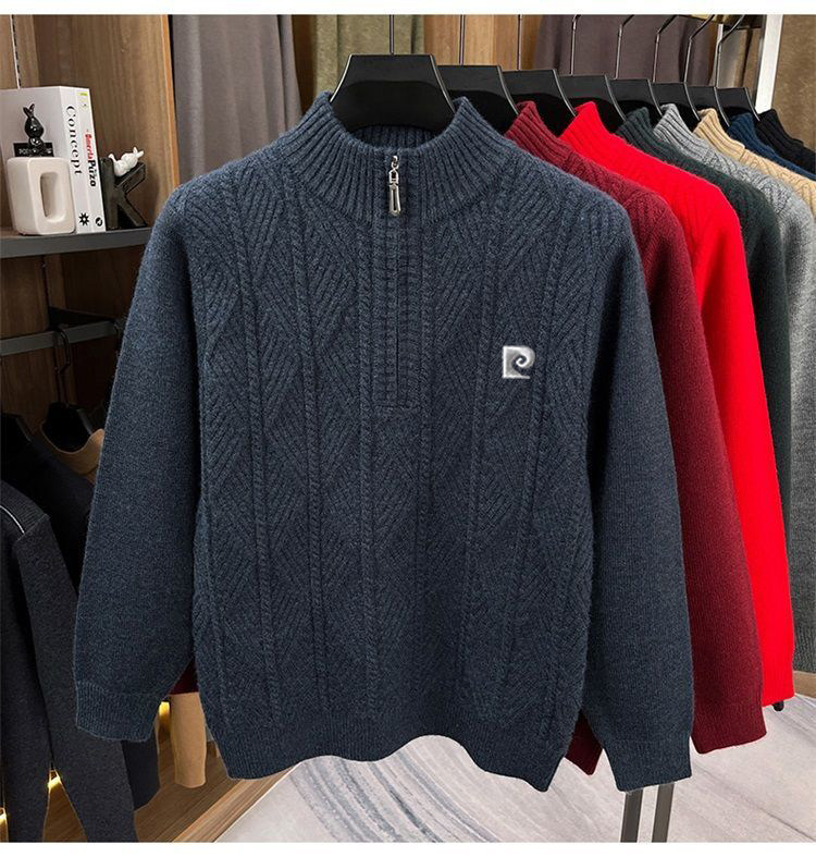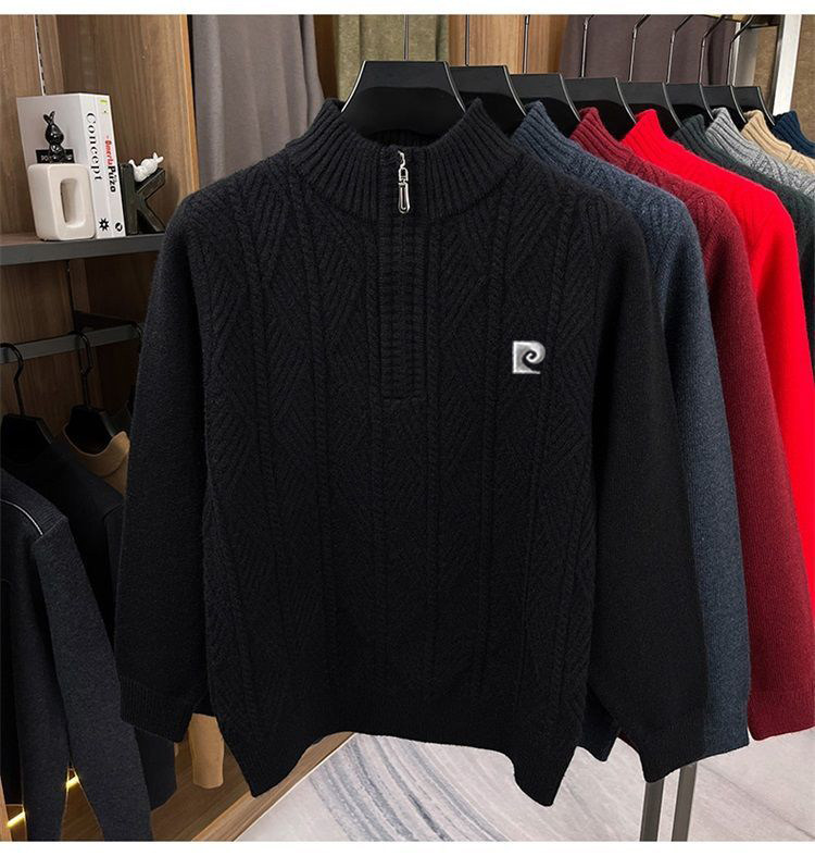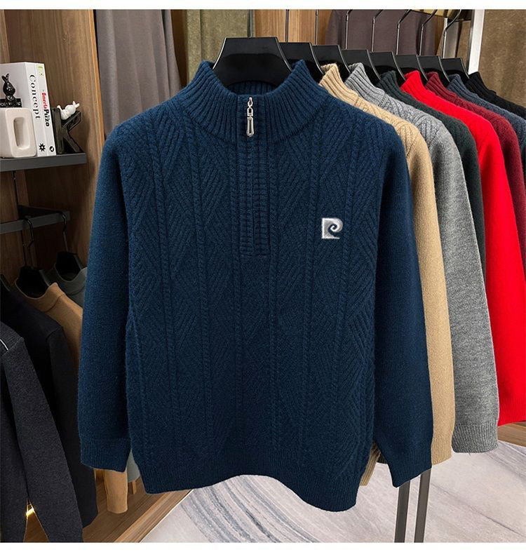 2025皮尔卡丹冬季男士加厚羊毛衫中年半高领拉炼粗针时尚休闲毛衣