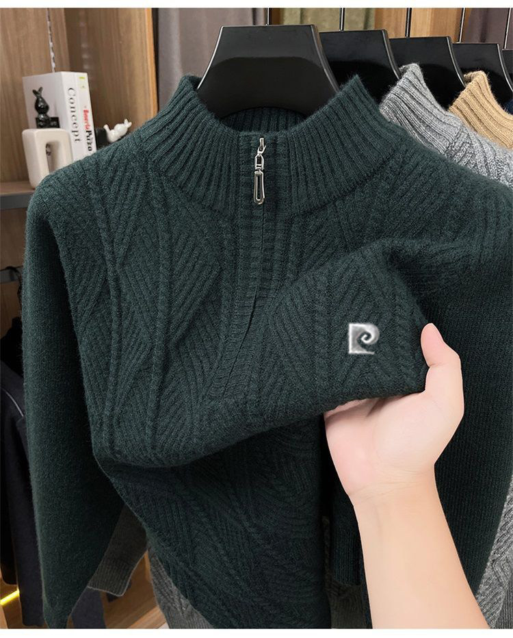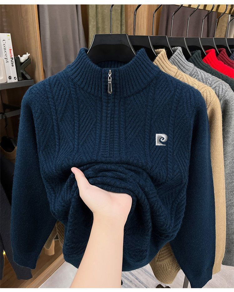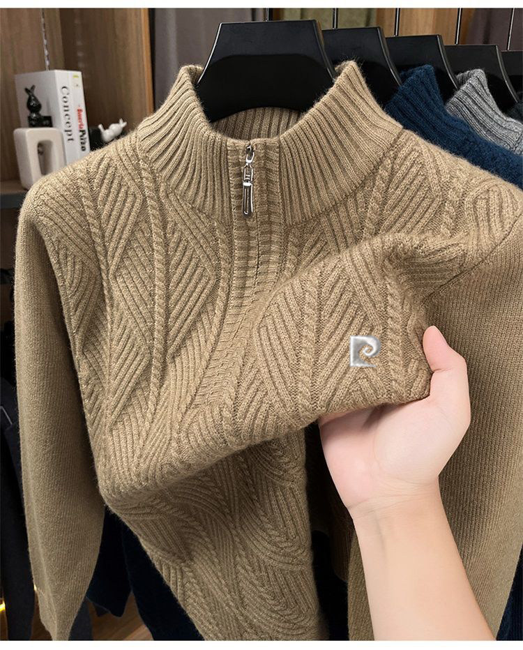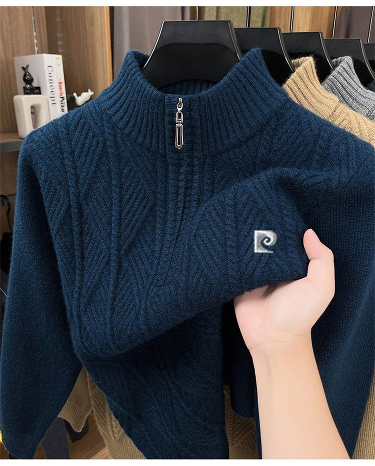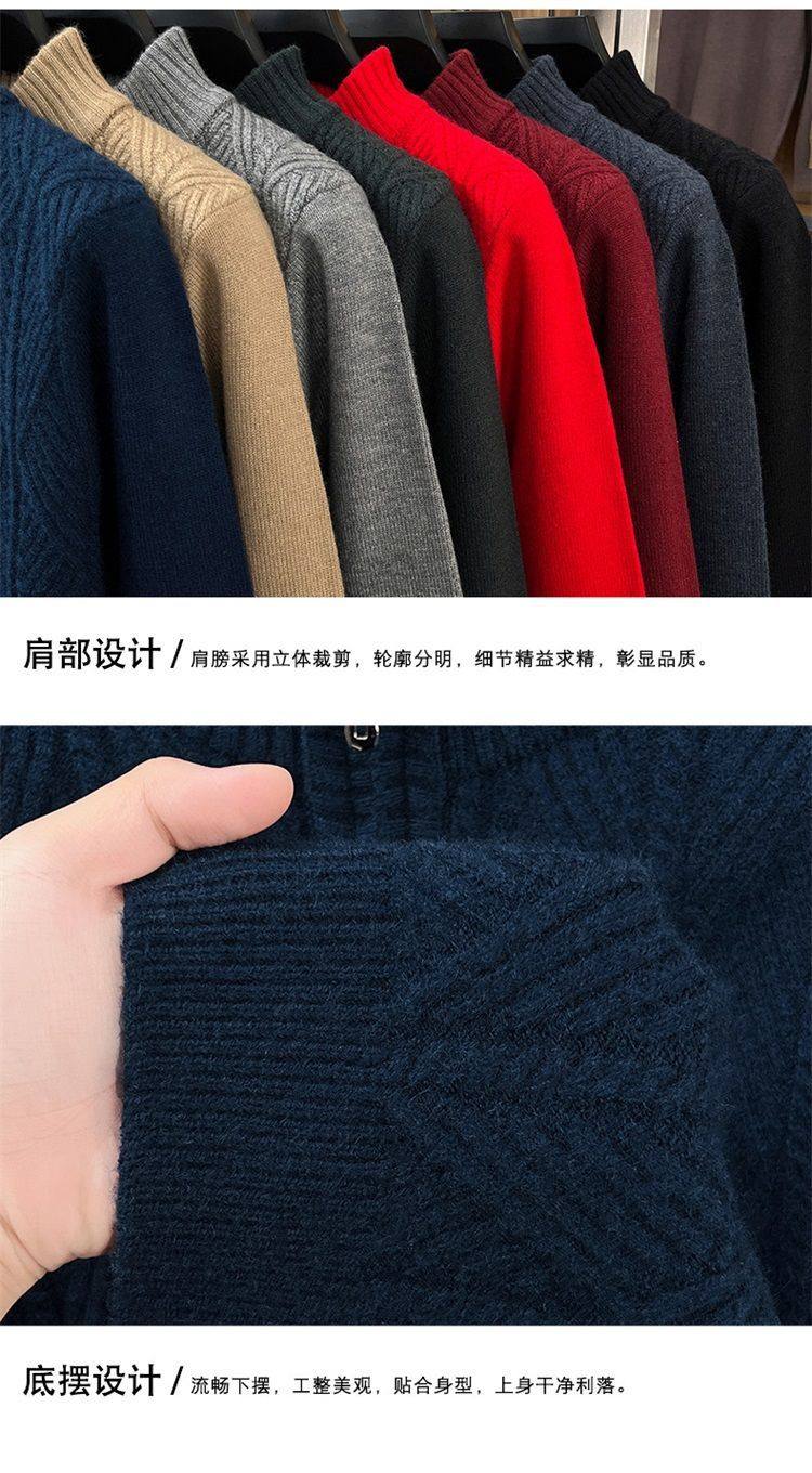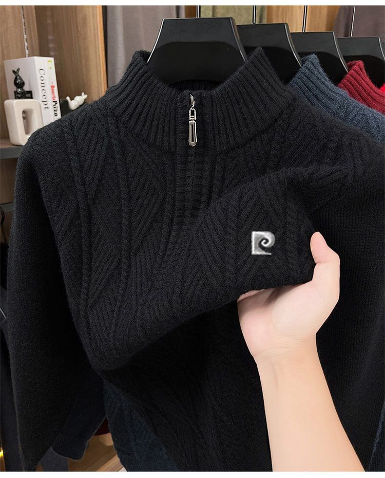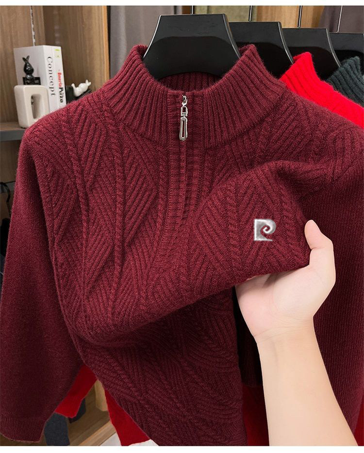 2025皮尔卡丹冬季男士加厚羊毛衫中年半高领拉炼粗针时尚休闲毛衣