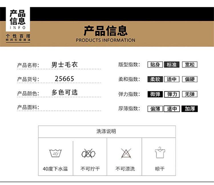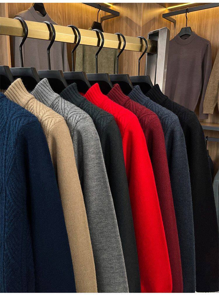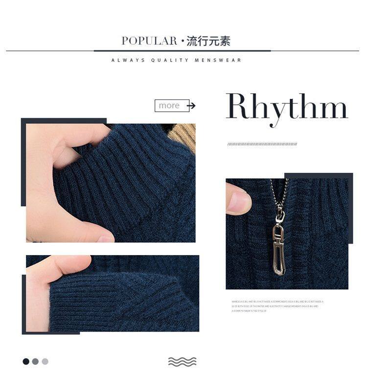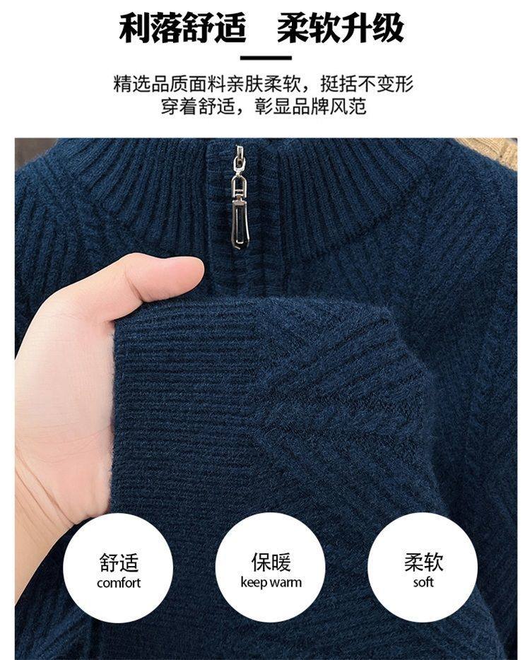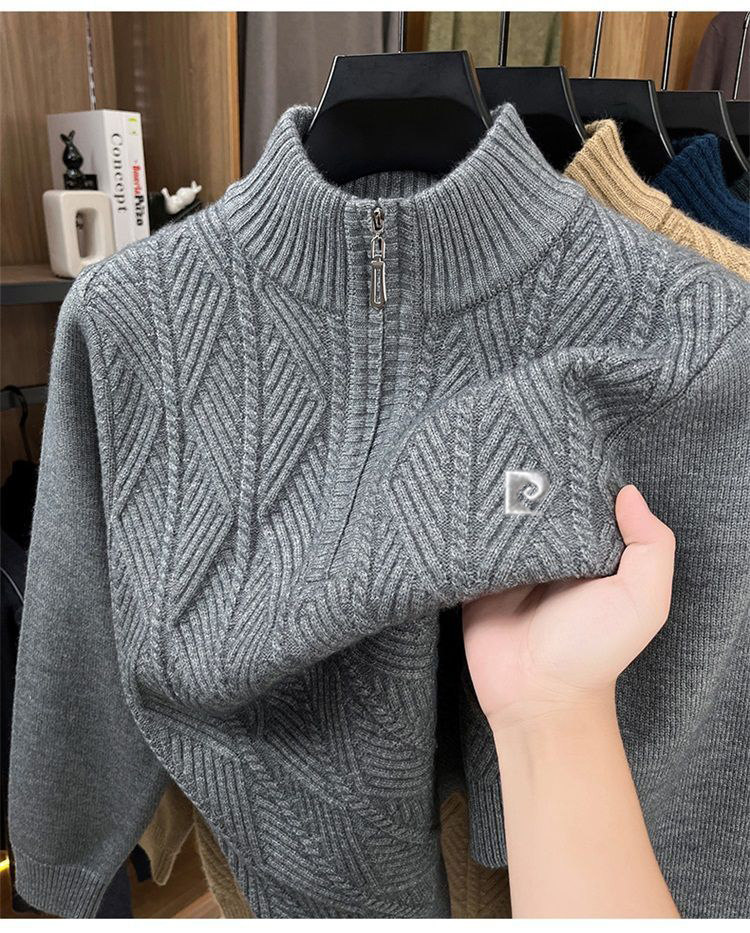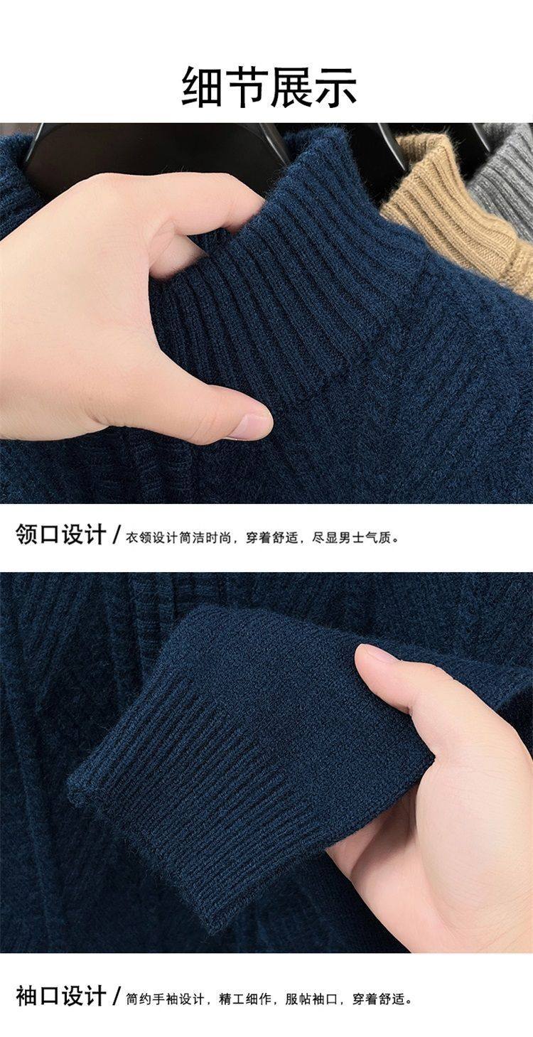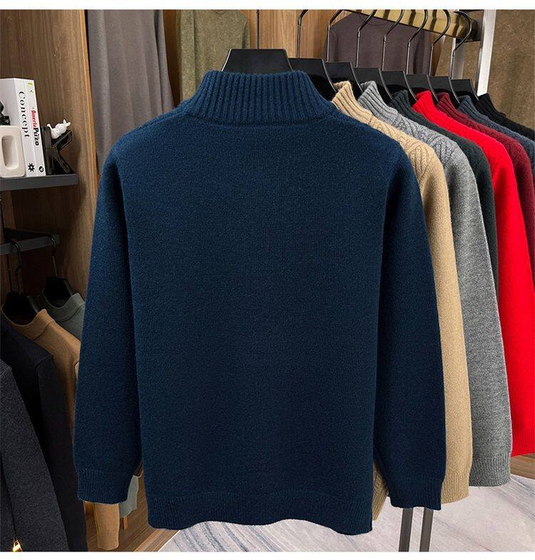 2025皮尔卡丹冬季男士加厚羊毛衫中年半高领拉炼粗针时尚休闲毛衣