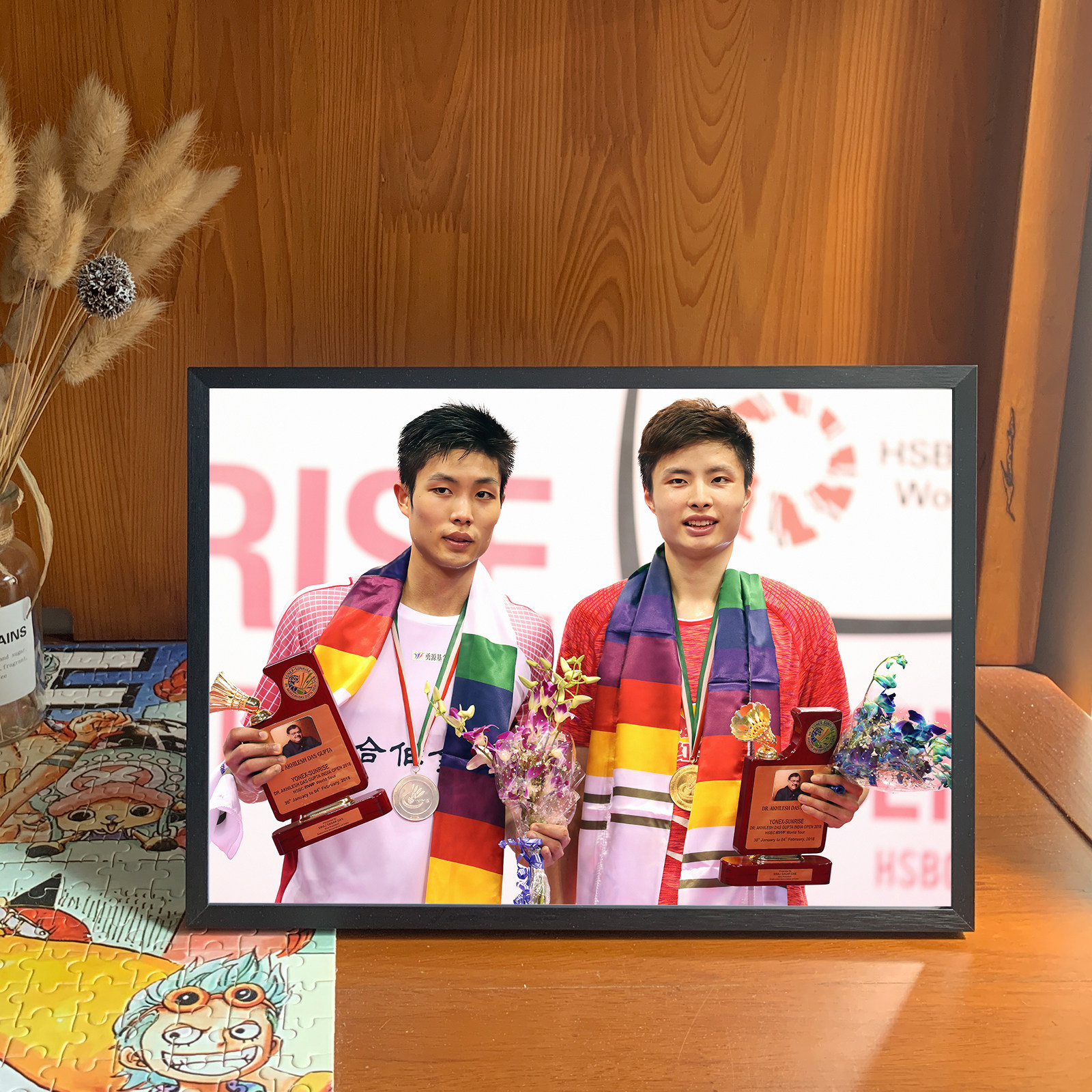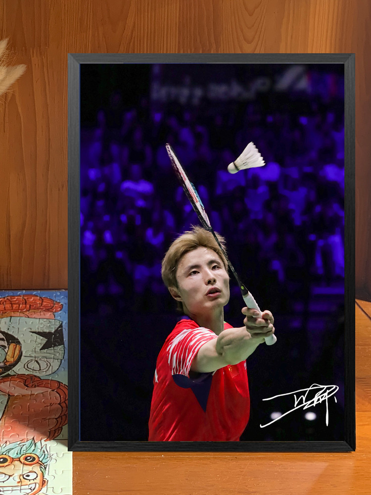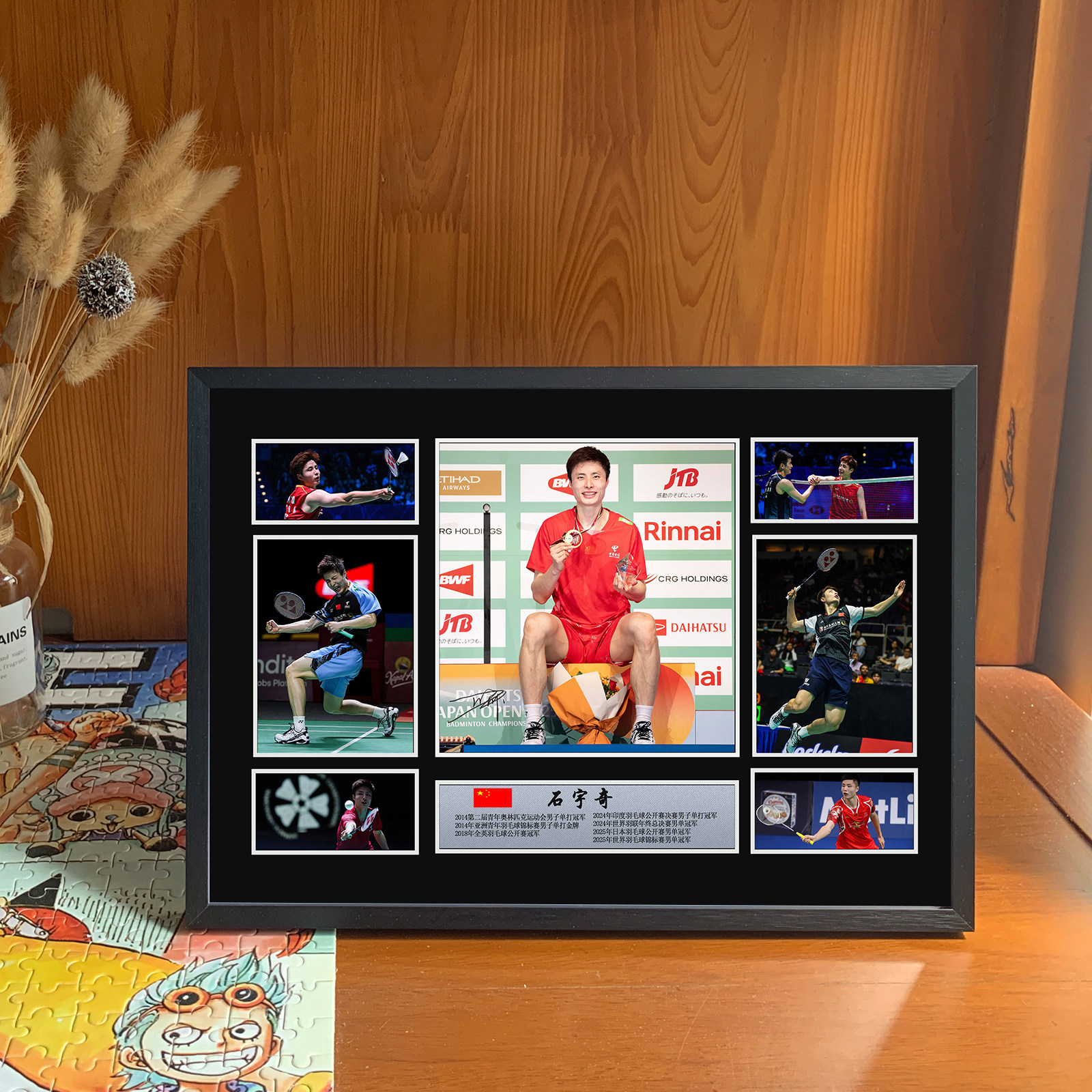 石宇奇相框摆件羽毛球运动明星签名照海报装饰画宿舍球馆客厅挂画