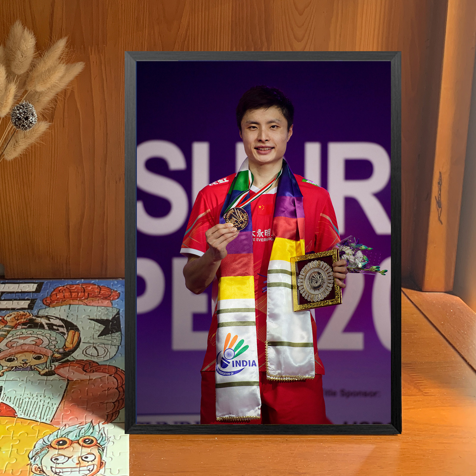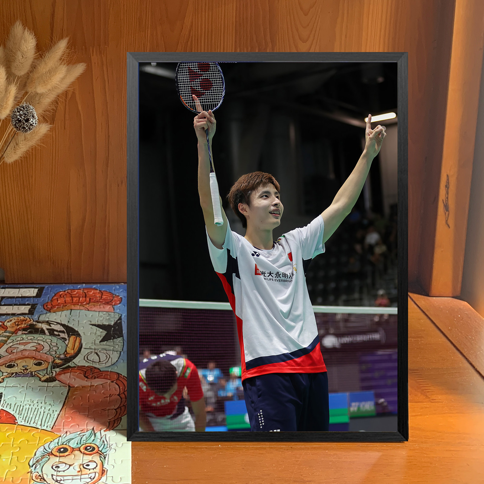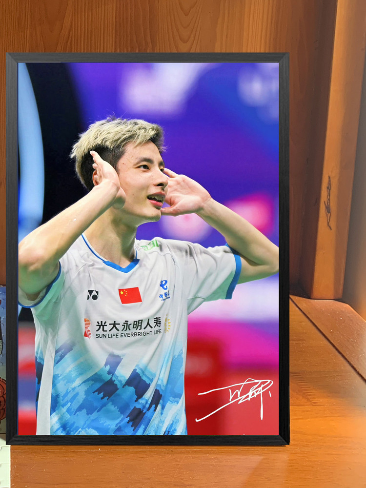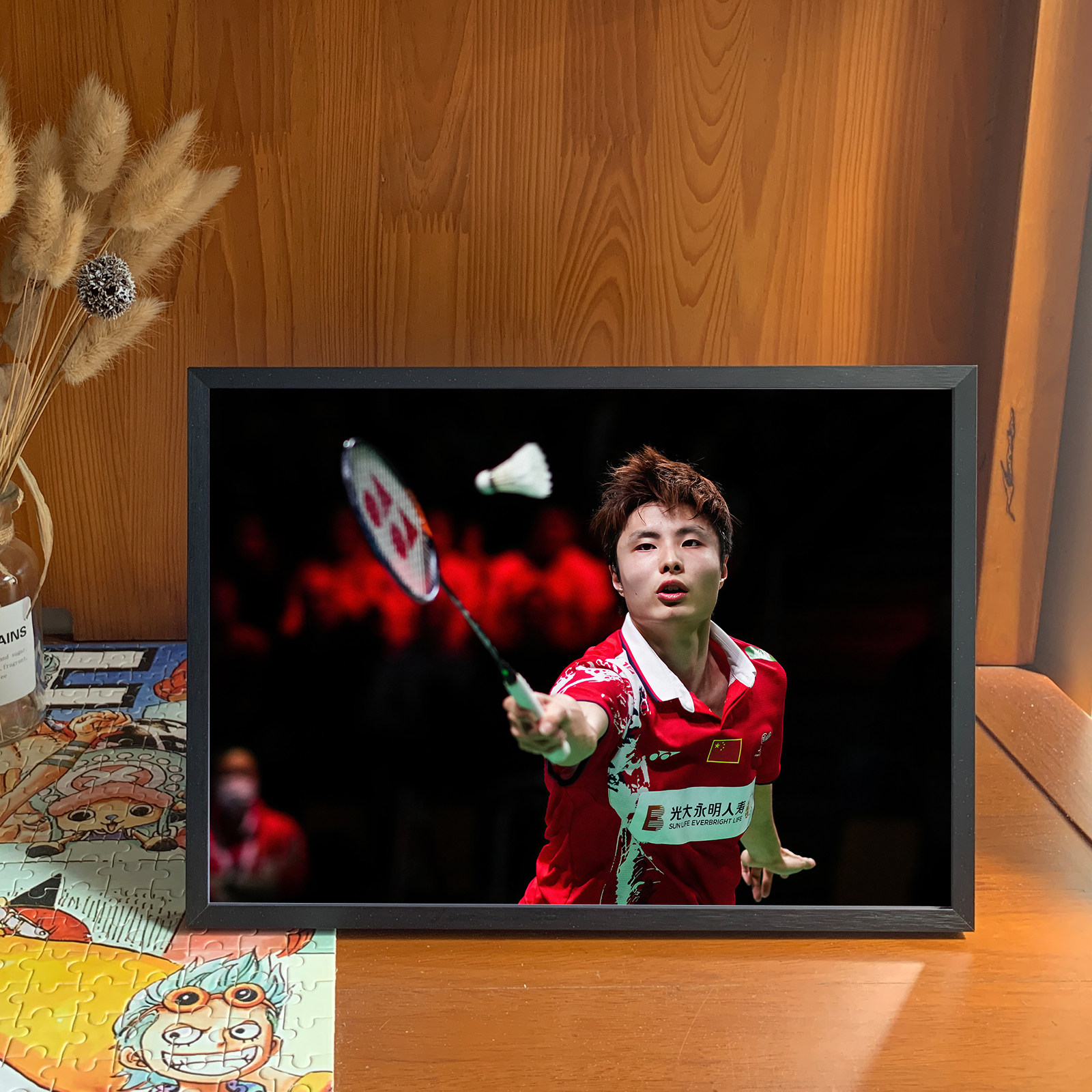 石宇奇相框摆件羽毛球运动明星签名照海报装饰画宿舍球馆客厅挂画
