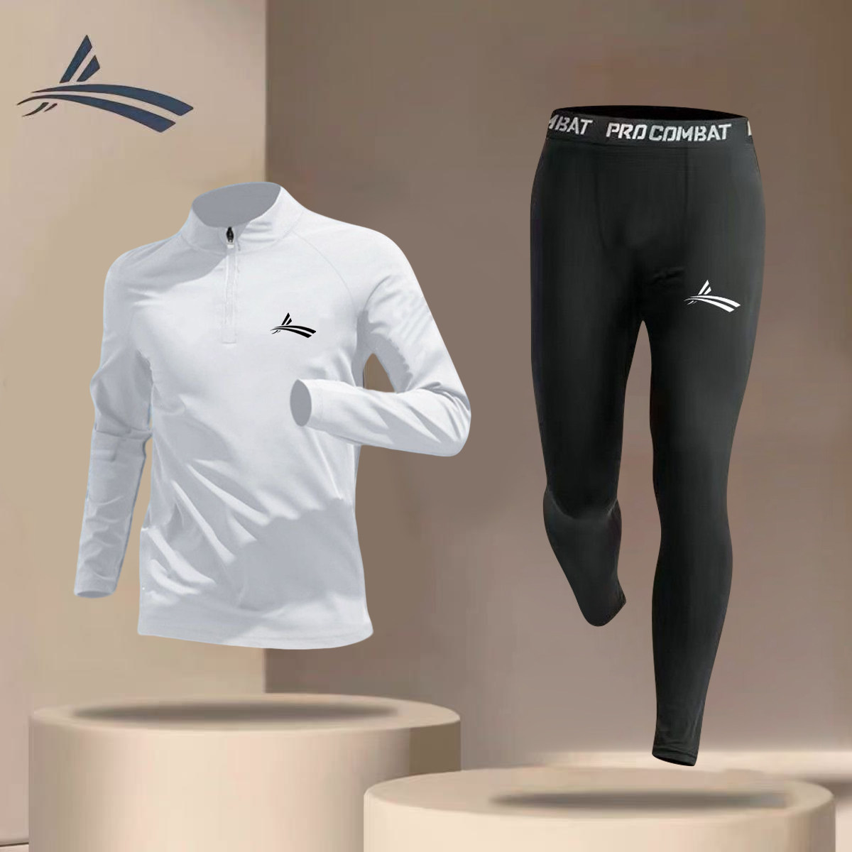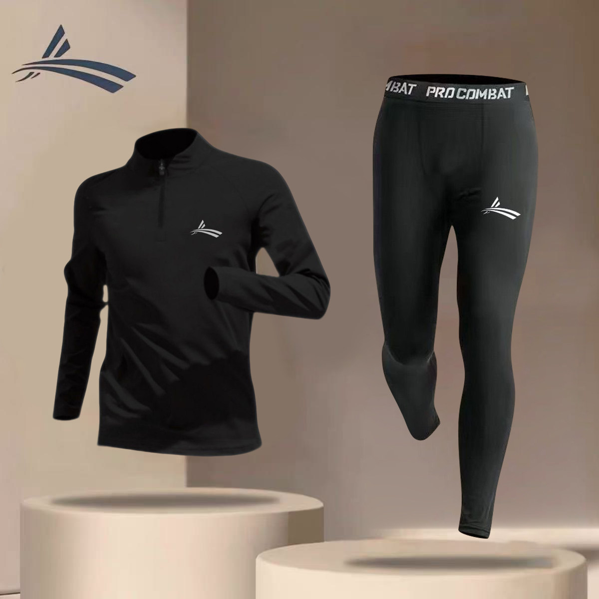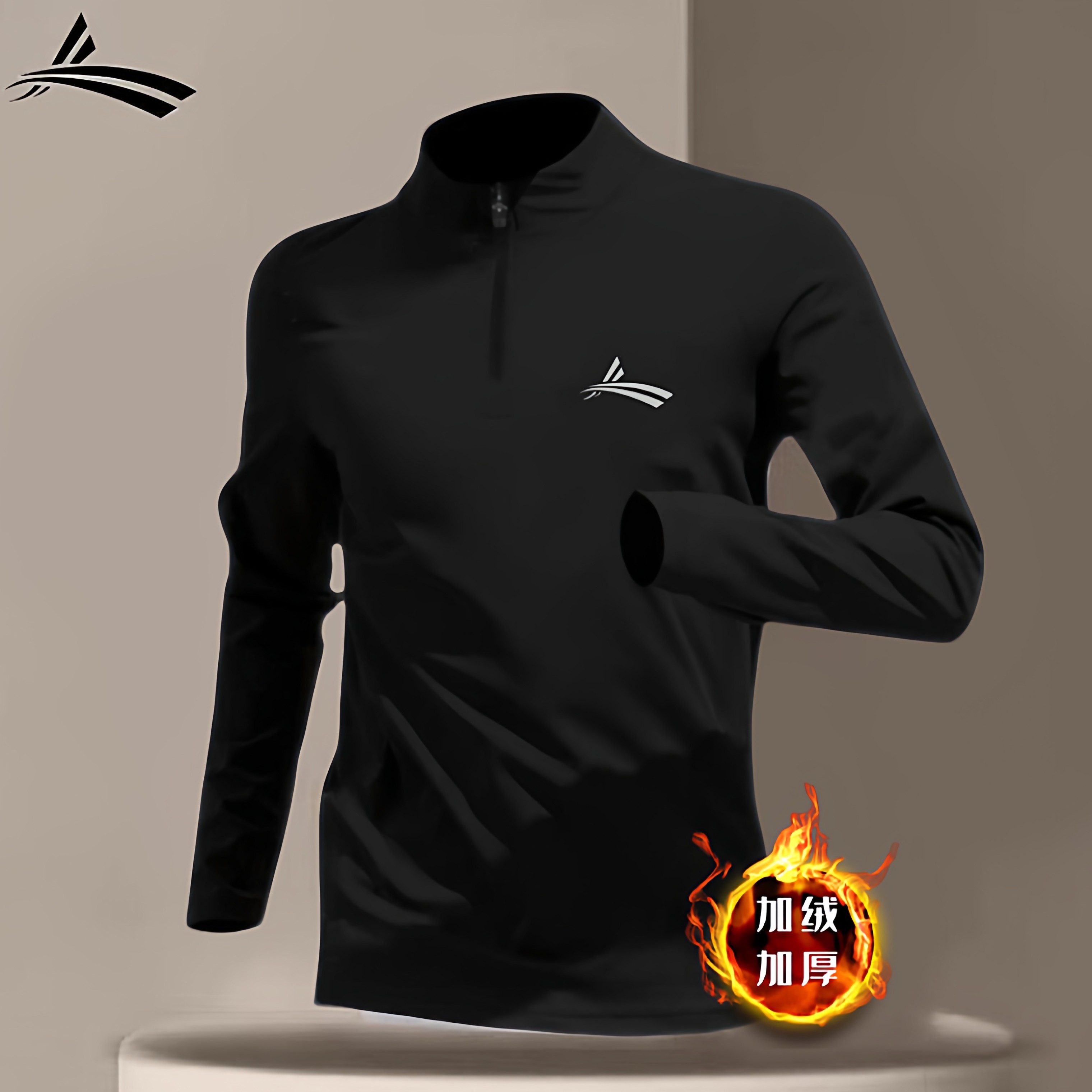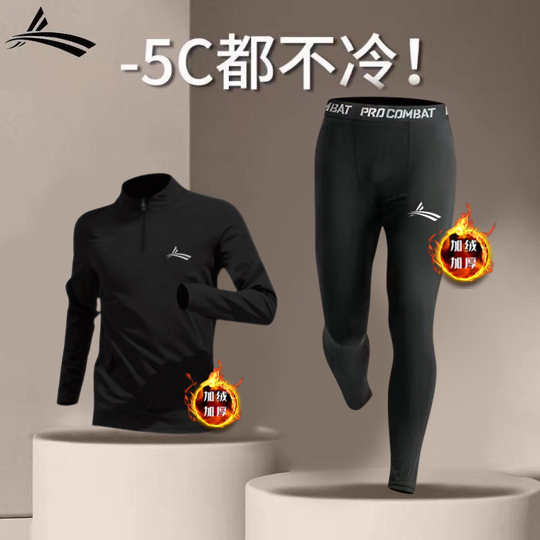 沃兰体育生加绒训练服秋冬跑步运动套装田径半拉链训练服紧身衣裤