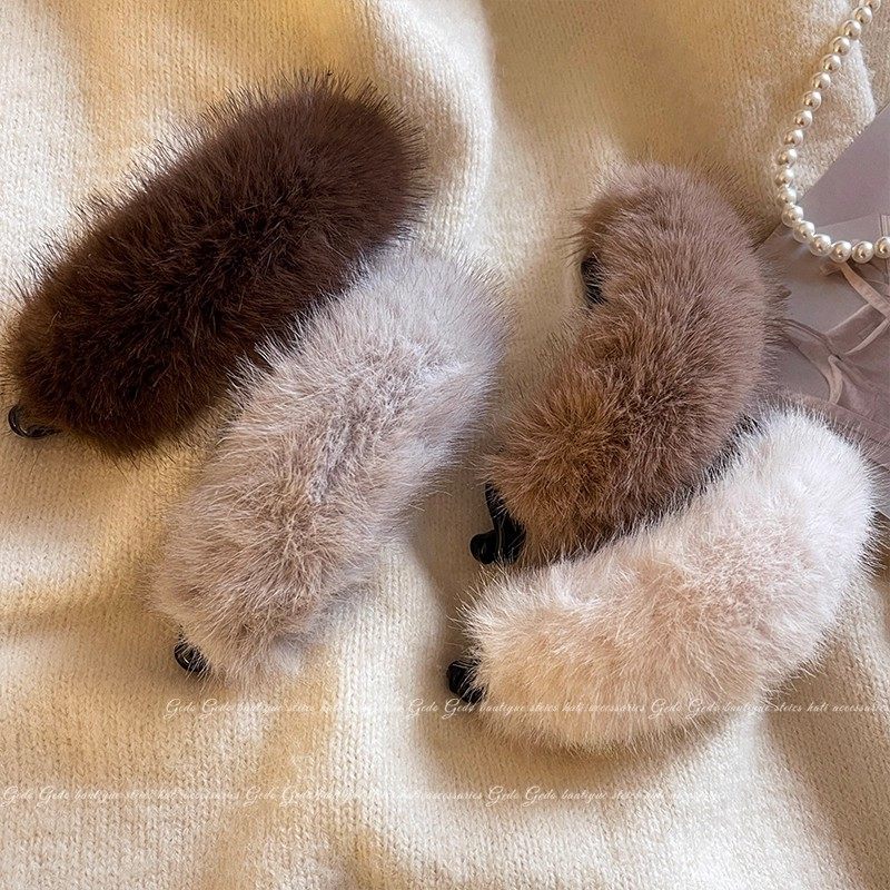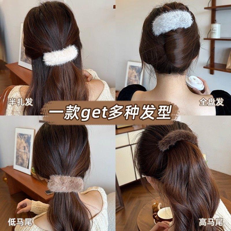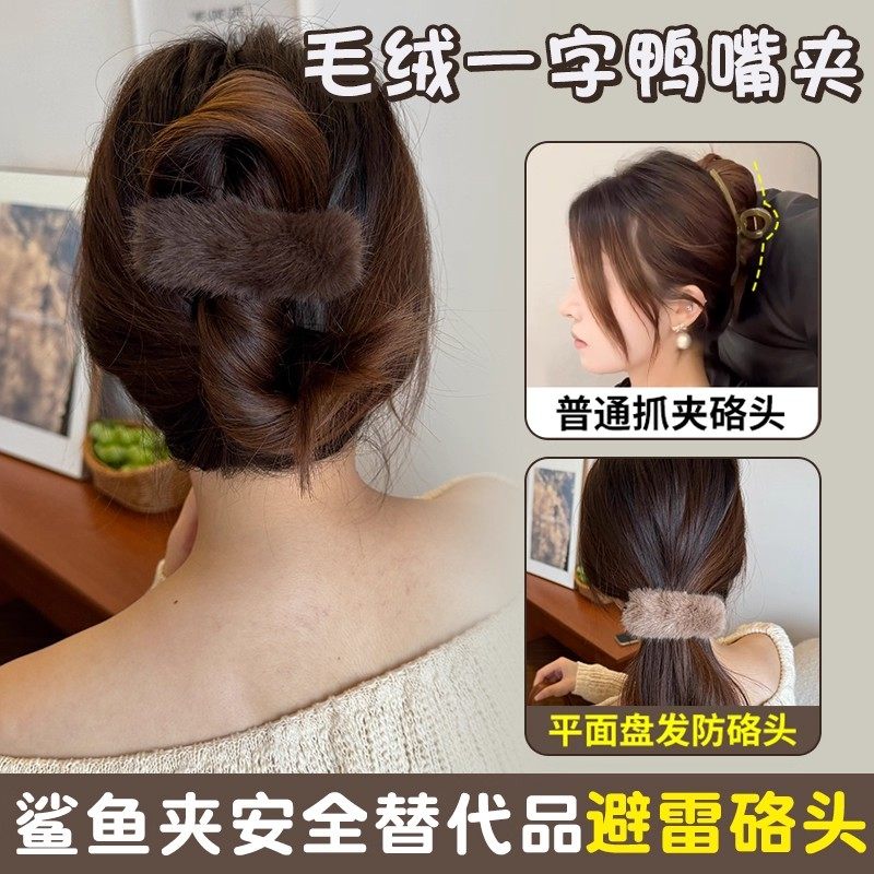 韩系毛毛扭扭夹后脑勺盘发抓夹秋冬鲨鱼夹安全替代品毛绒一字发夹
