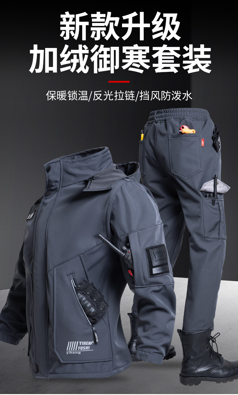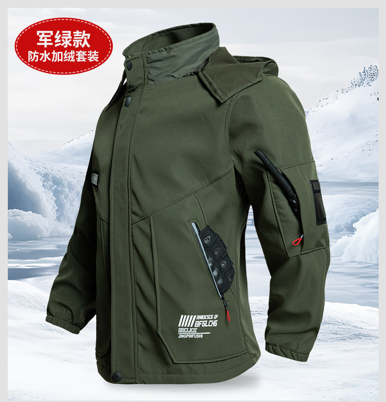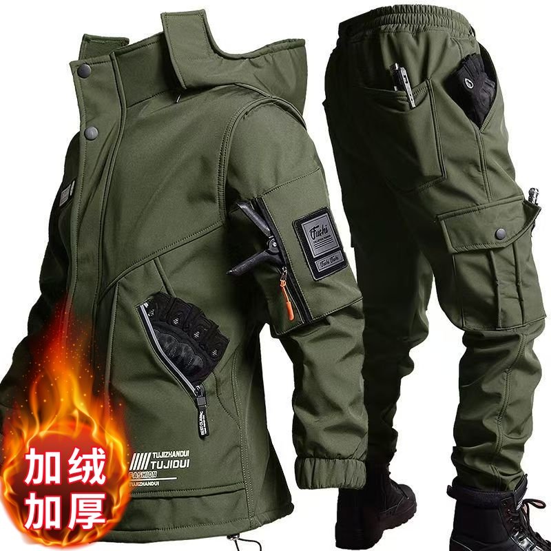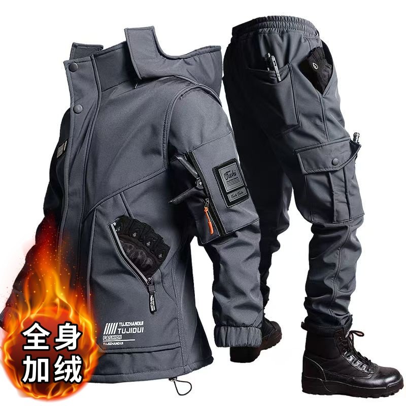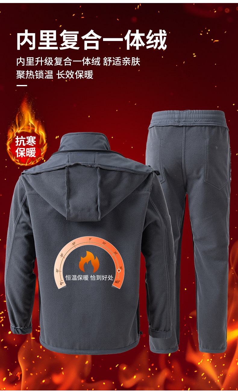 加绒工作服软壳冲锋衣套装男冬季防寒保暖防水防风加厚骑行登山服