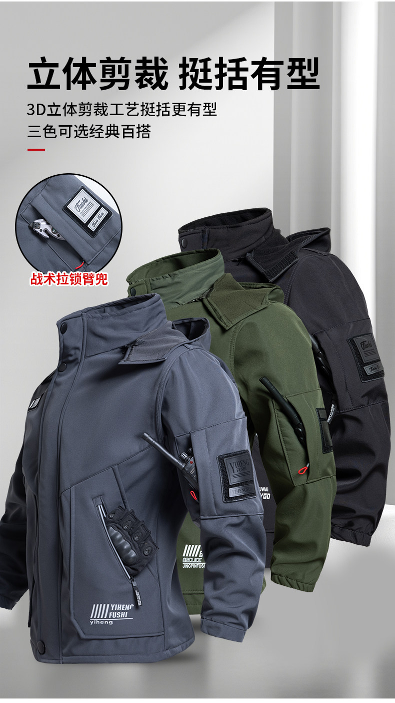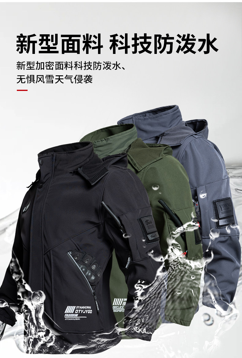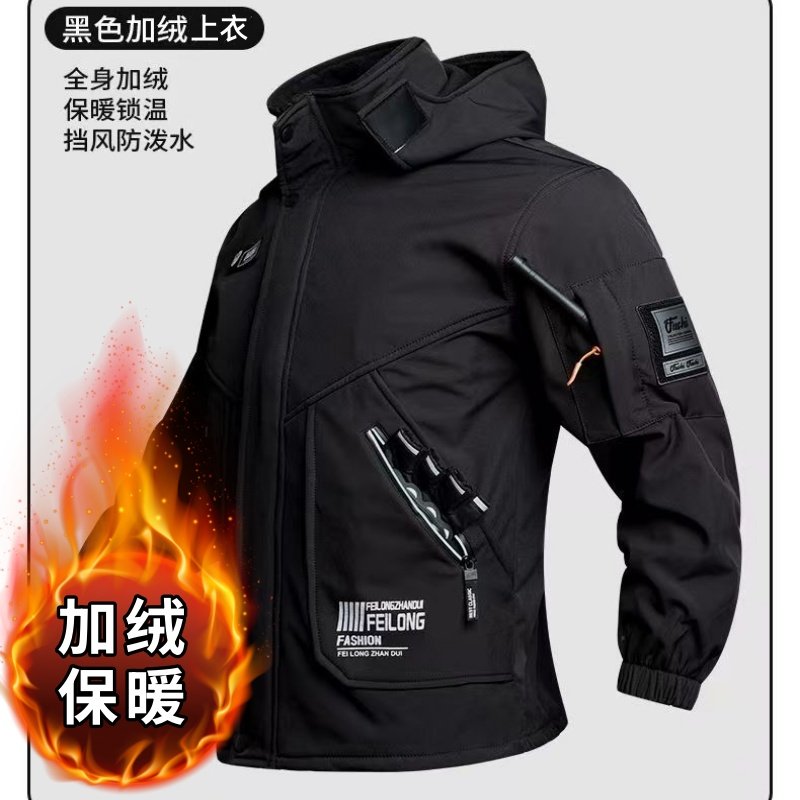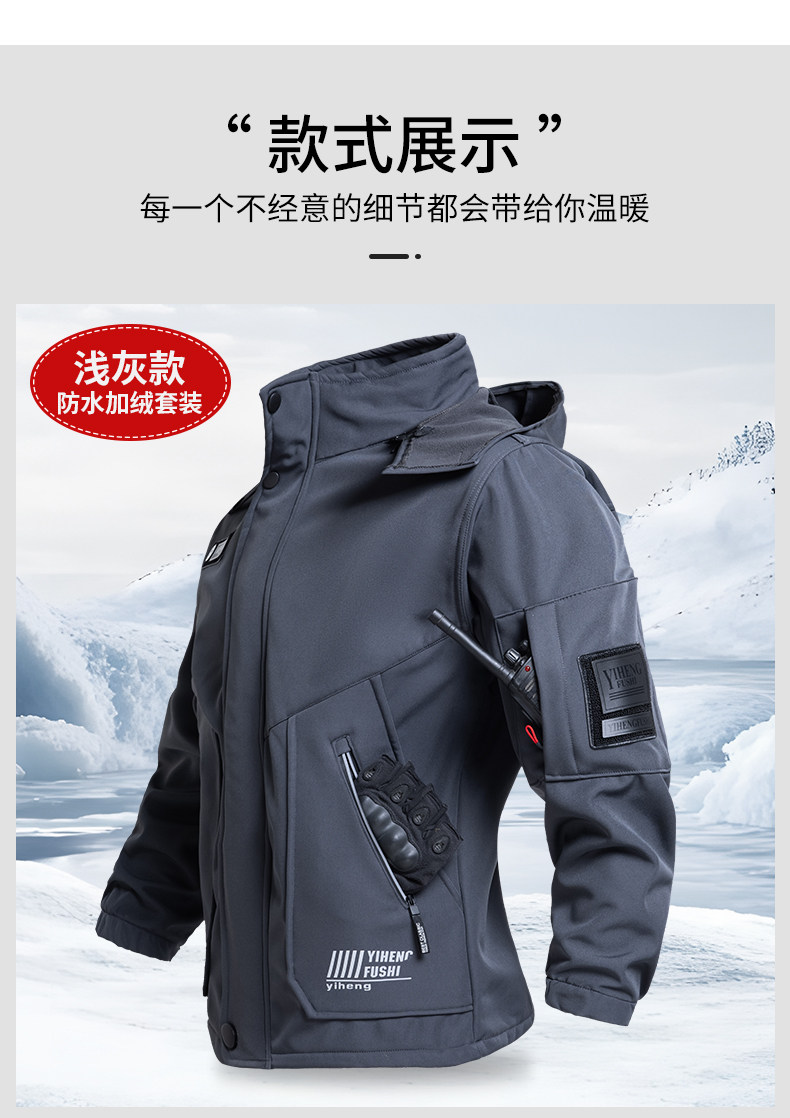 加绒工作服软壳冲锋衣套装男冬季防寒保暖防水防风加厚骑行登山服