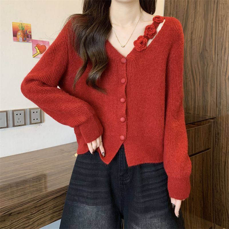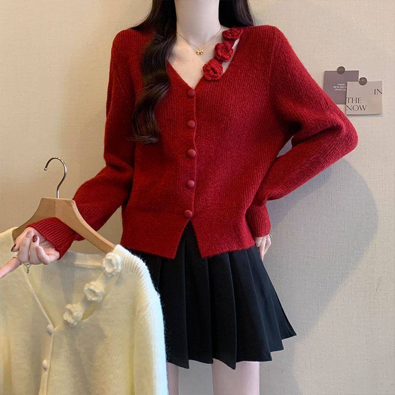 温柔小香风气质减龄短款毛衣开衫女秋冬新款独特别致小众针织上衣